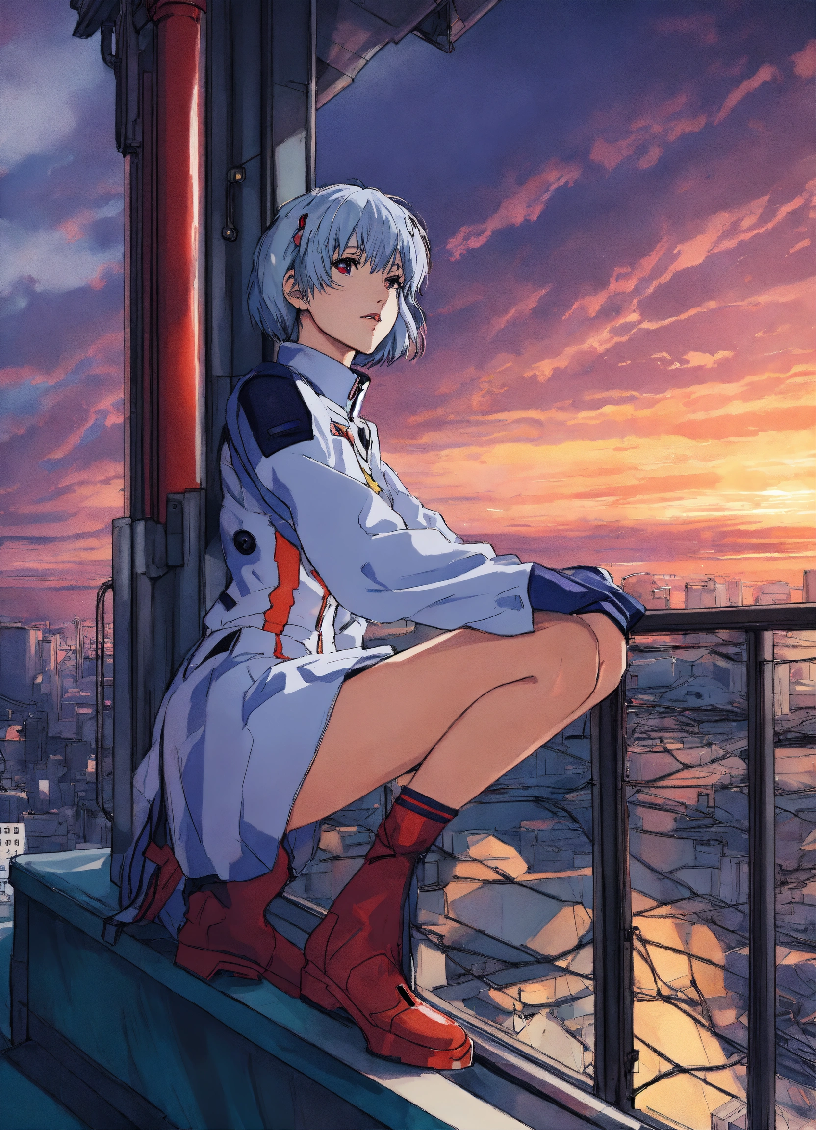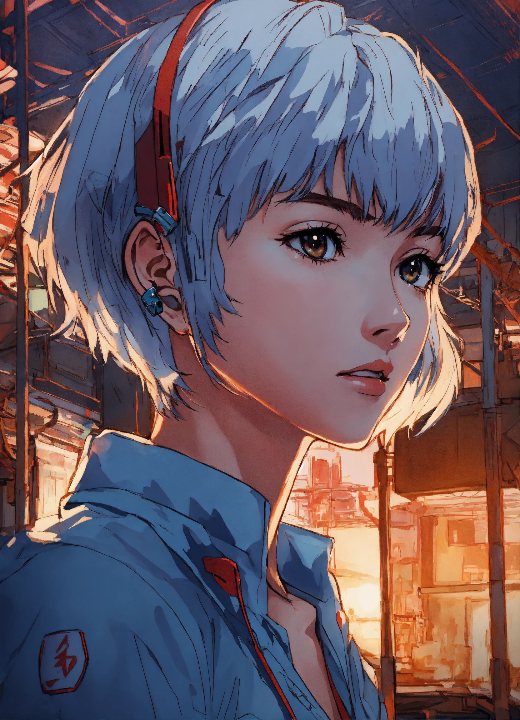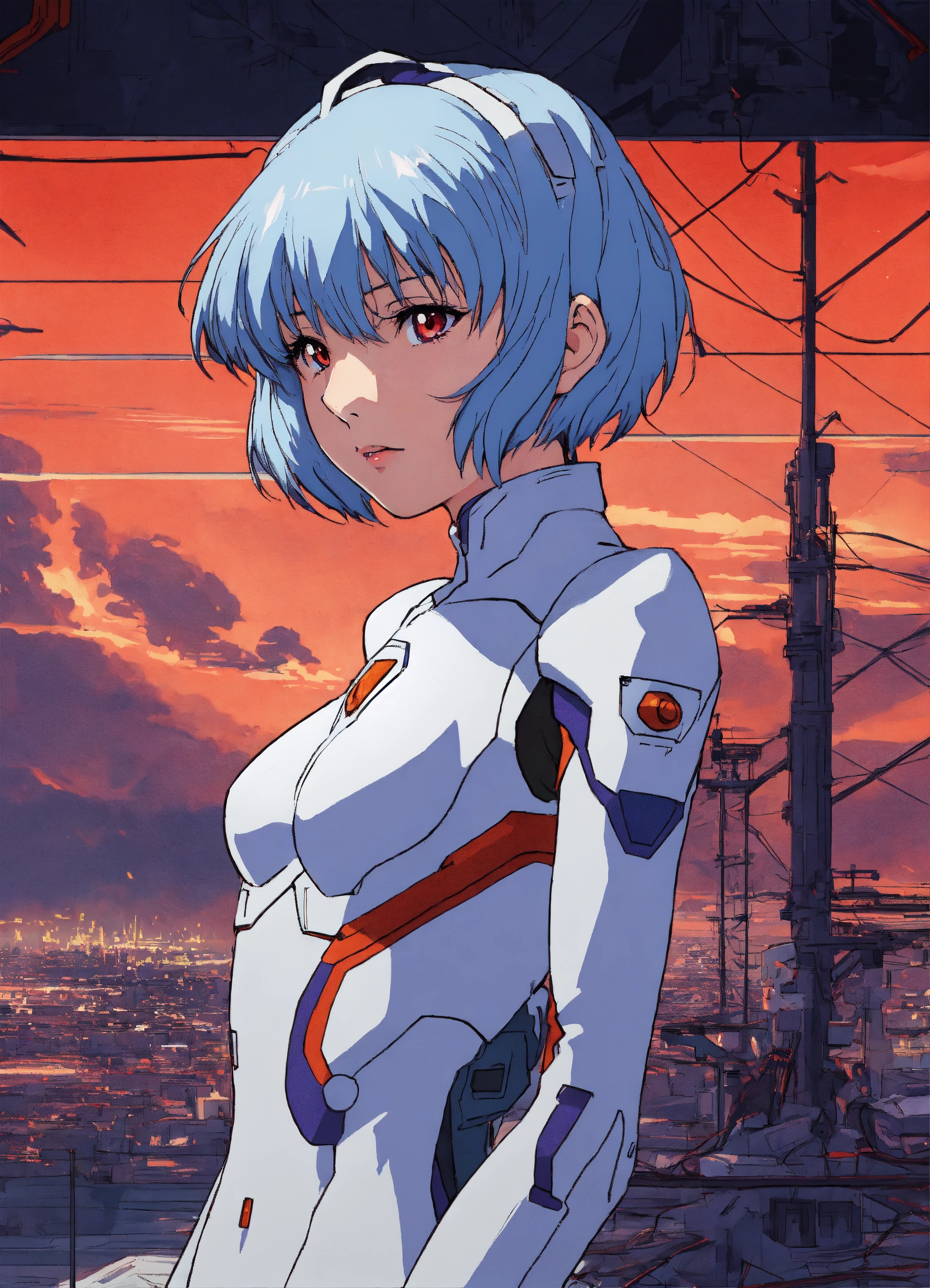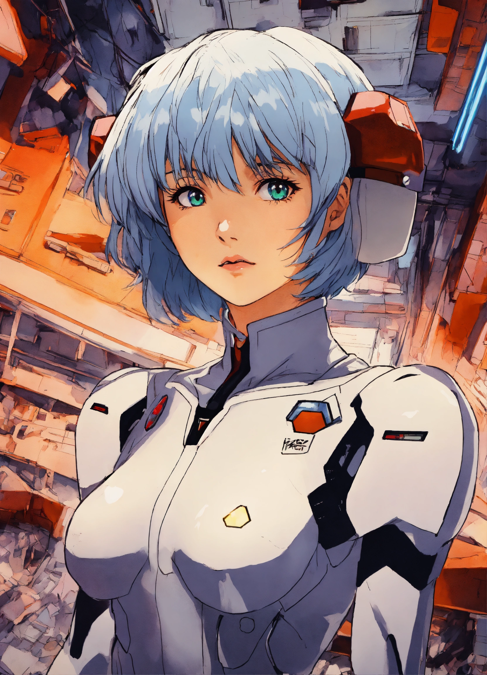 Beautiful anime art of rei ayanami from neon genesis evangelion, detailed scene, stunning details, trending on artstation, ray-traced environment, vintage 90's anime artwork, pen and ink illustration, behance trending
