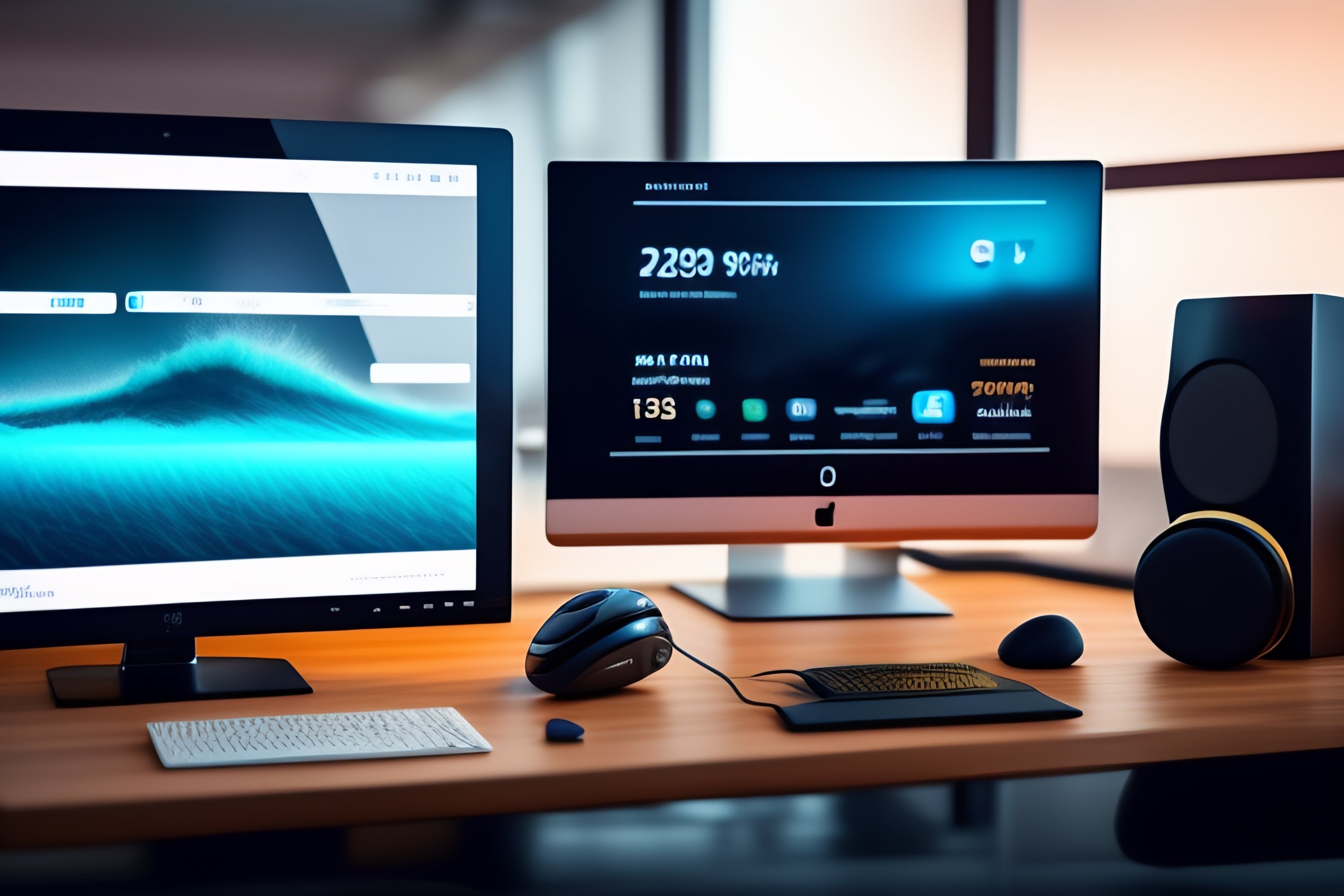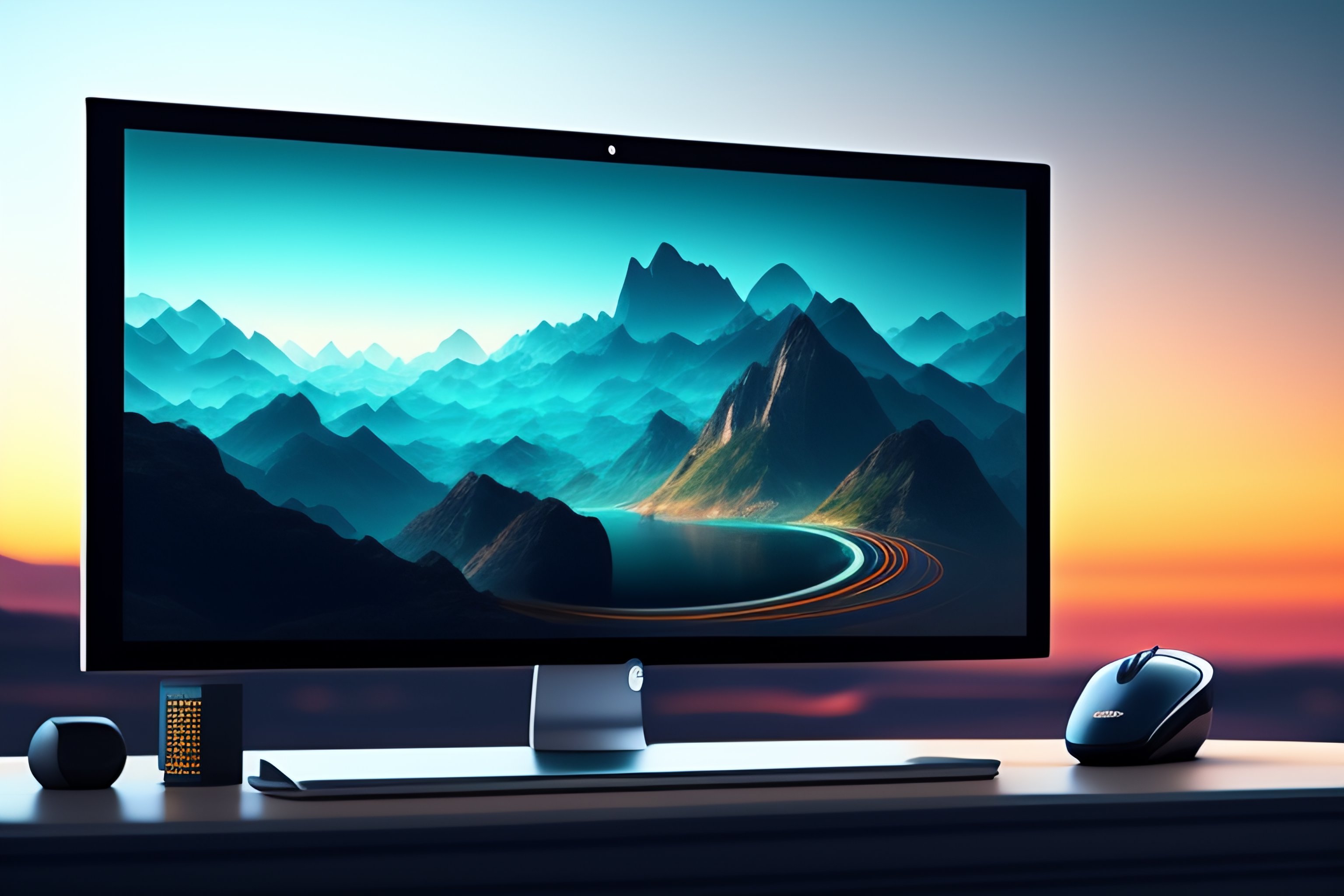 Image for landing page, selling technological products related to computing, 8k, big screen, realistic, details, computer, mouse, headphones