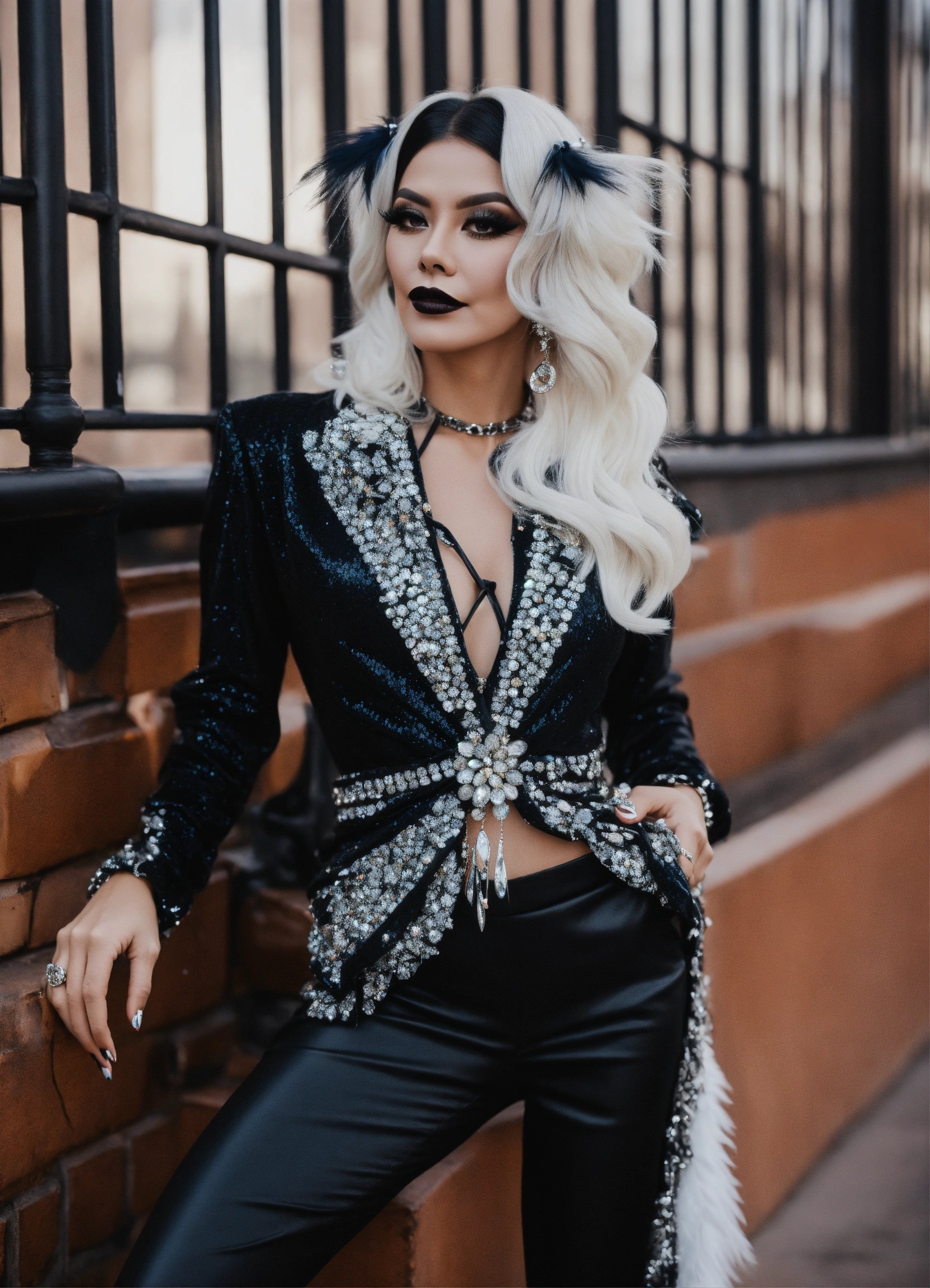 Dreamcatcher jiu glamorous sparkly cruella de vil inspired outfit with high heels