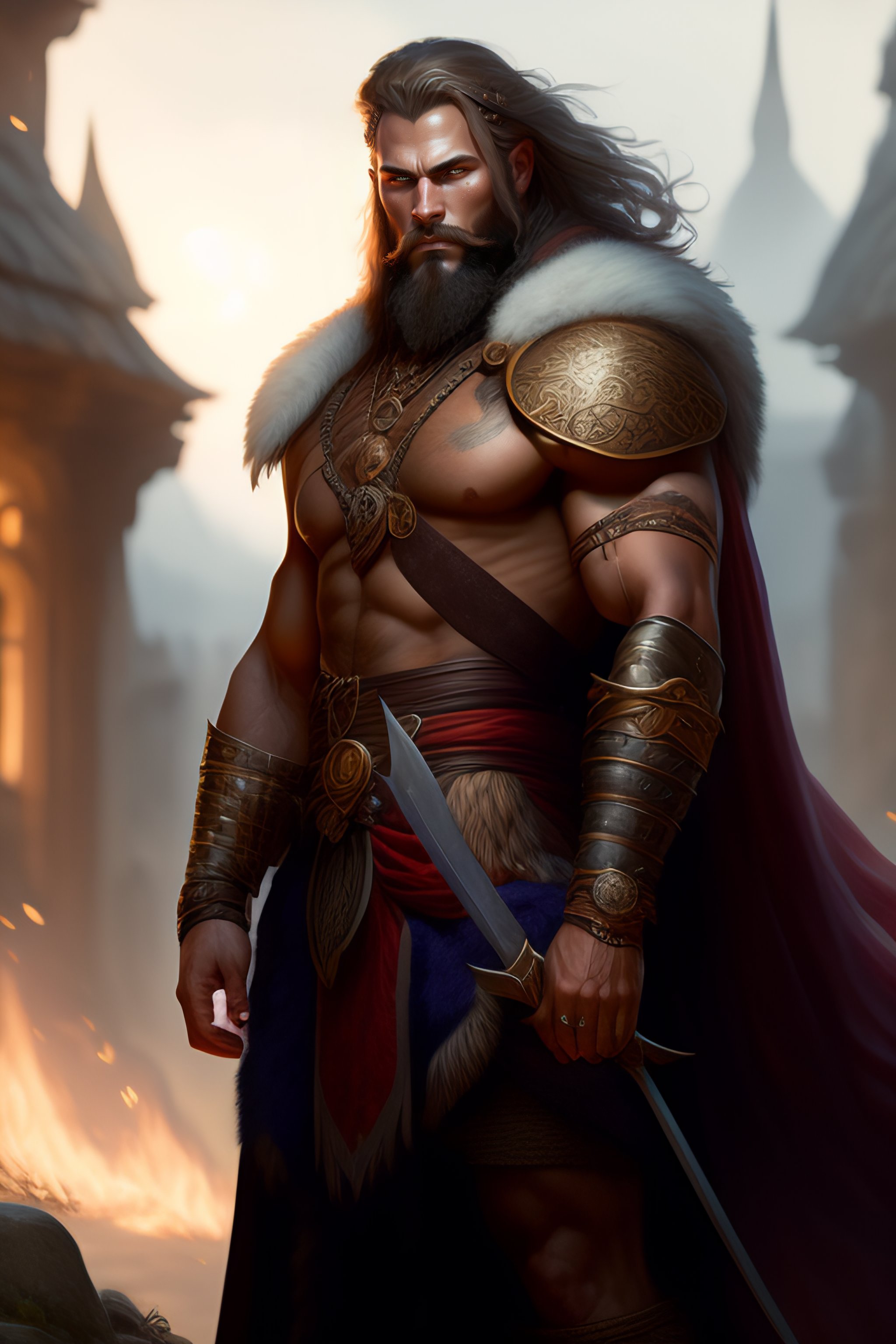 Male fantasy barbarian viking warrior ready for bedtime, old mystic ruins, afternoon, intricate, elegant, highly detailed, digital painting, sharp, focus, by artgerm and greg rutkowski, alphonse mucha, cgsociety, 8k