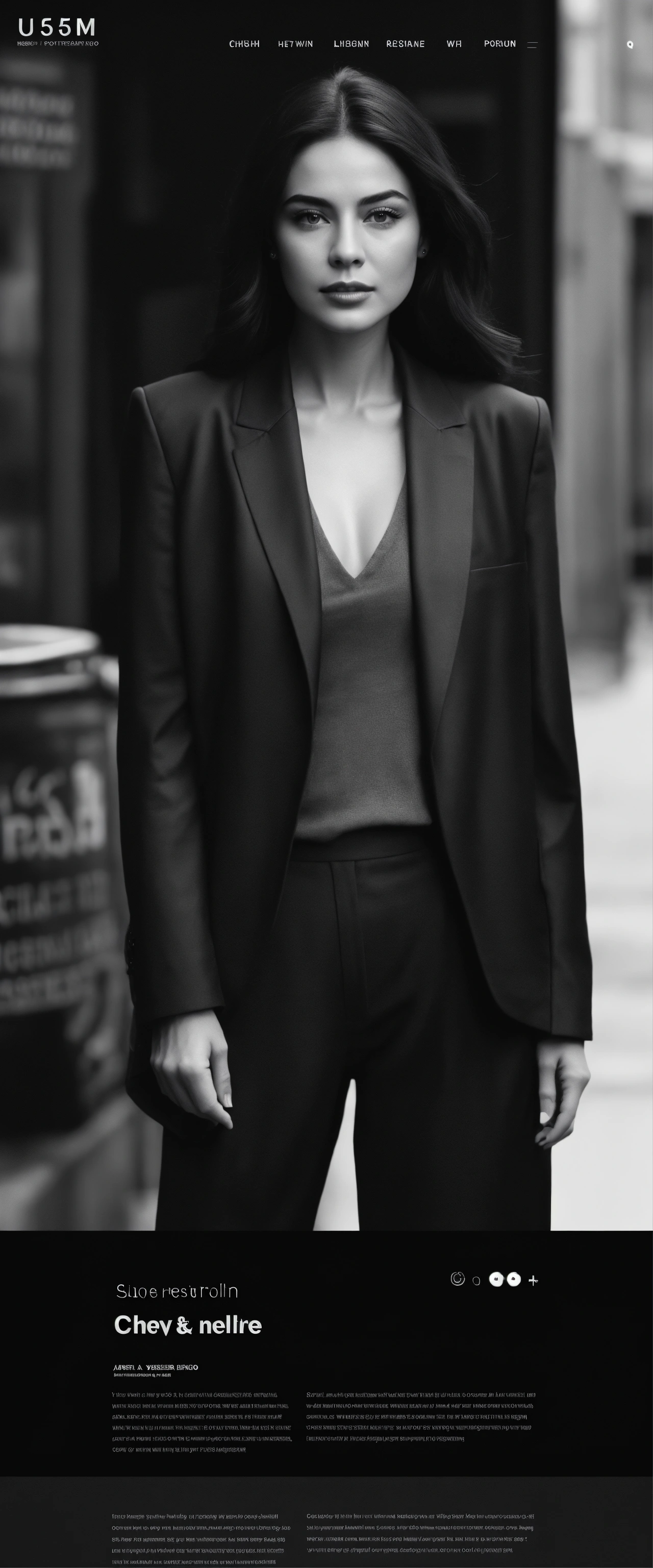 Ultra realistic minimalist template black and white, of a cinema actress 35 years modern, web design photo realist, ultra details, template hd website web designer, with ultra design color