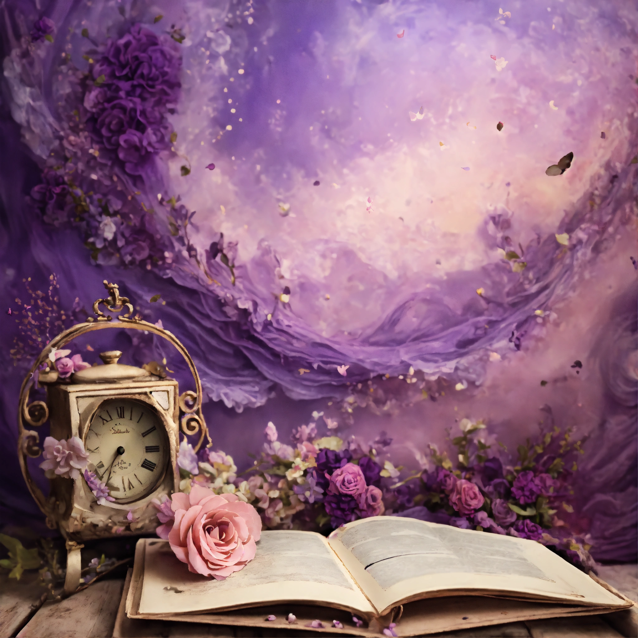 Shabby chic dreamy mist pastel junk journals purple ladies swirling magical fairytale abstract art style