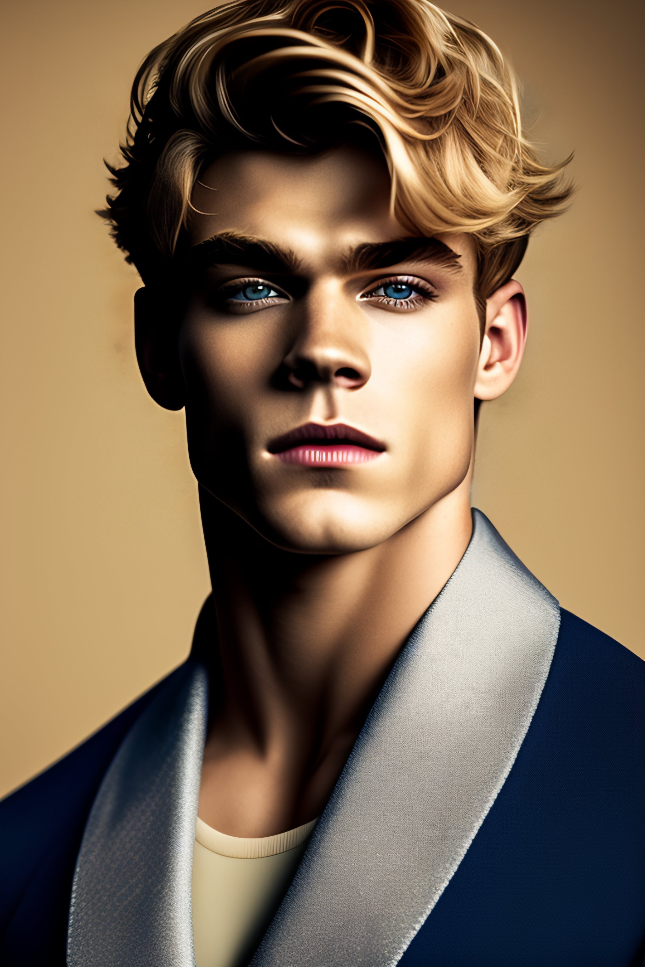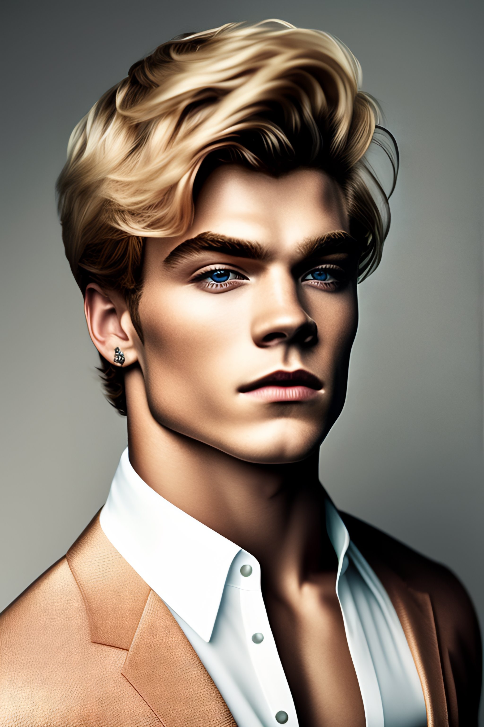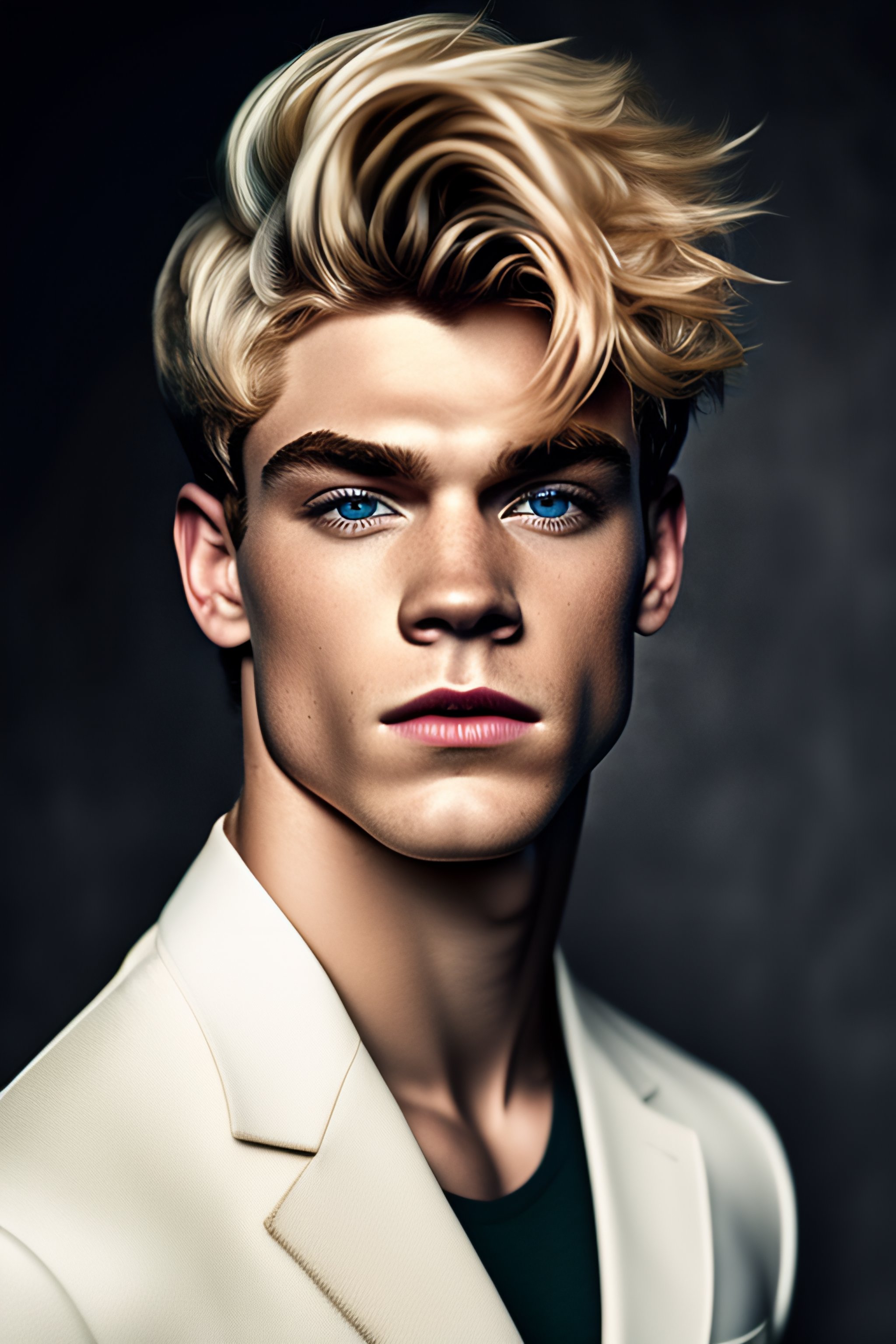 Mid-body portrait of 20 year old ross lynch, short hair, fashion editorial, studio photography, magazine photography, pointed nose, blurry background, masculine.