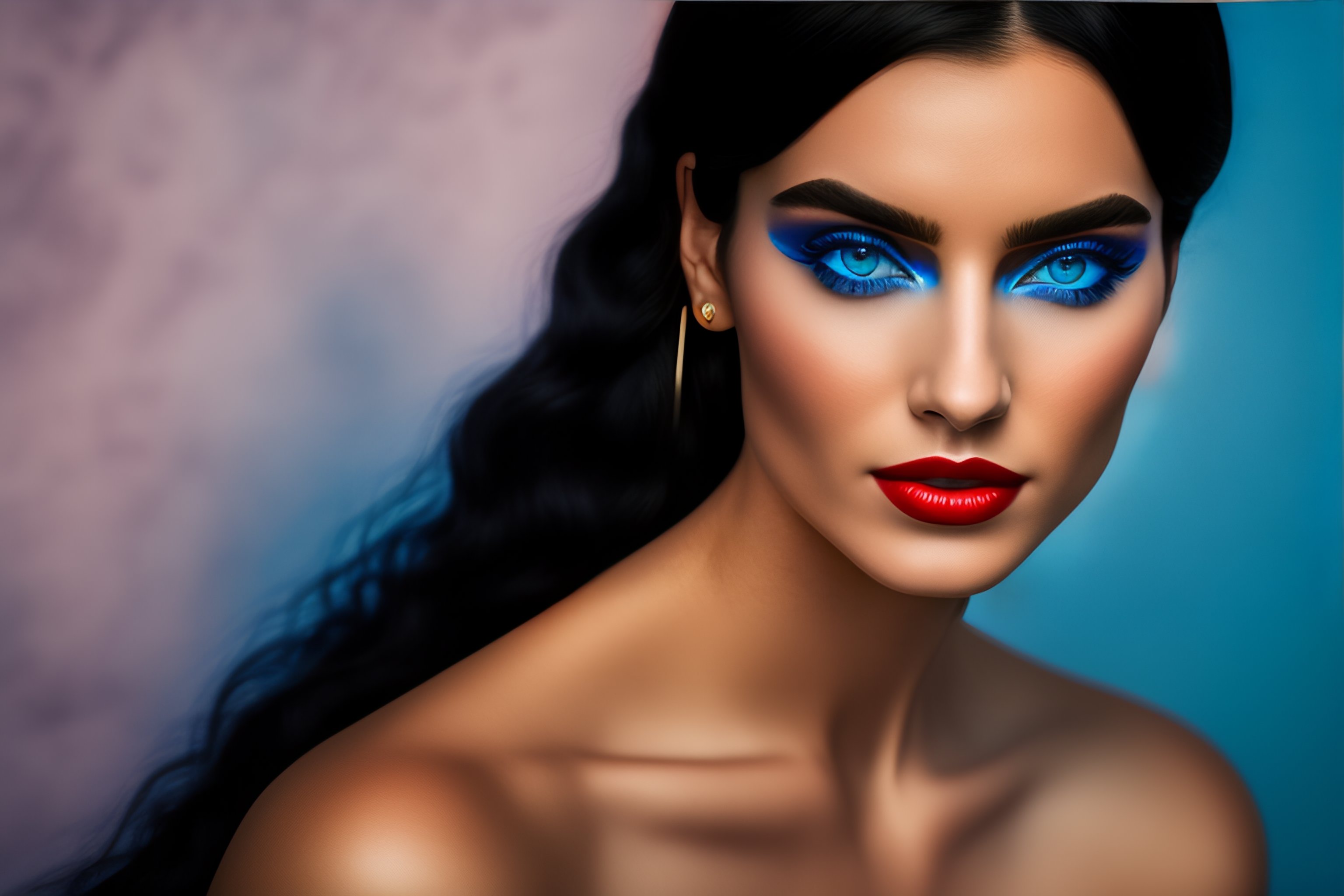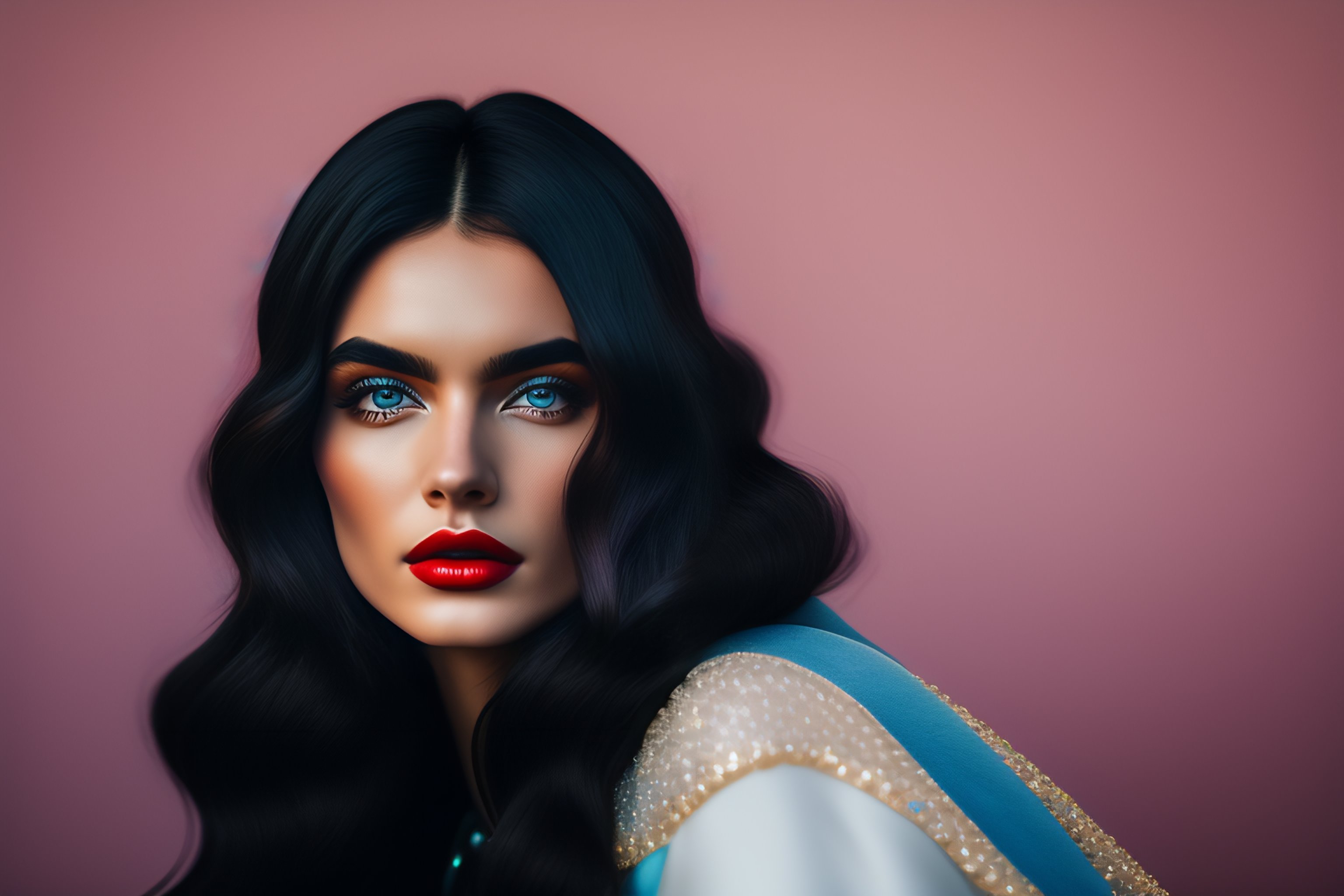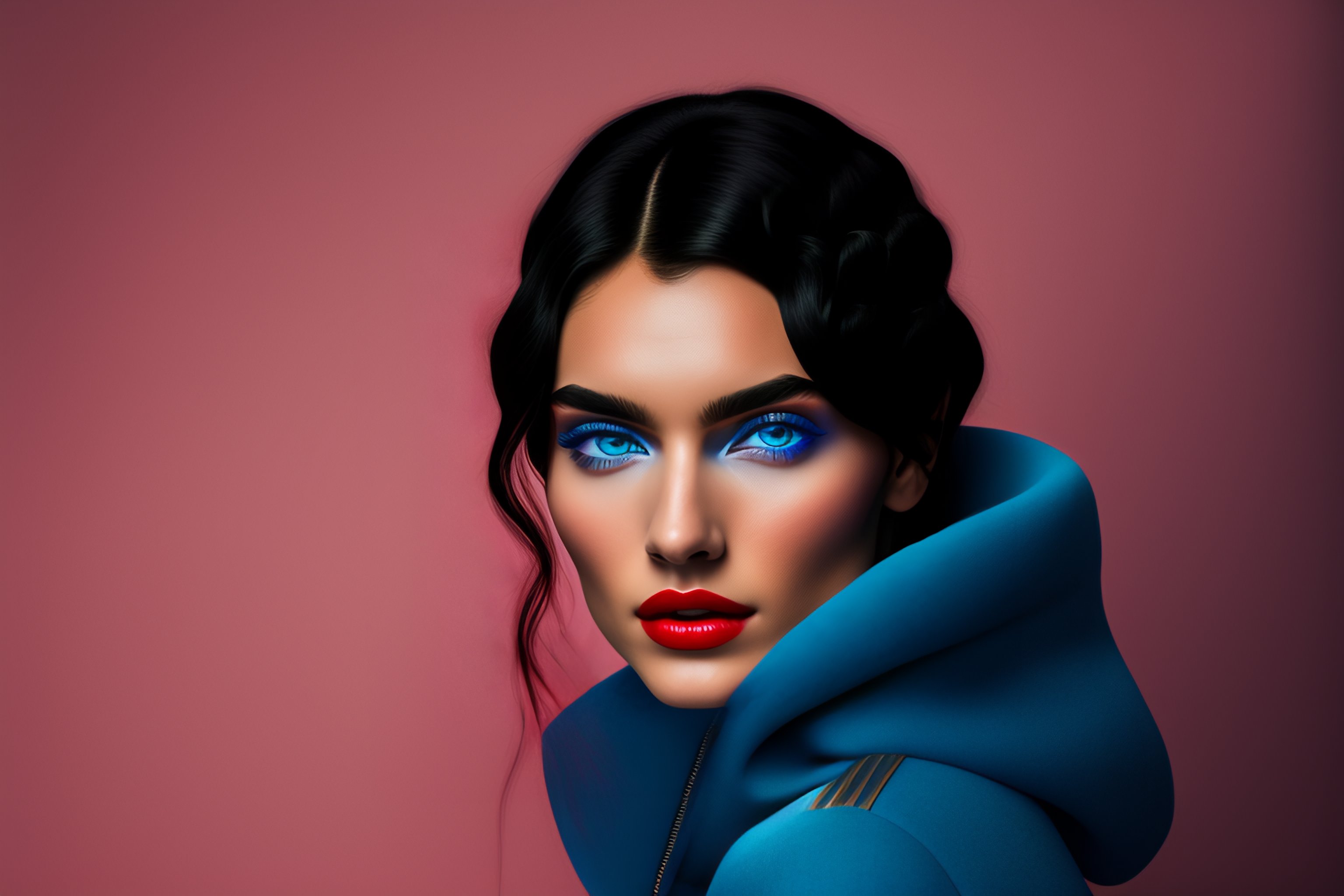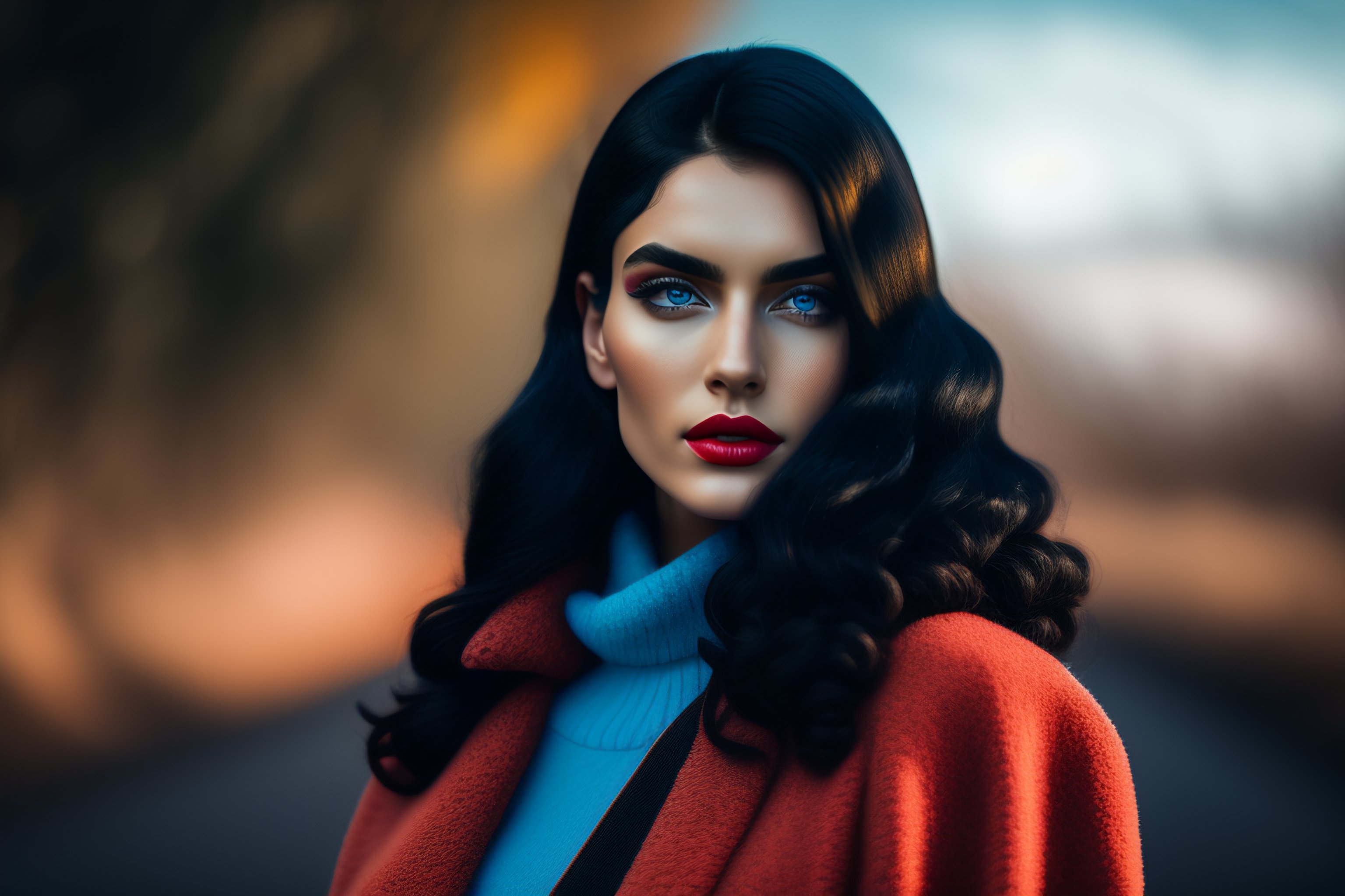 A portrait of a toxic girl, black hair, blue eyes, fine - art photography, soft portrait shot 8 k, mid length, ultrarealistic uhd faces, unsplash, kodak ultra max 800, 85 mm, intricate, casual pose, centered symmetrical composition, stunning photos, masterpiece, centered composition, thin red lip, fine eyebrows, pale skin