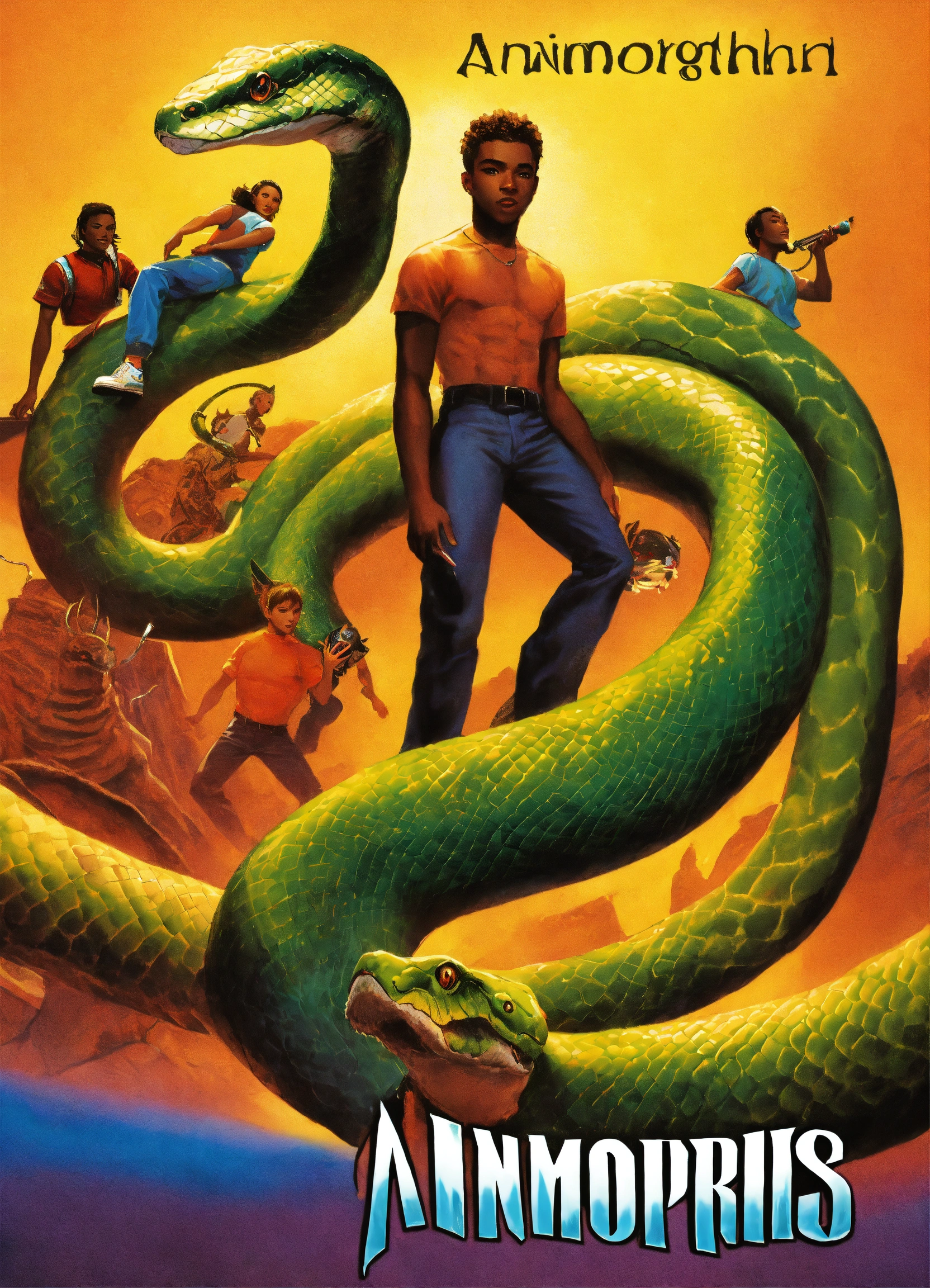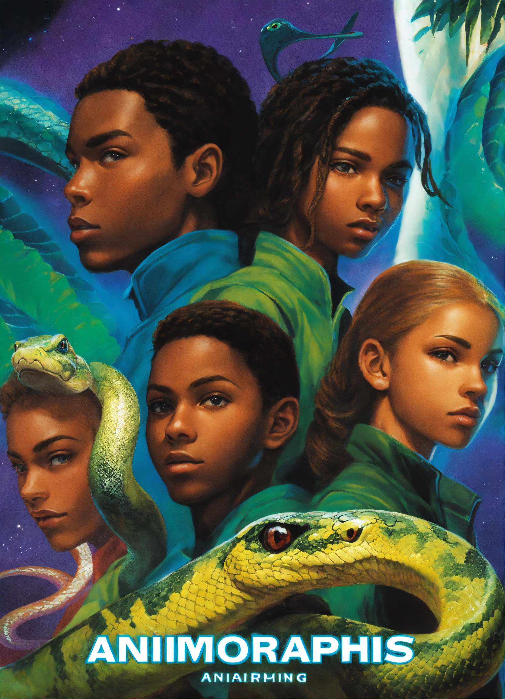 Animorphs book cover art black characters transforming into snake