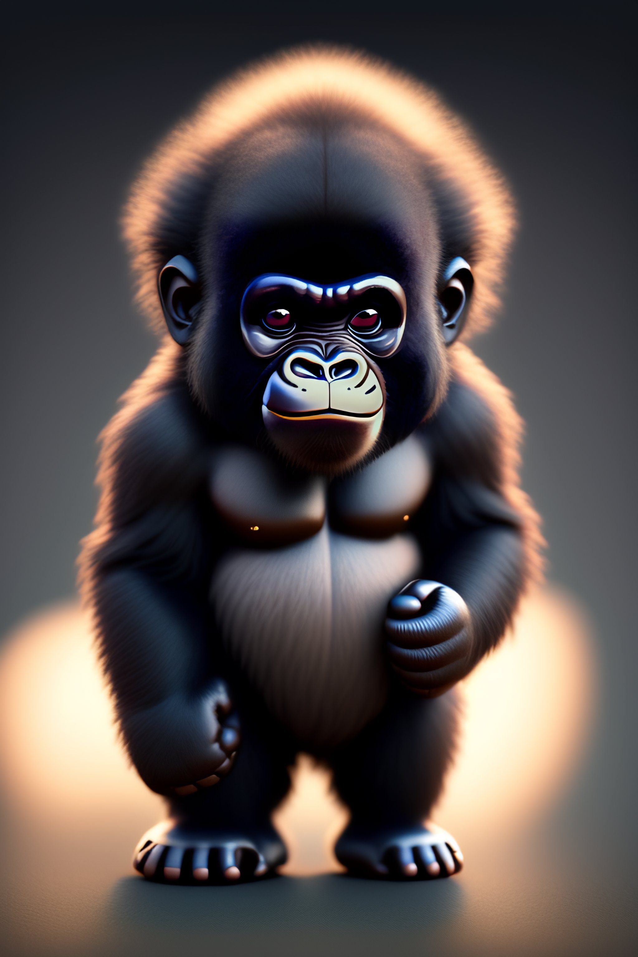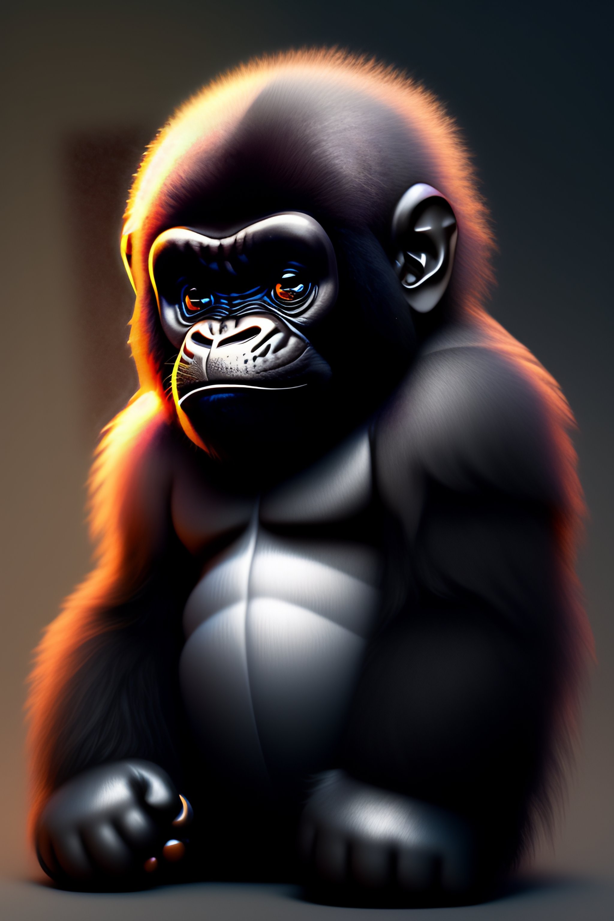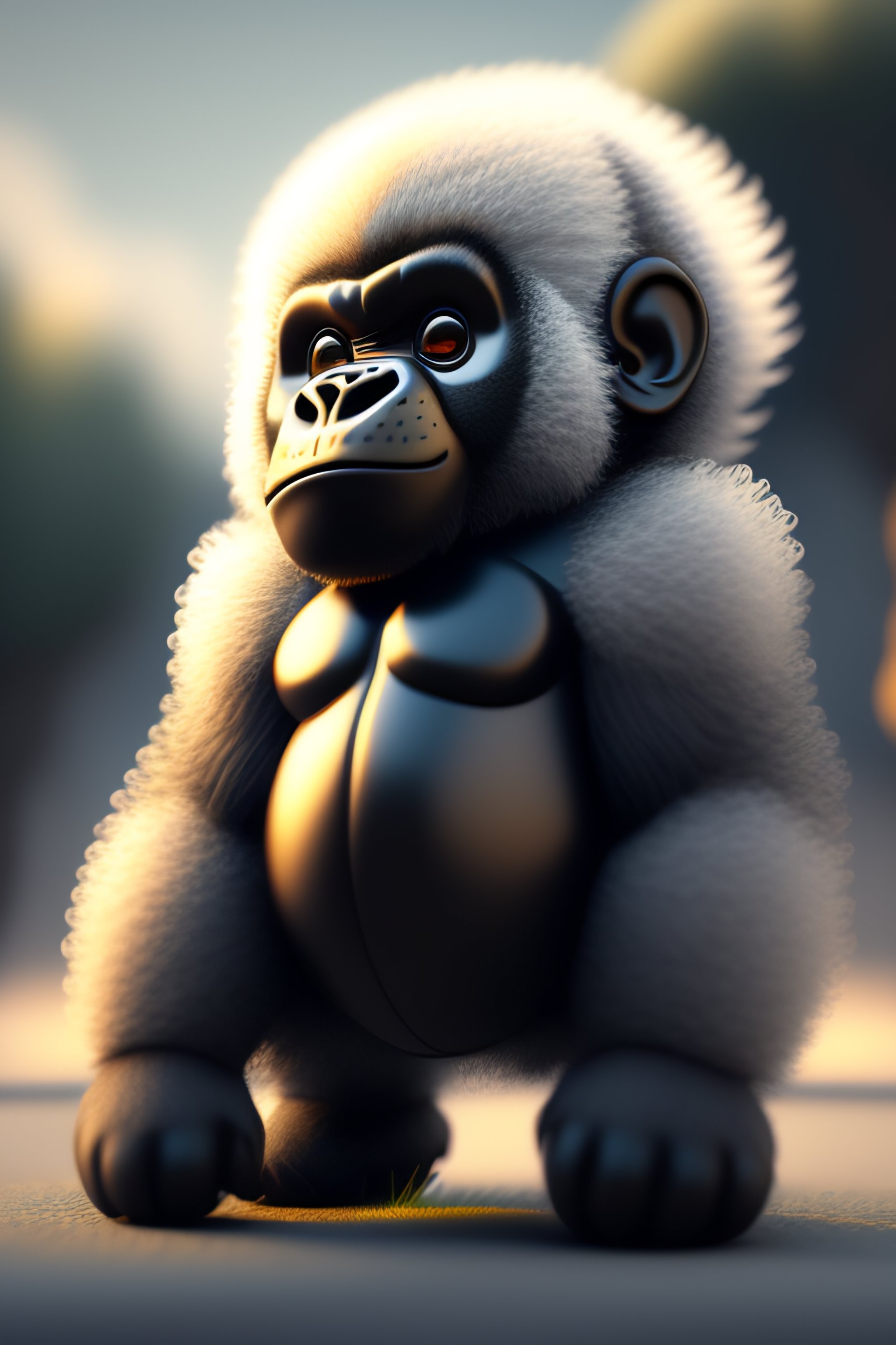 Cute and adorable cartoon fluffy baby black and white gorilla, fantasy, dreamlike, surrealism, super cute, trending on artstation