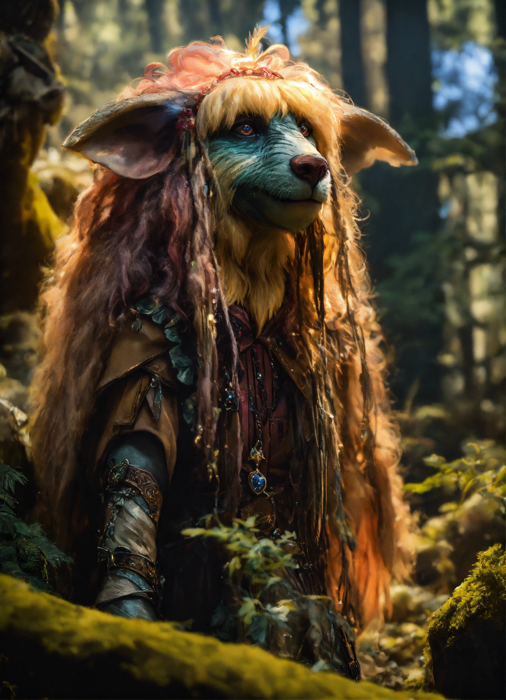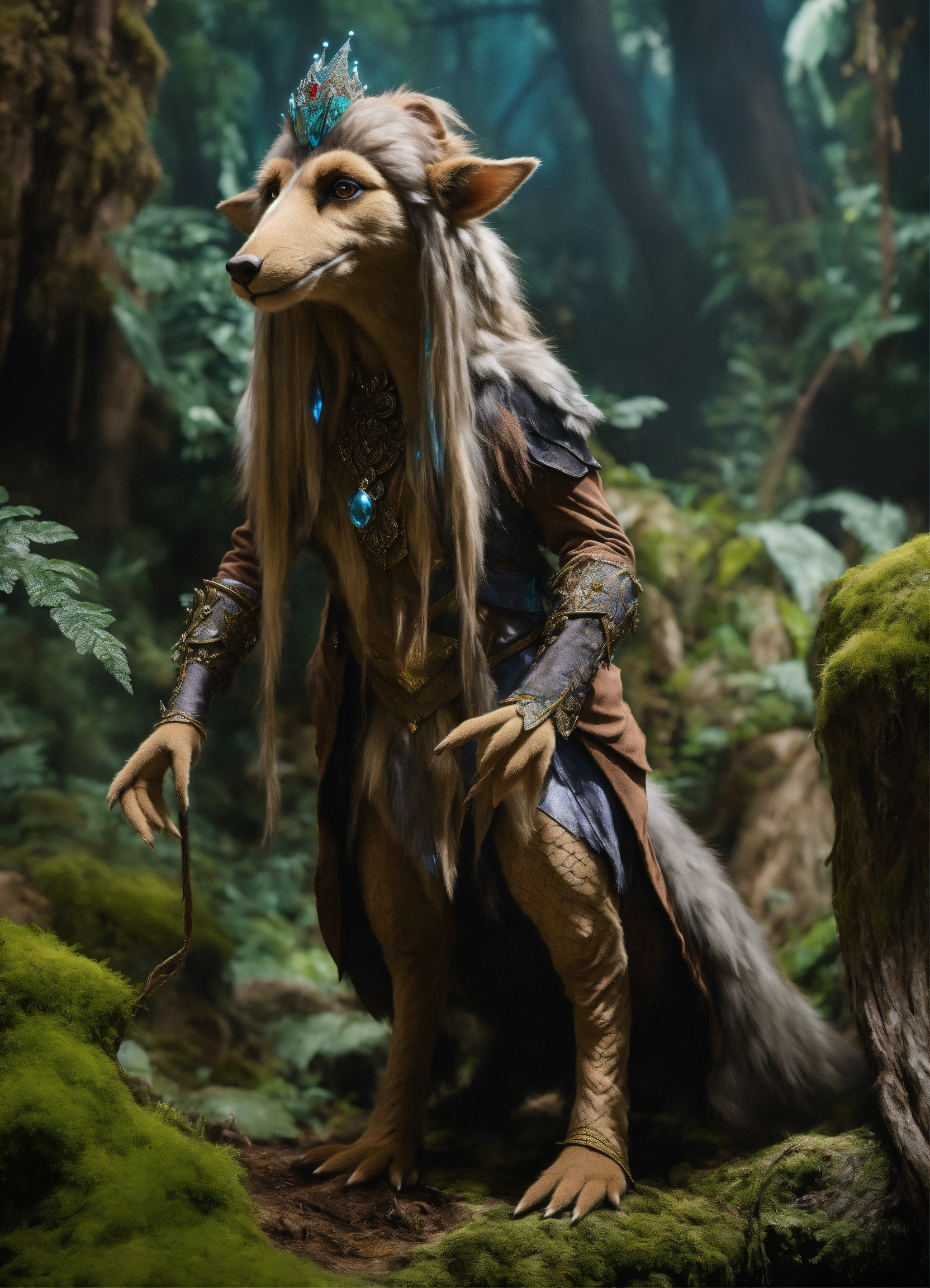 A gelflin extra furry princess full body life size in forest from the dark crystal hyperrealistic, splash art, concept art, mid shot, intricately detailed, color depth, dramatic, high definition