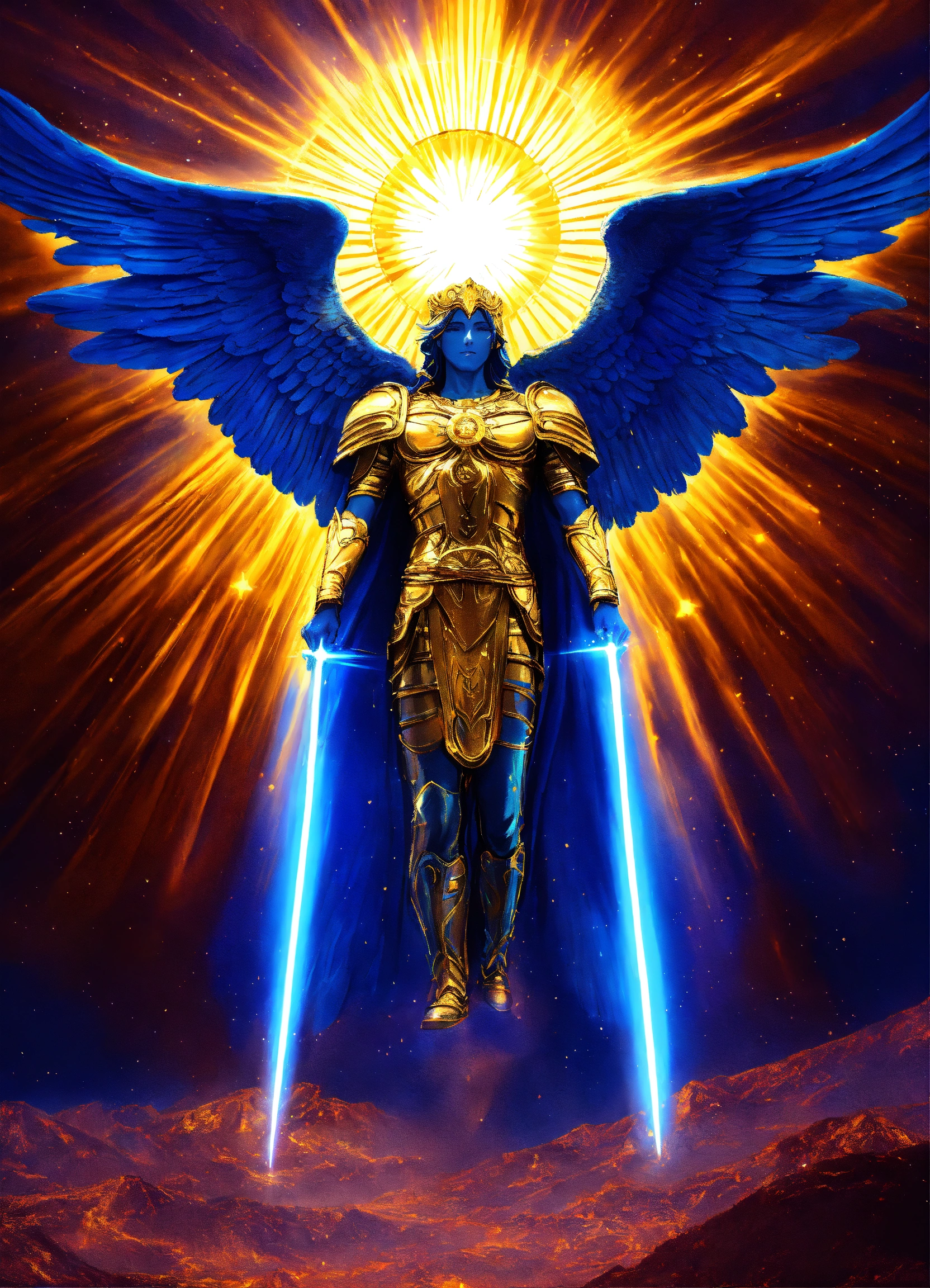 Archangel michael, cosmic blue light, power, blue light swort, blue ray, golden sun rays, earth ground, spiritual energy