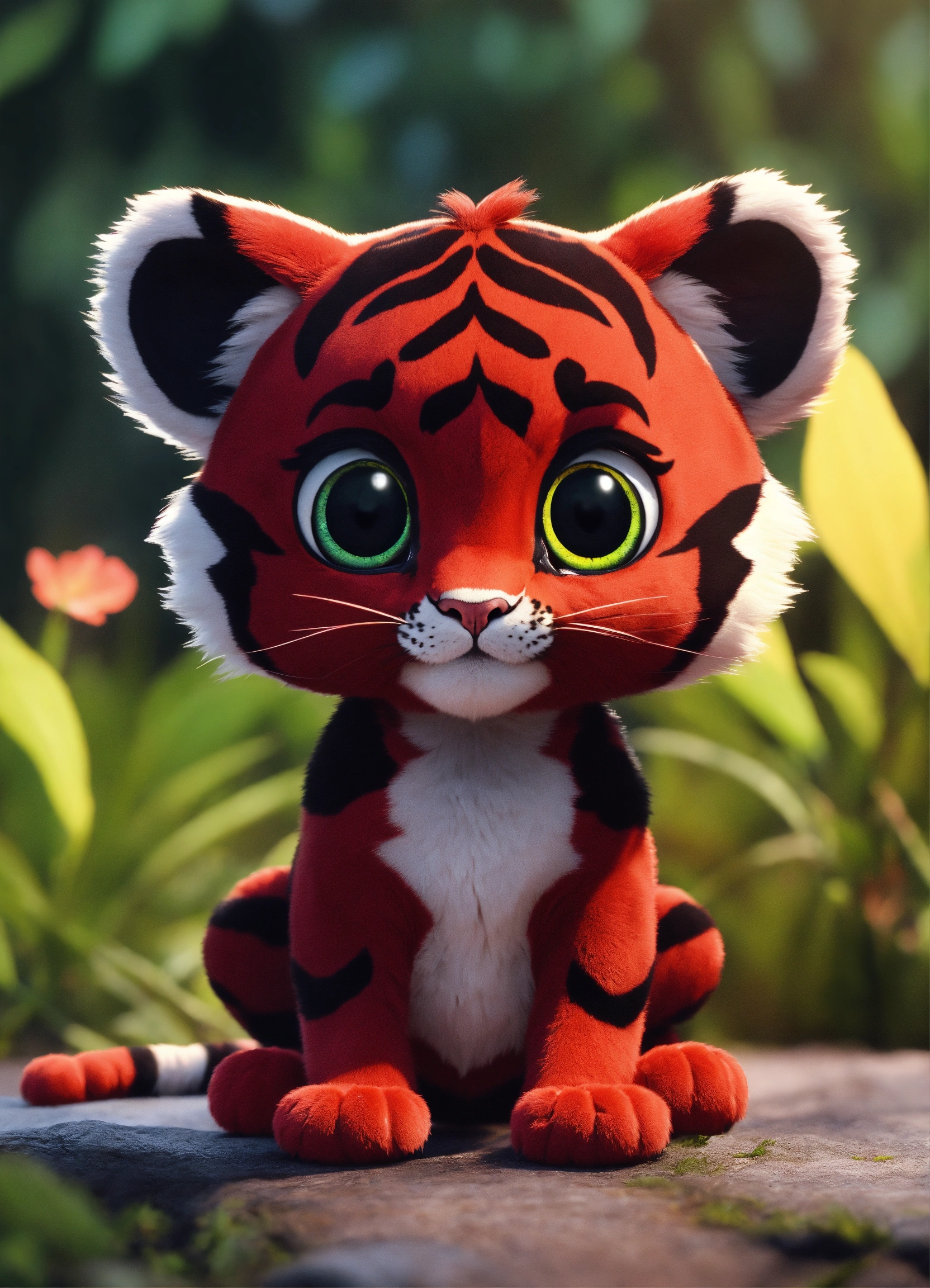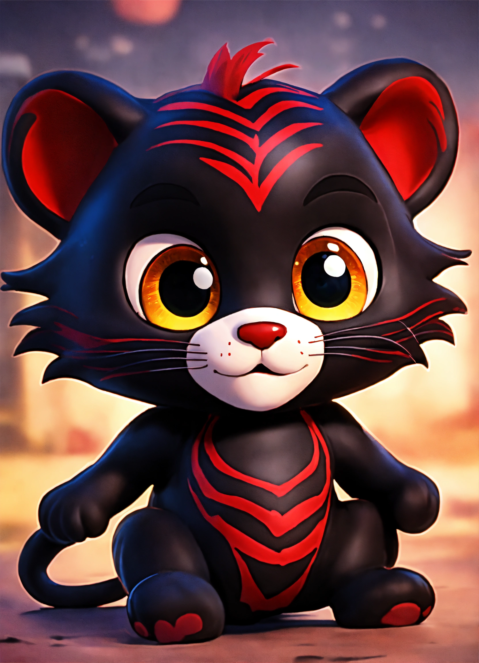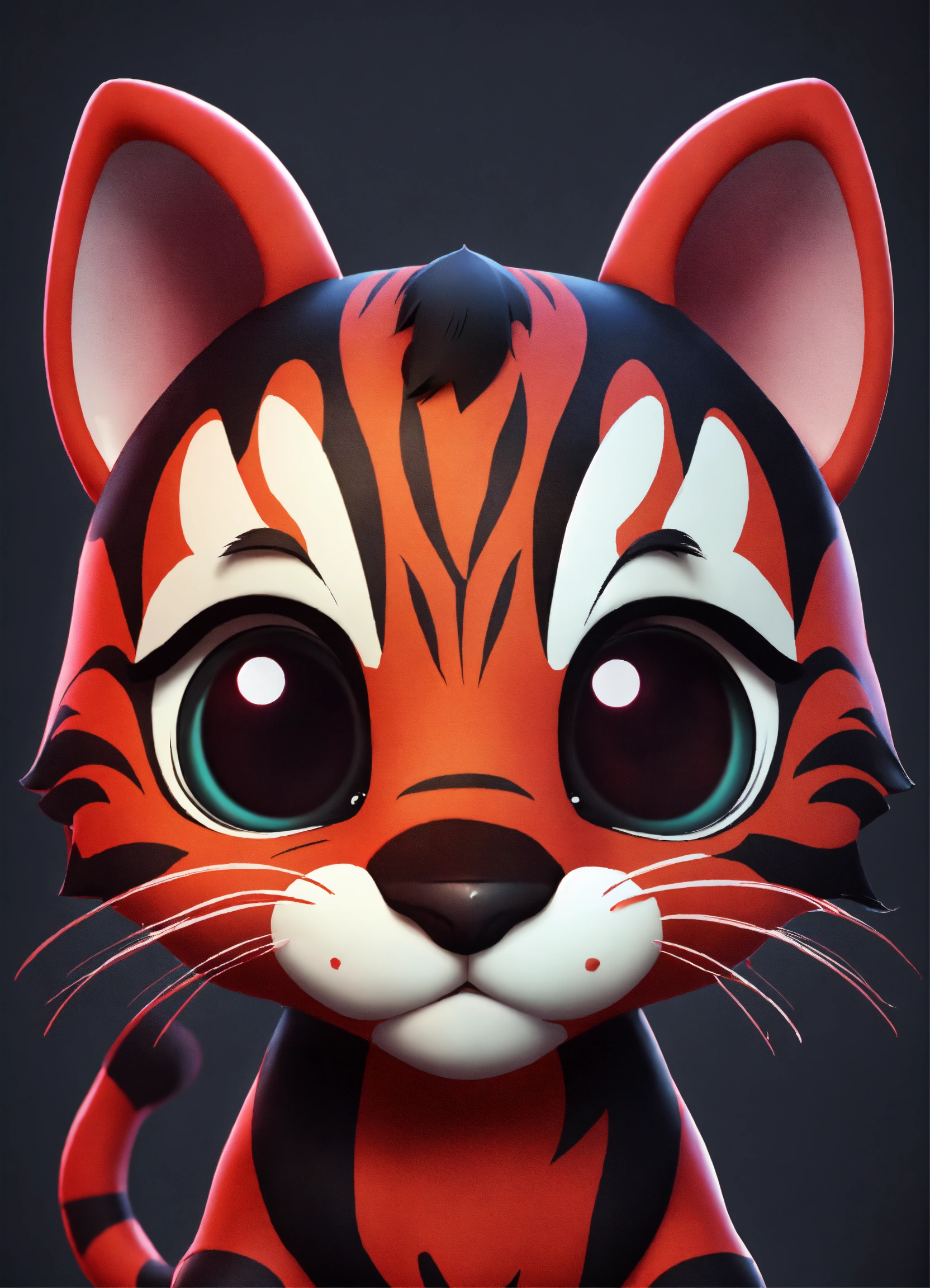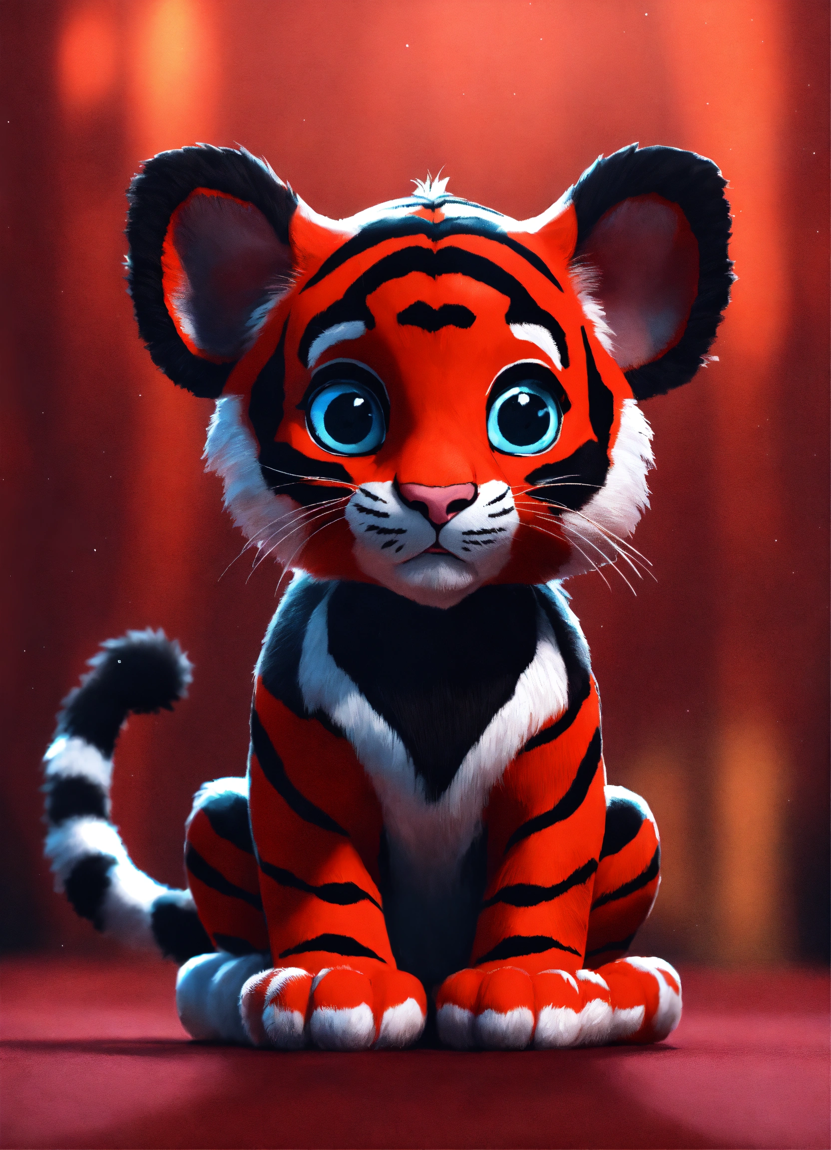 A cute dark red and black baby tiger with big eyes