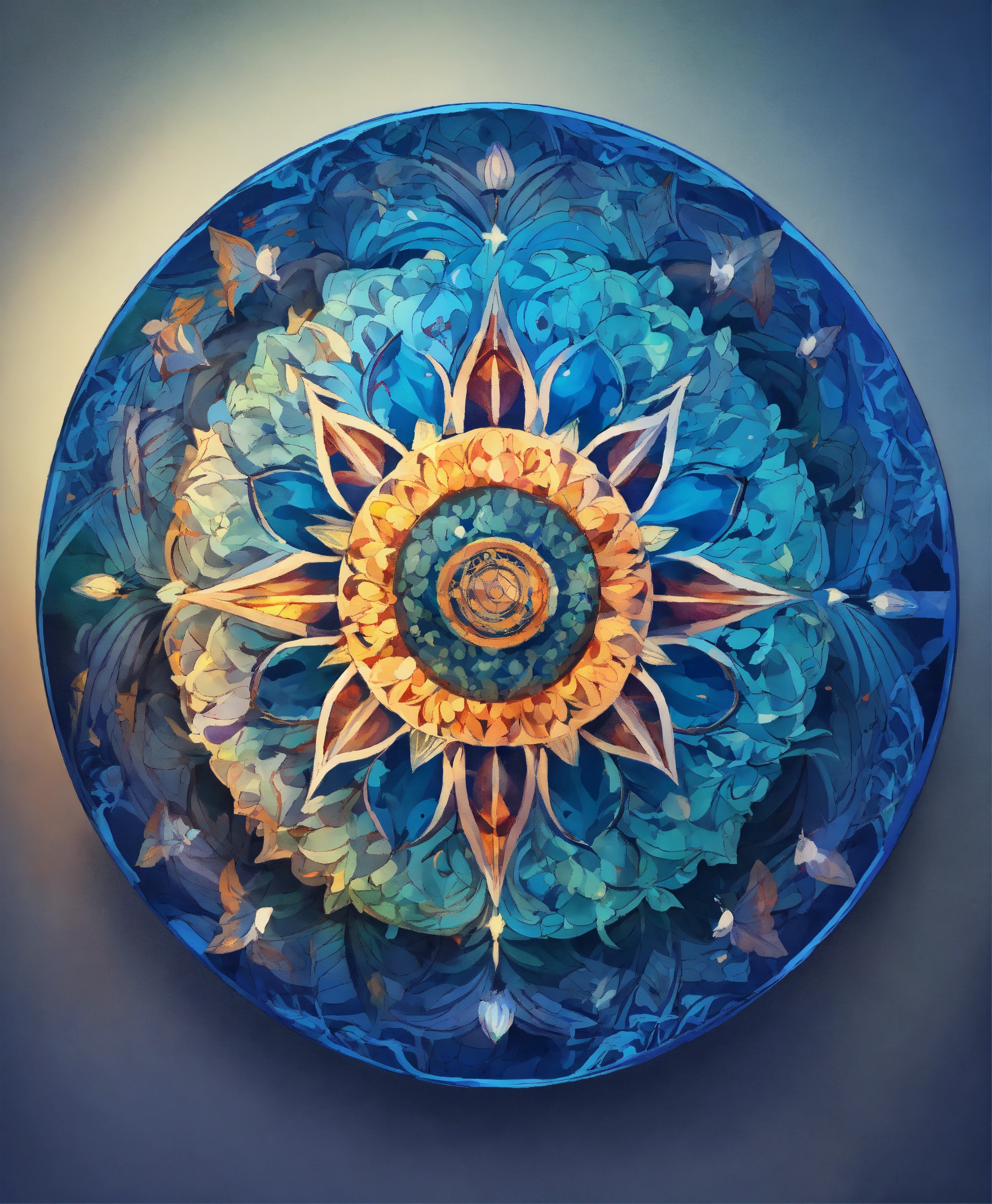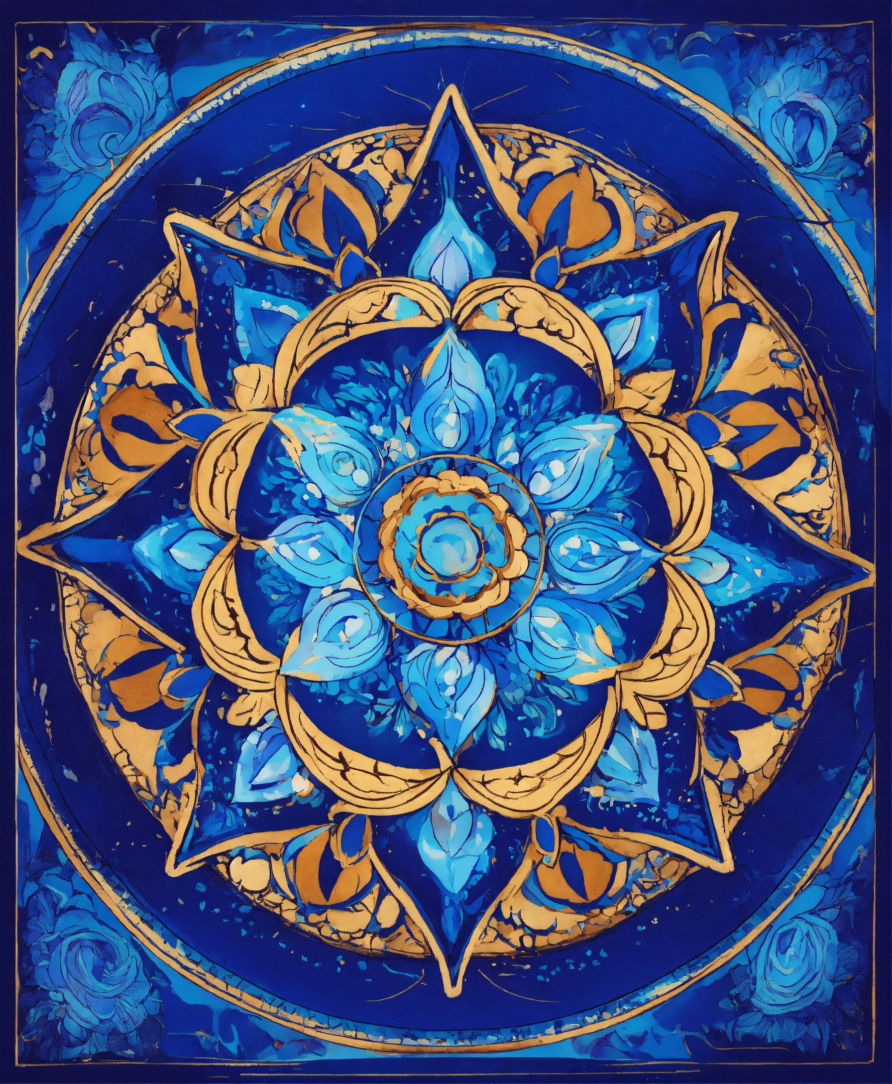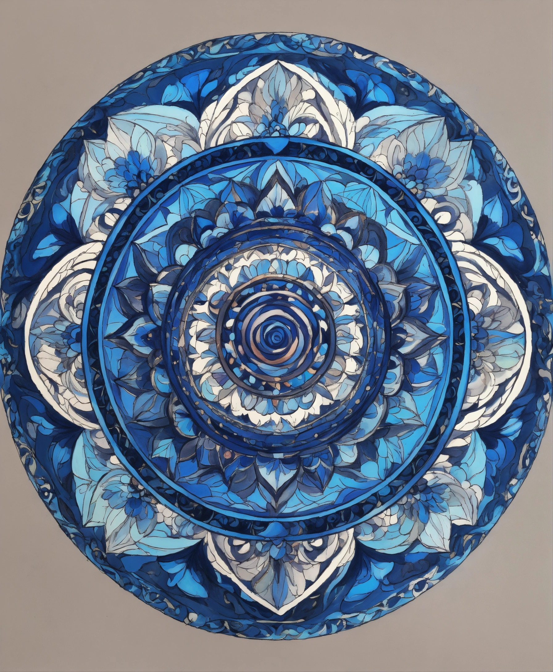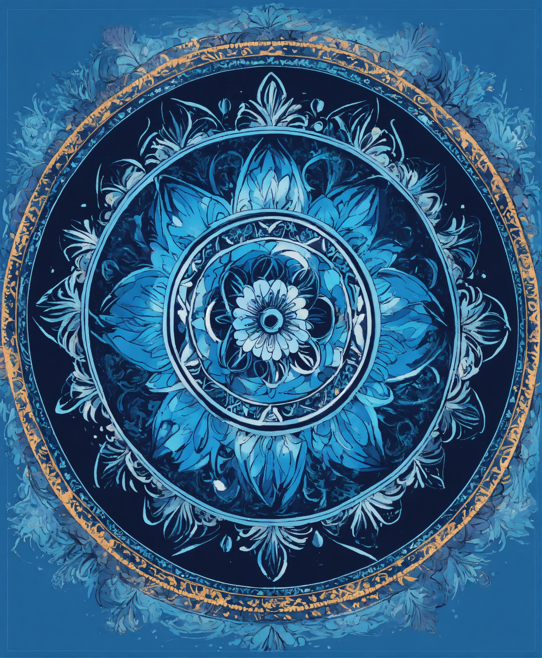 Perfect drawing of a magical circle mandala blue symbol with few strokes and forms