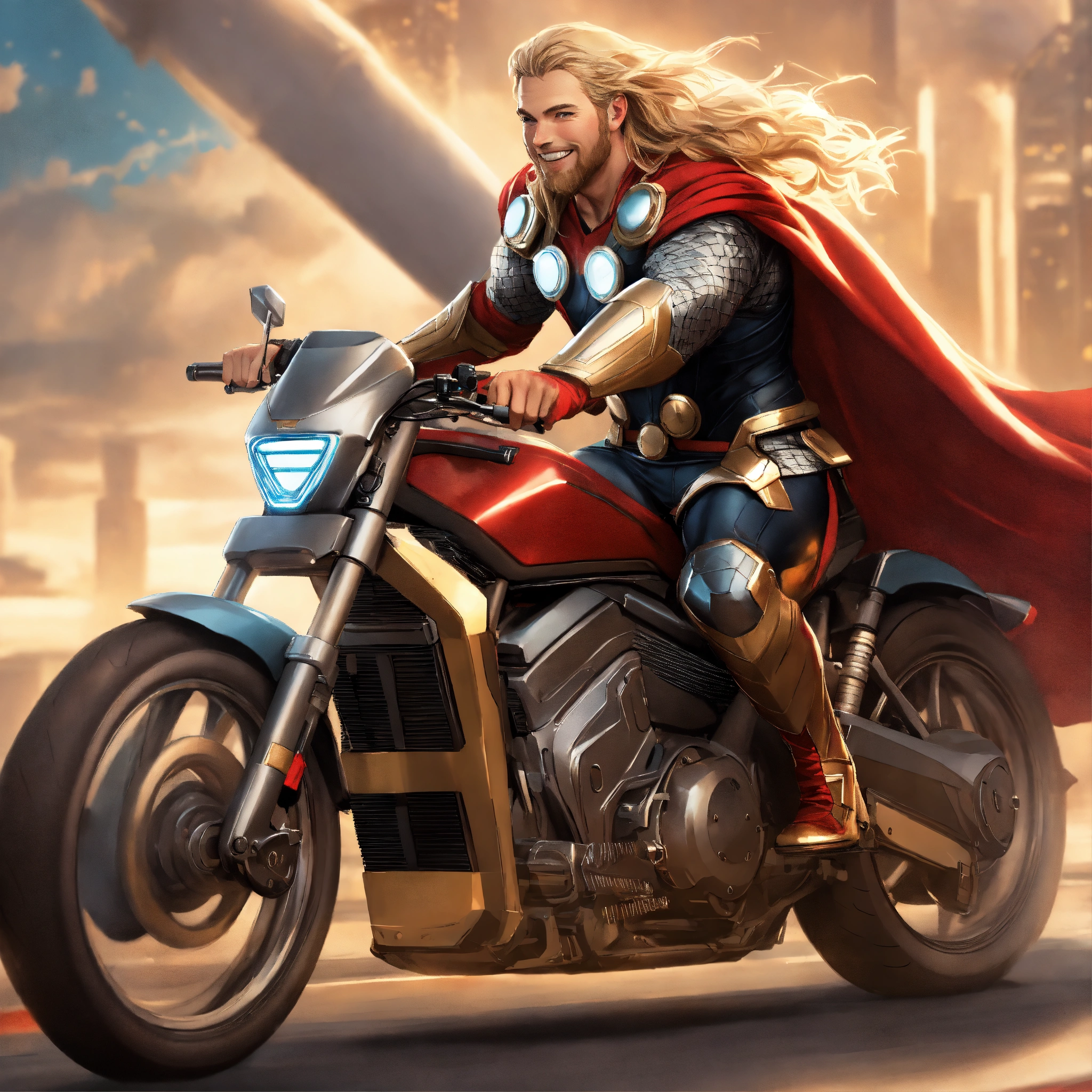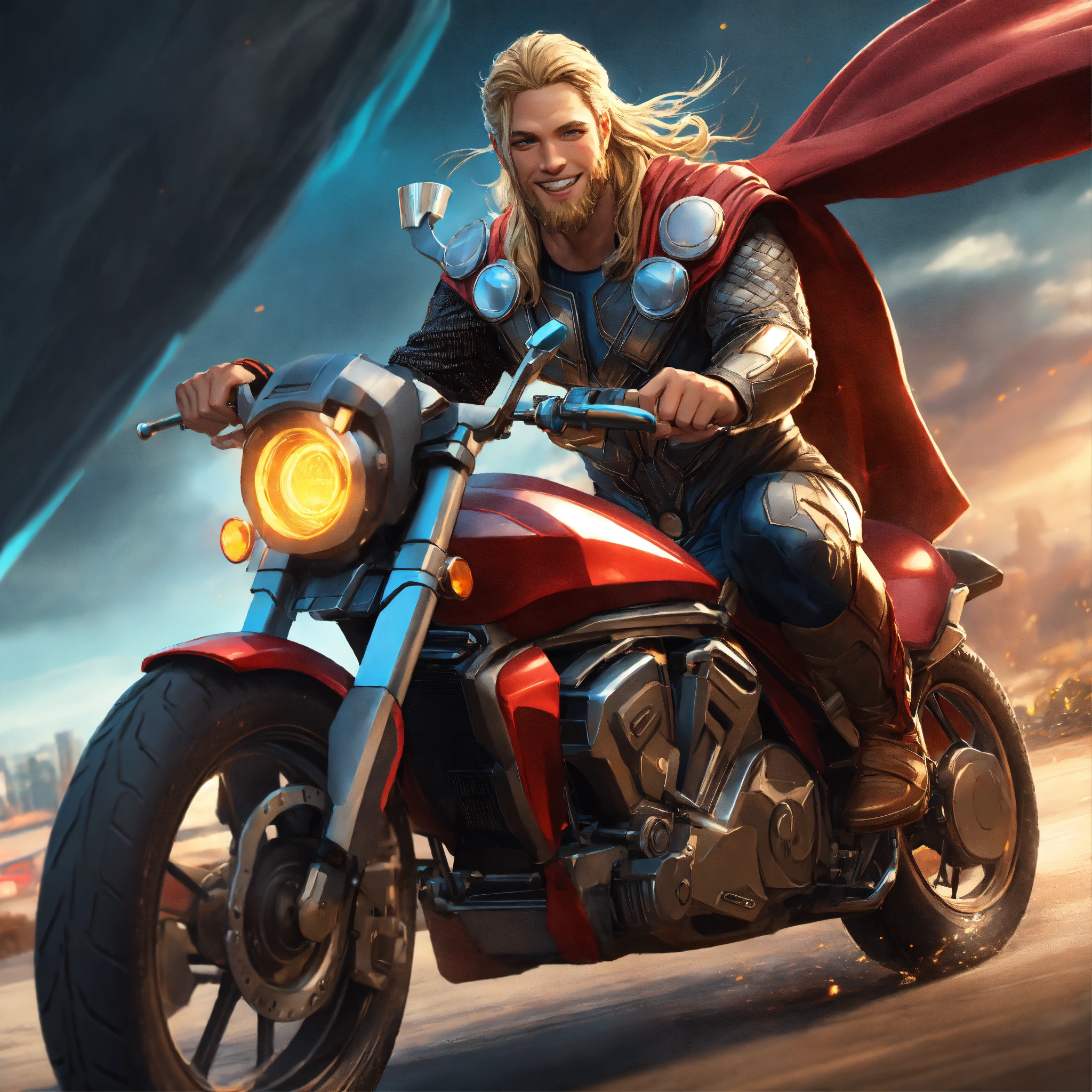 Artgerm thor is driving a bike