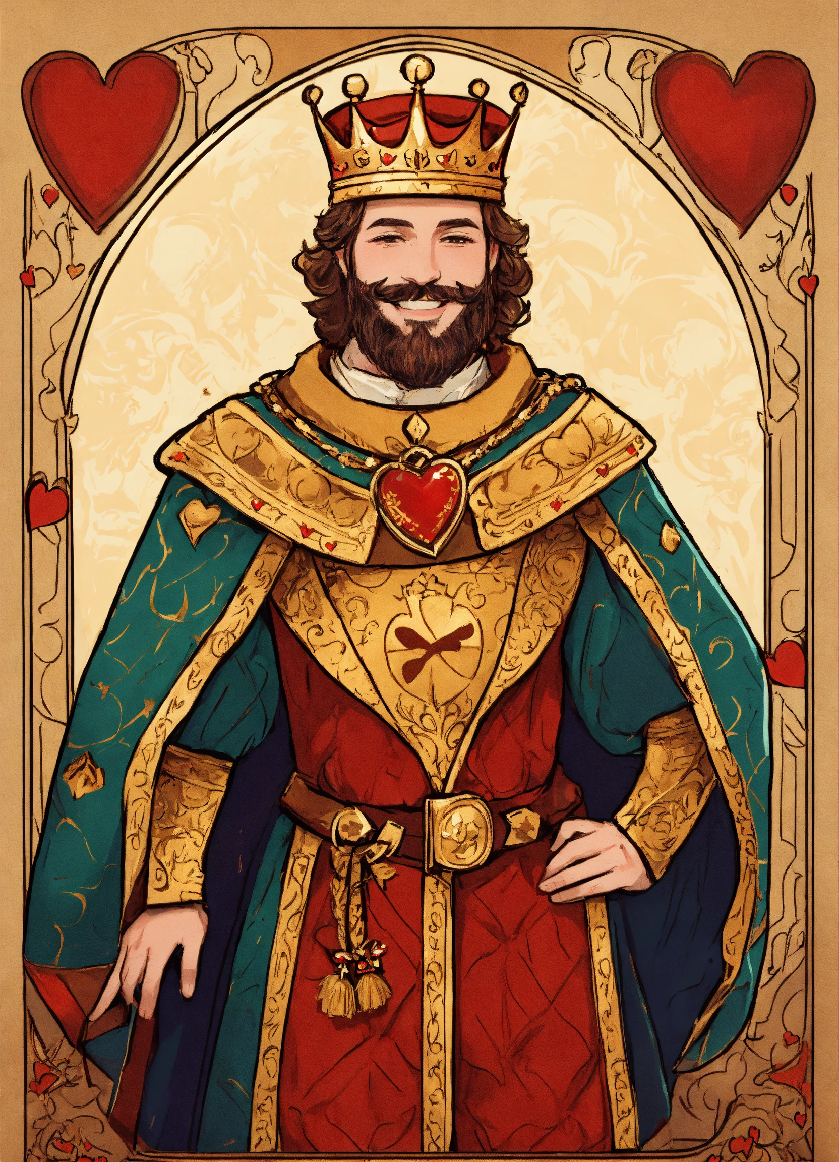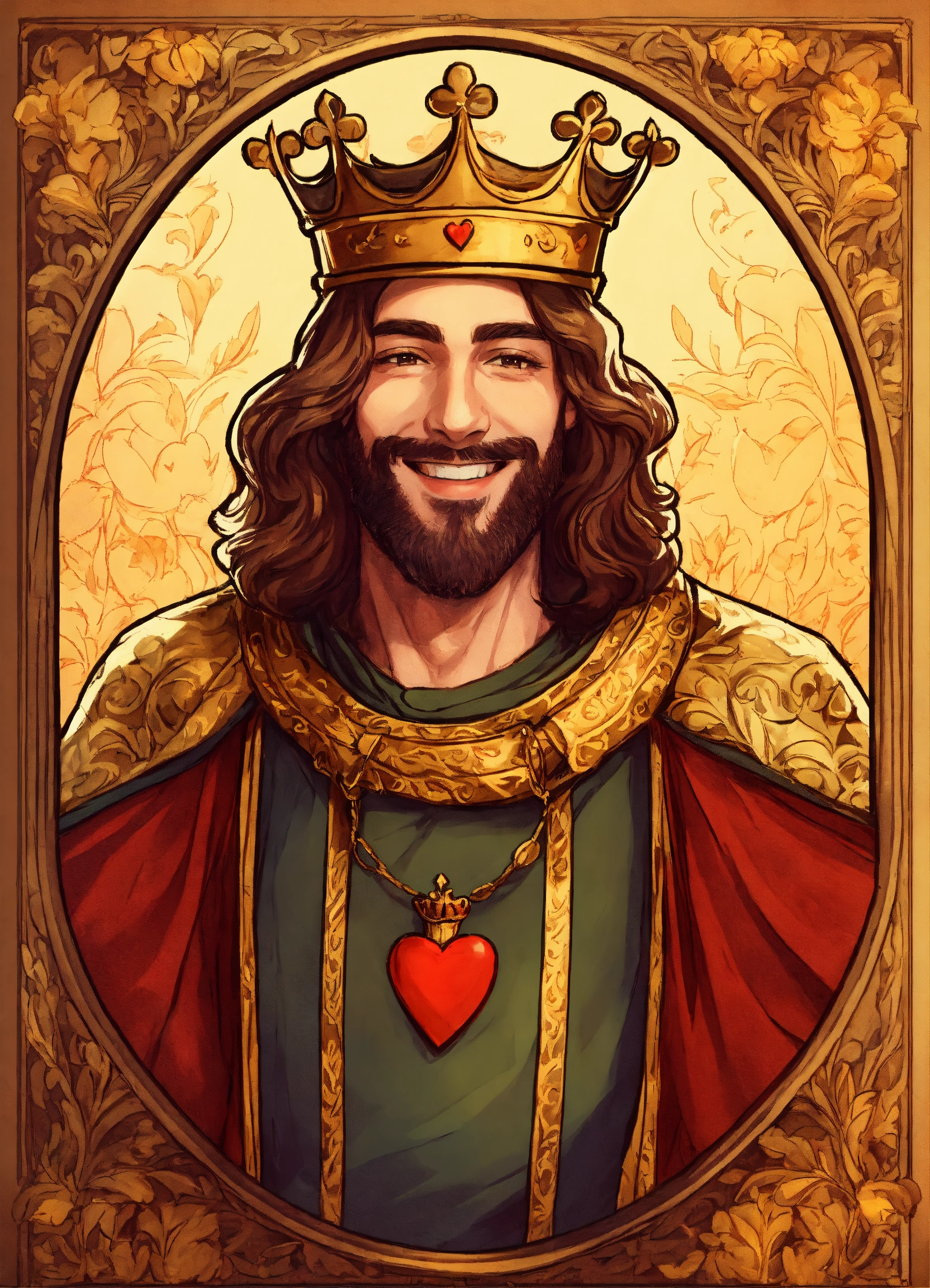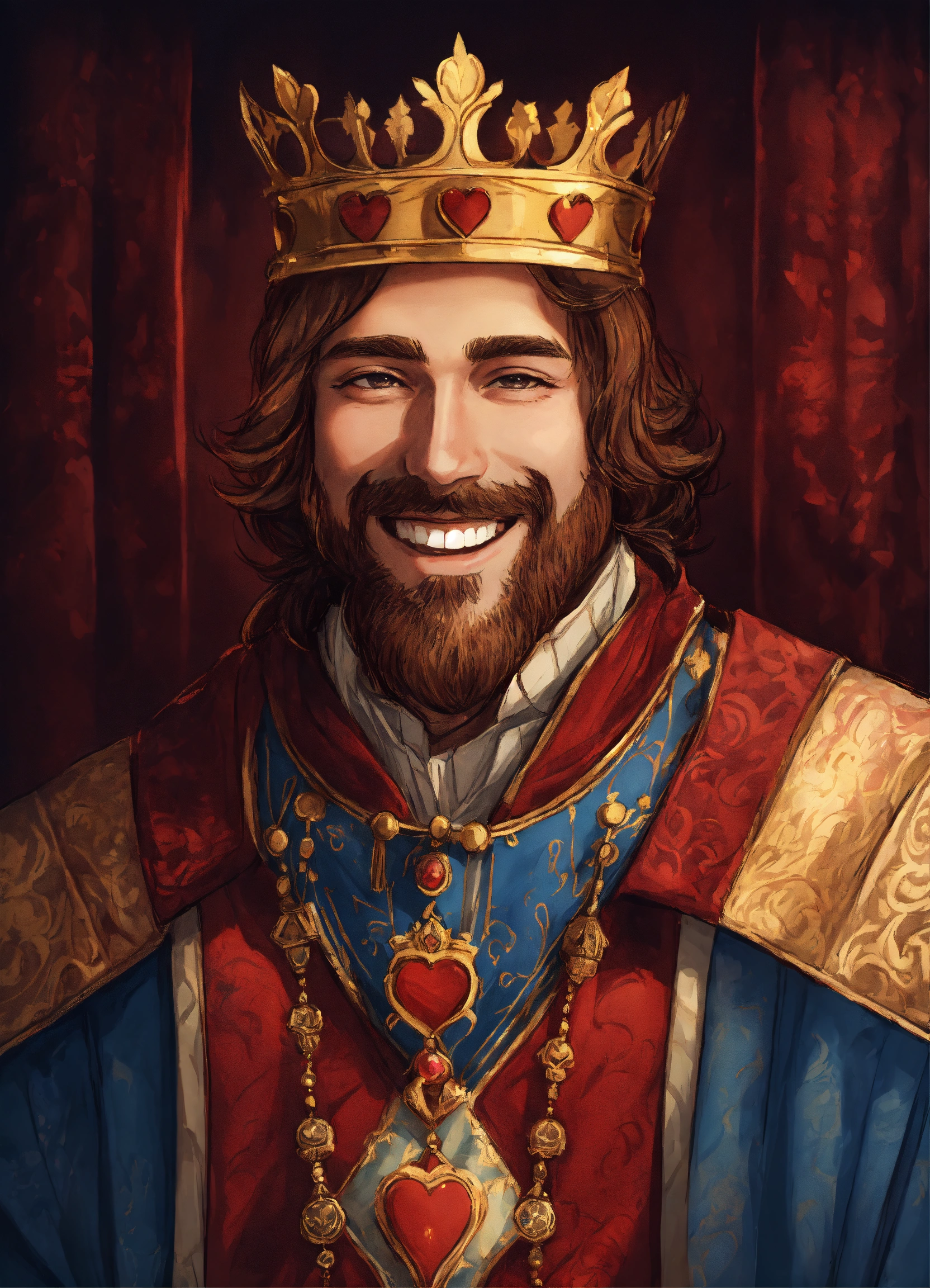 Drawing of a handsome smiling king with a fancy medieval royal robe