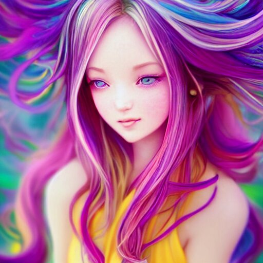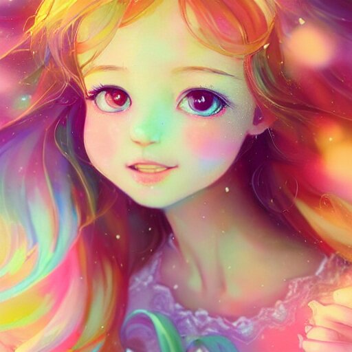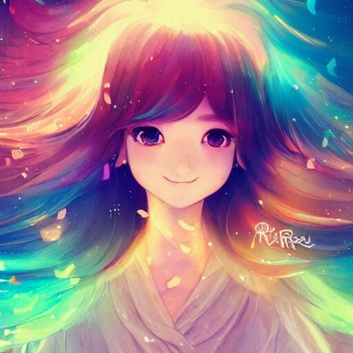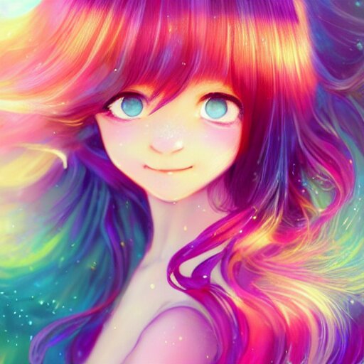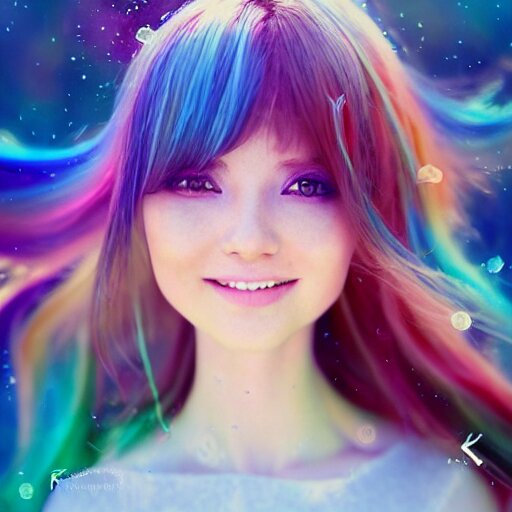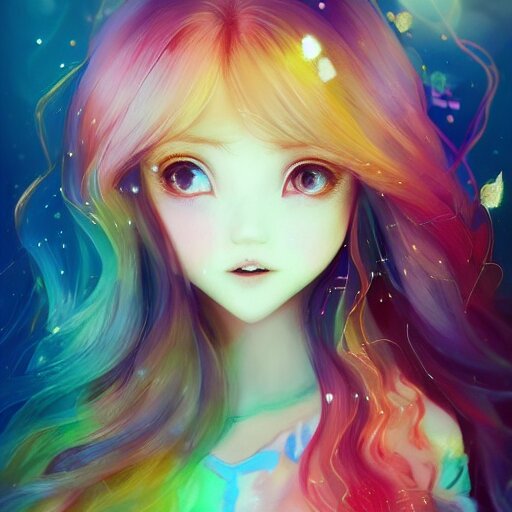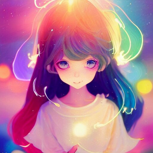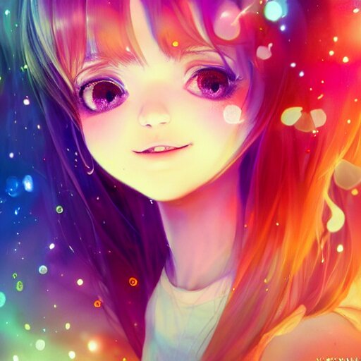 Lively and lovely girls, angelic face, colorful and flowing hair, colorful eyes, smiling innocently and cutely, colorful light effects, clean and fresh, ethereal, macro, uplight, lush, radiant, detailed, fantasy style, by krenz cushart, ilya kuvshinov, oleg oprisco , ross tran, kazuki tanahashi, genzoman