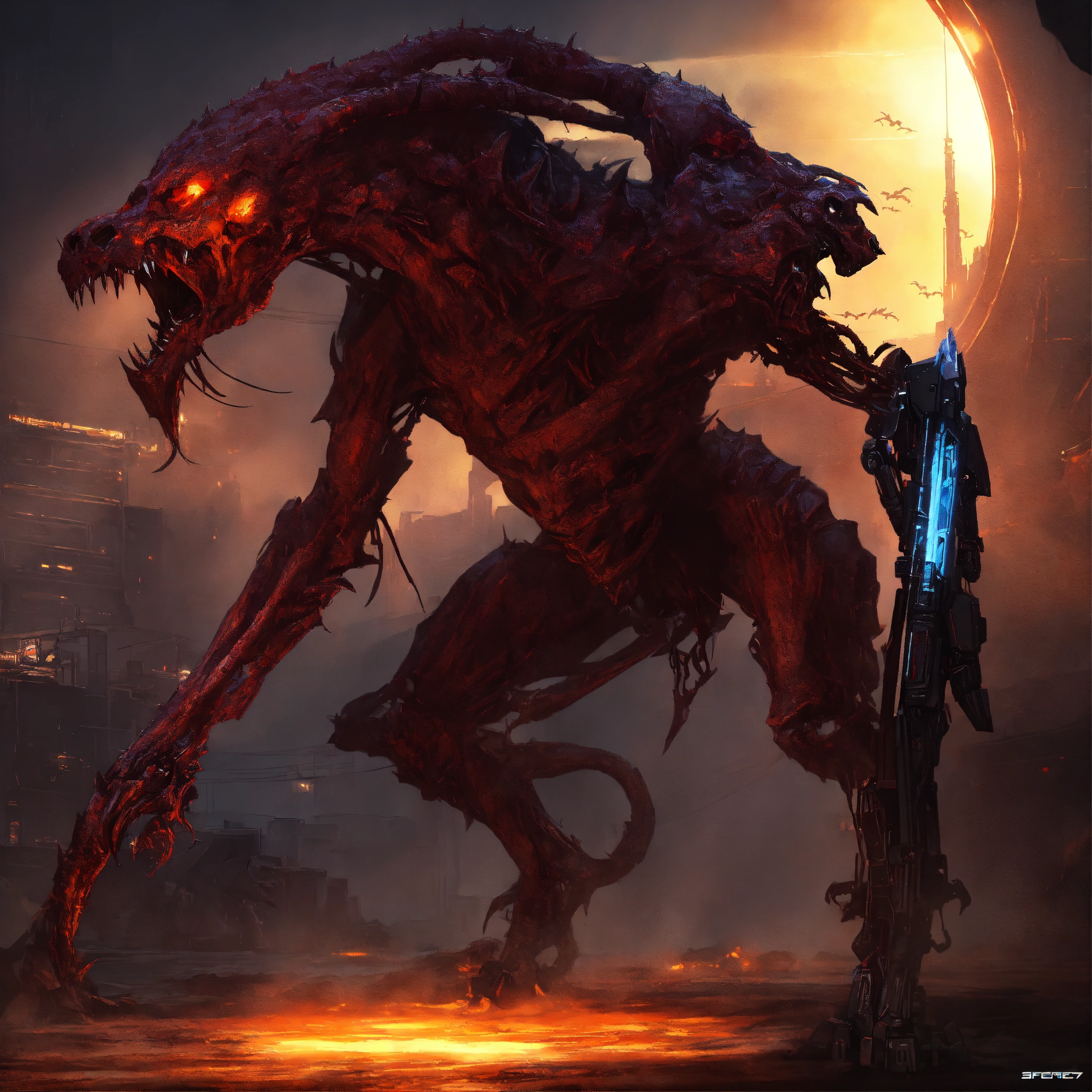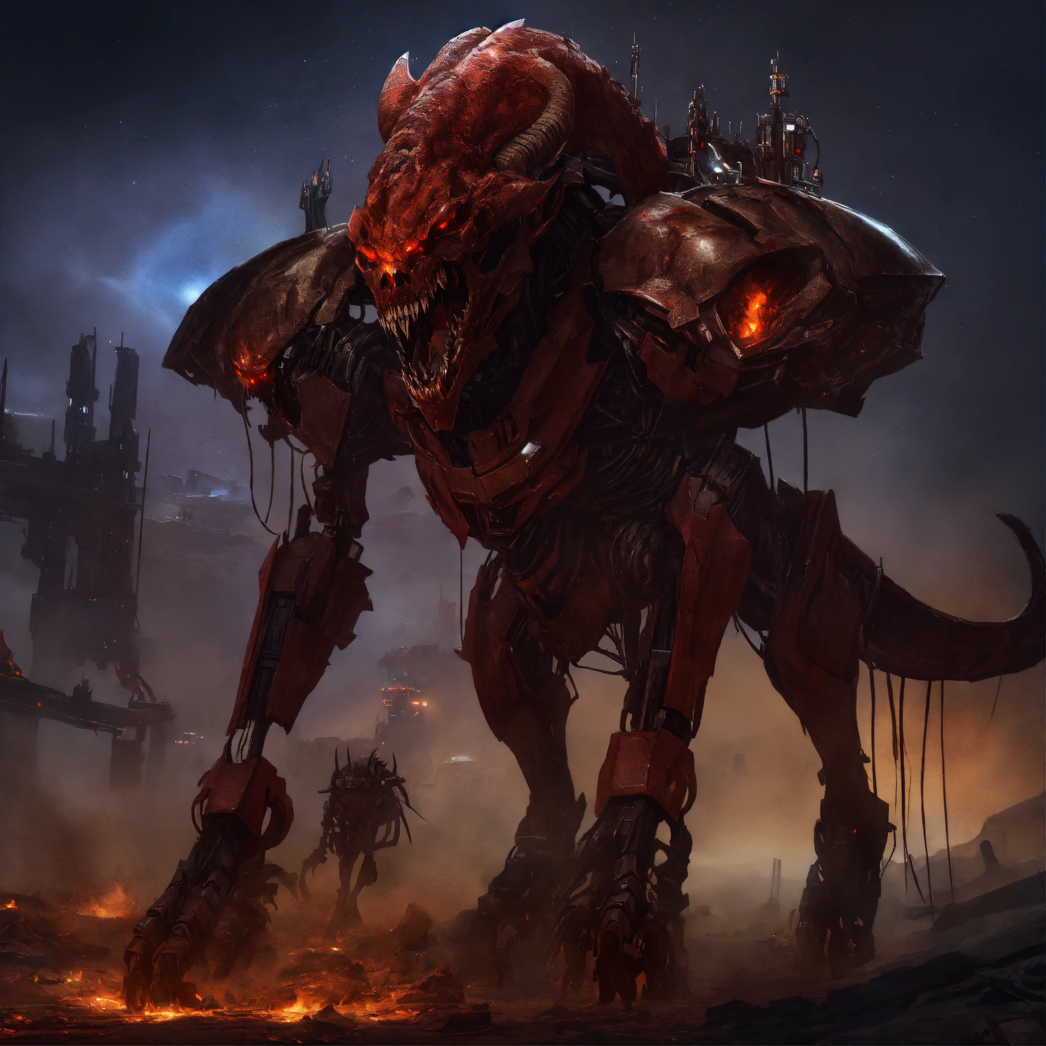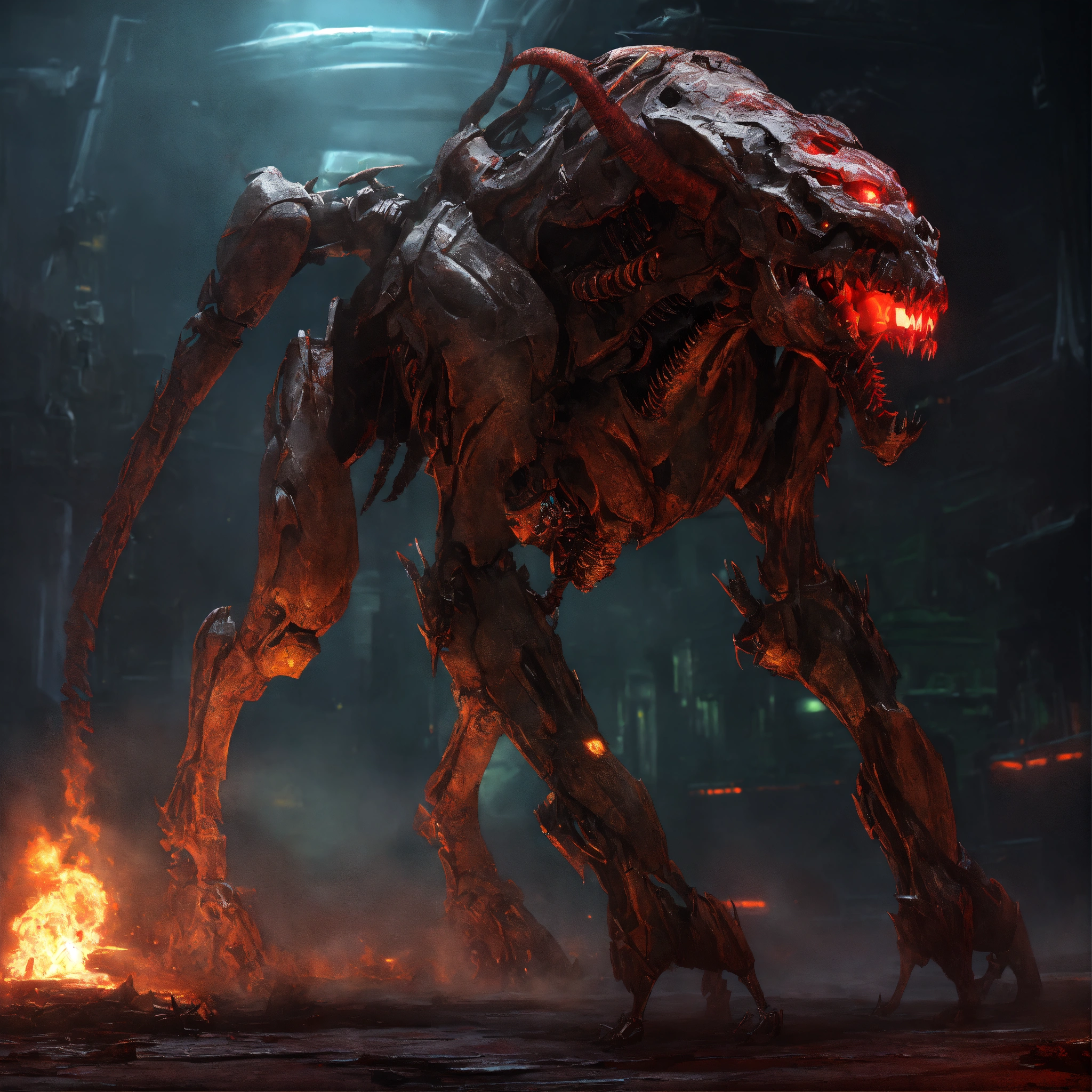 Monstrous, demonic, hellish, art station, sci-fi, mass effect, science fiction, space opera, demon, evil, undead, cyborg, robotic, bones, skeletal, claws, hellish, demon, quadruped, beast, animal