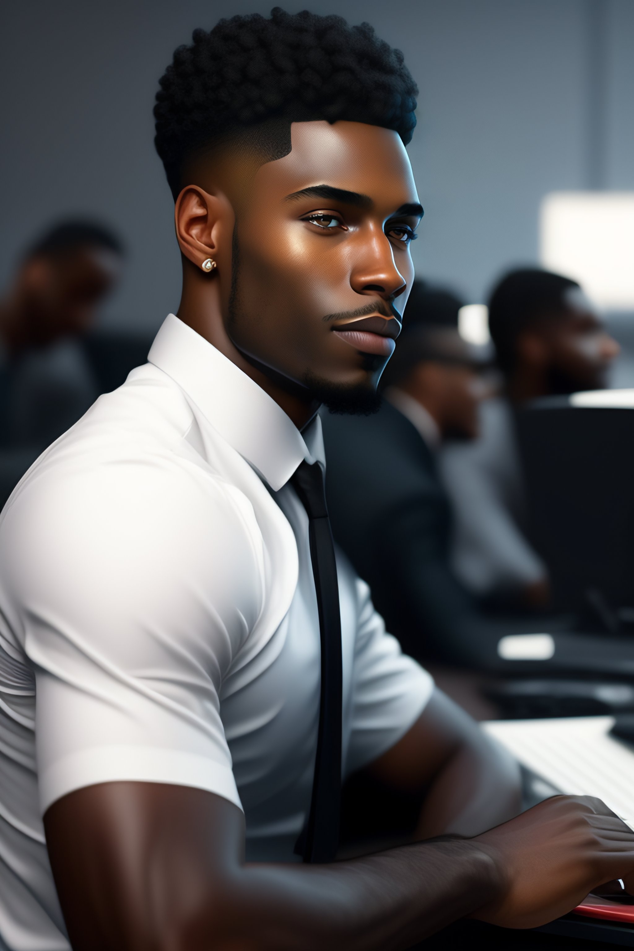 It engineer as black man cute-fine-face working on computers, full body! pretty face, realistic shaded perfect face, fine details. realistic shaded lighting by ilya kuvshinov giuseppe dangelico pino and michael garmash and rob rey