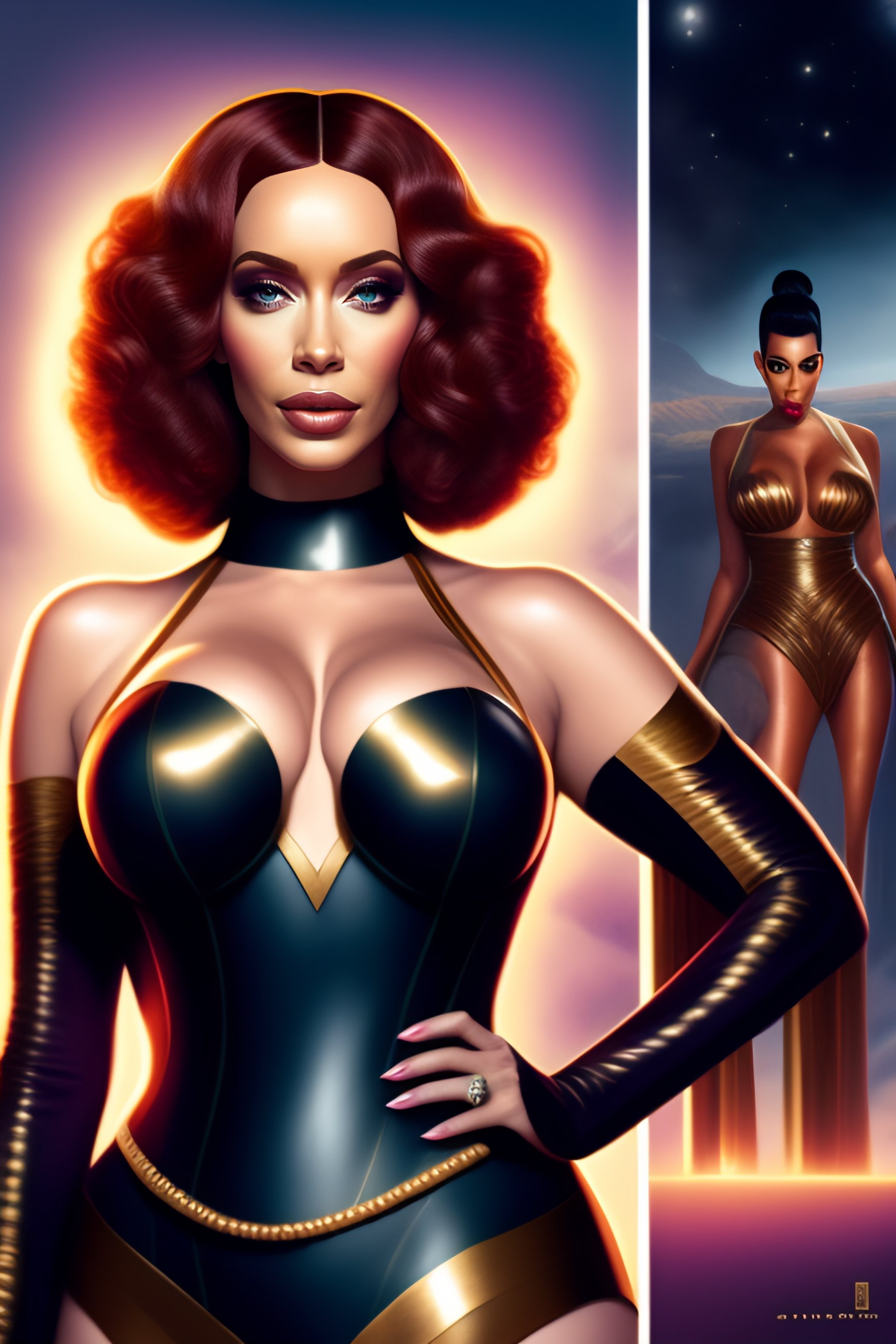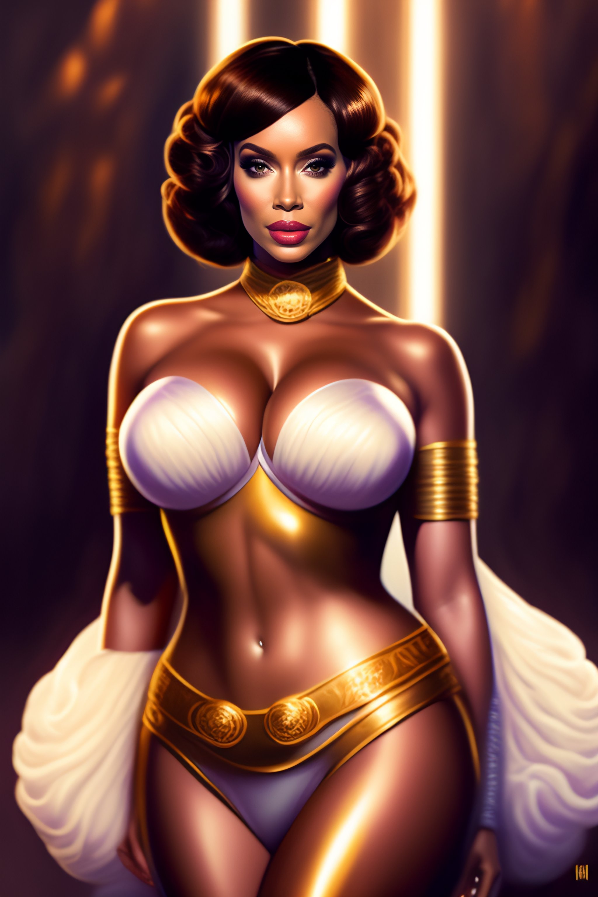 Christina hendricks as slaveleia, kim kardashian, slaveleia outfit, full body, illustration, color, bob haircut, barefoot, jordan glimmer
