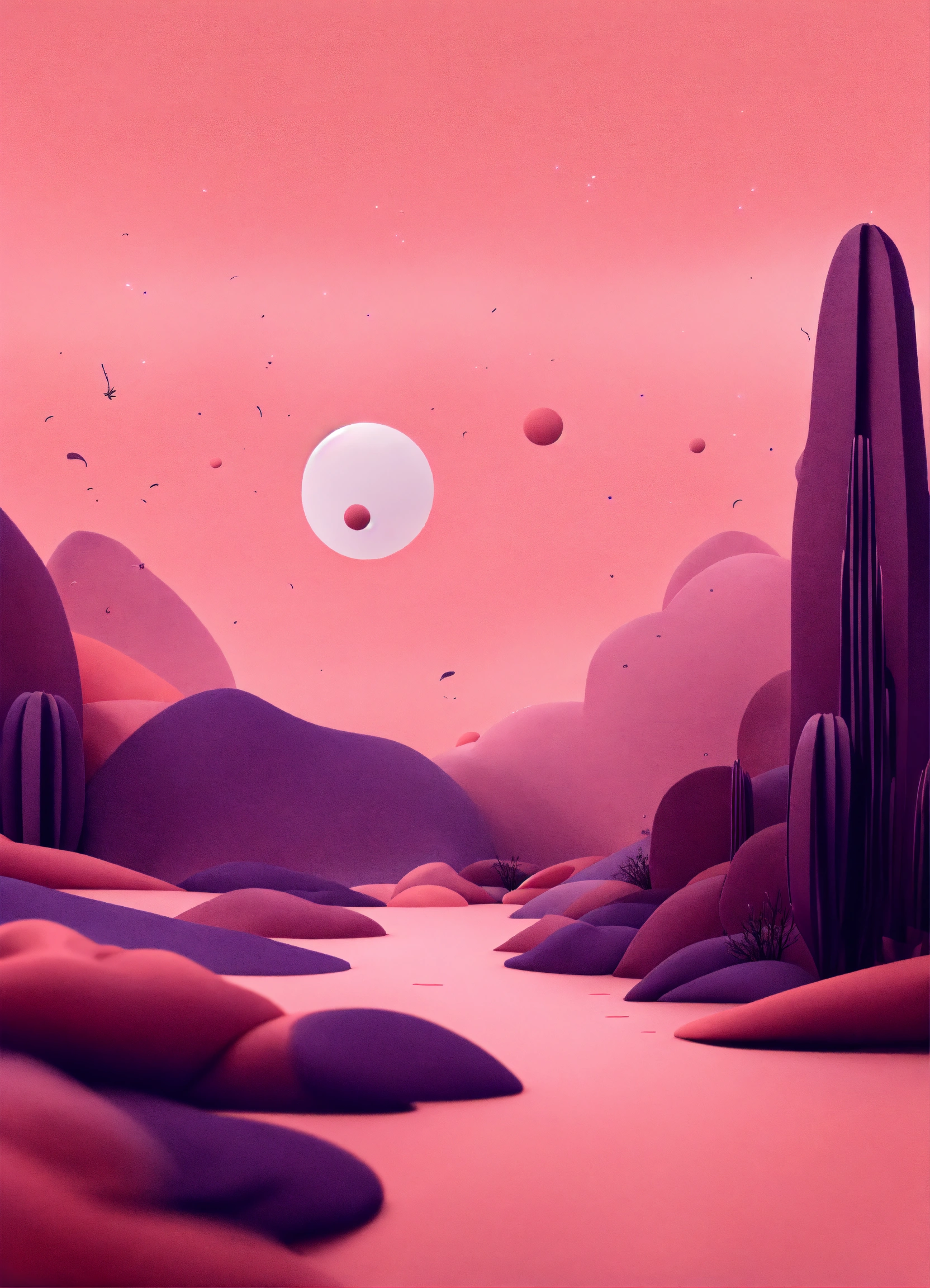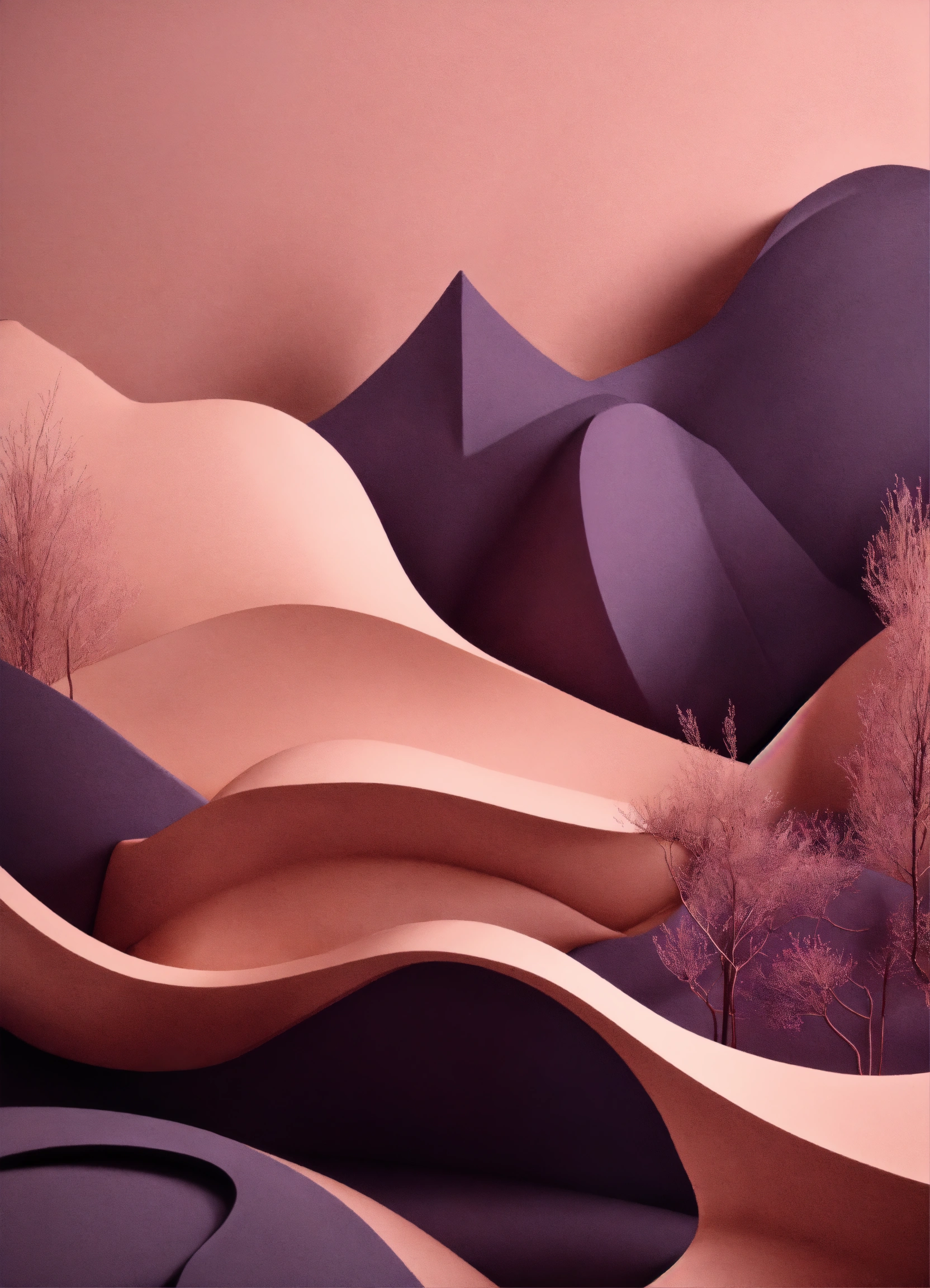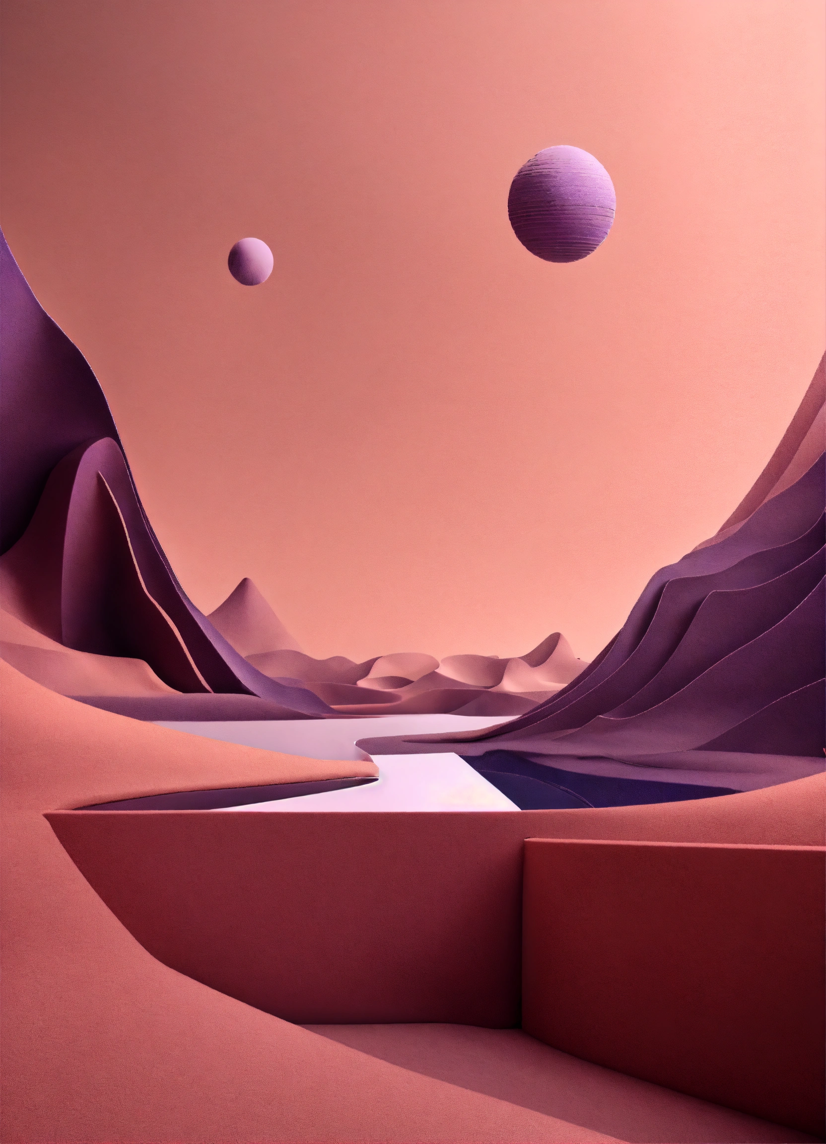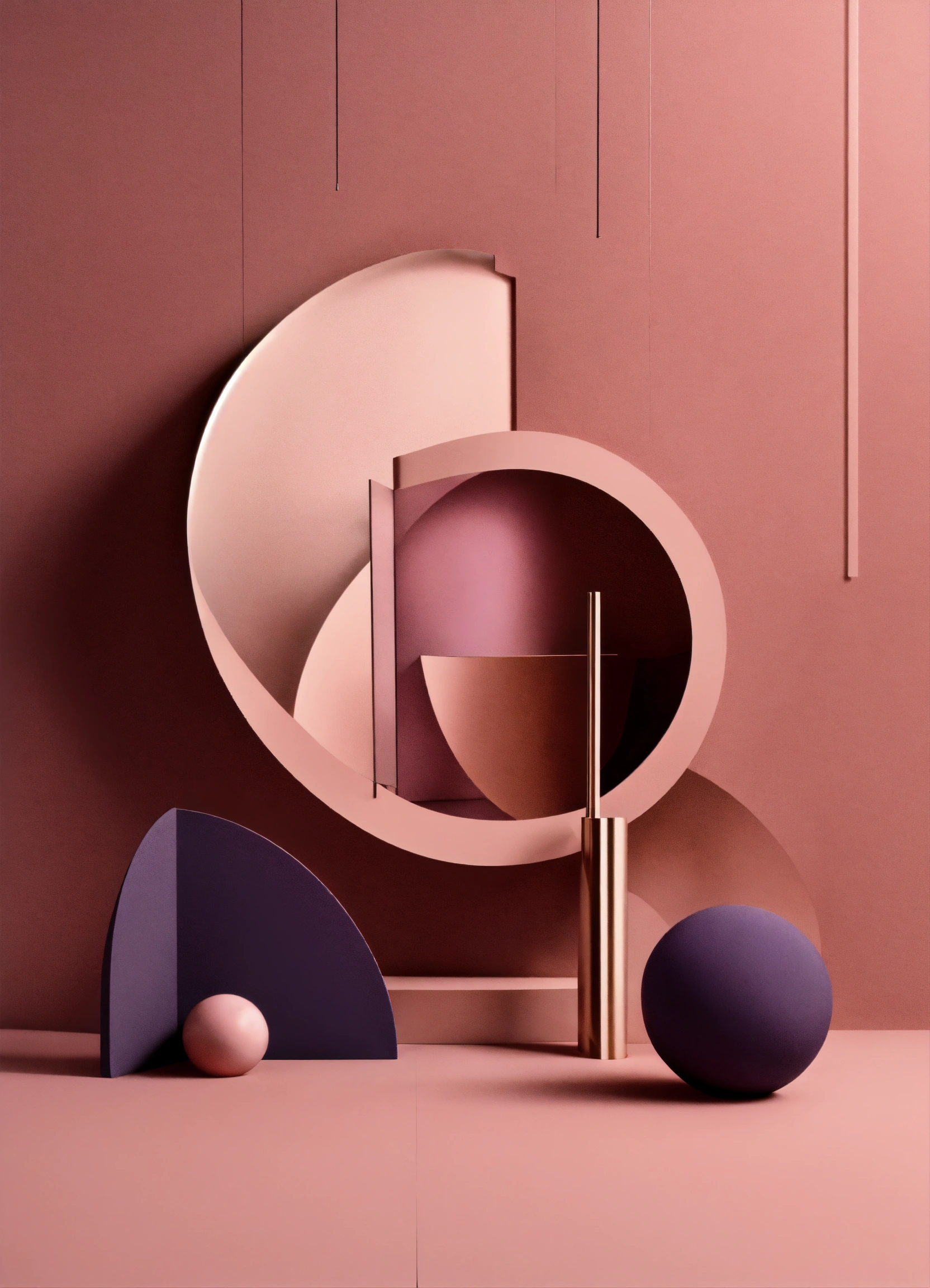Muted tones of dusty pink and dark purple surreal combination with minimalist compositions, evoking a sense of calmness, ink illustrations, simple bare minimalist style 3d compositions, wedding theme.