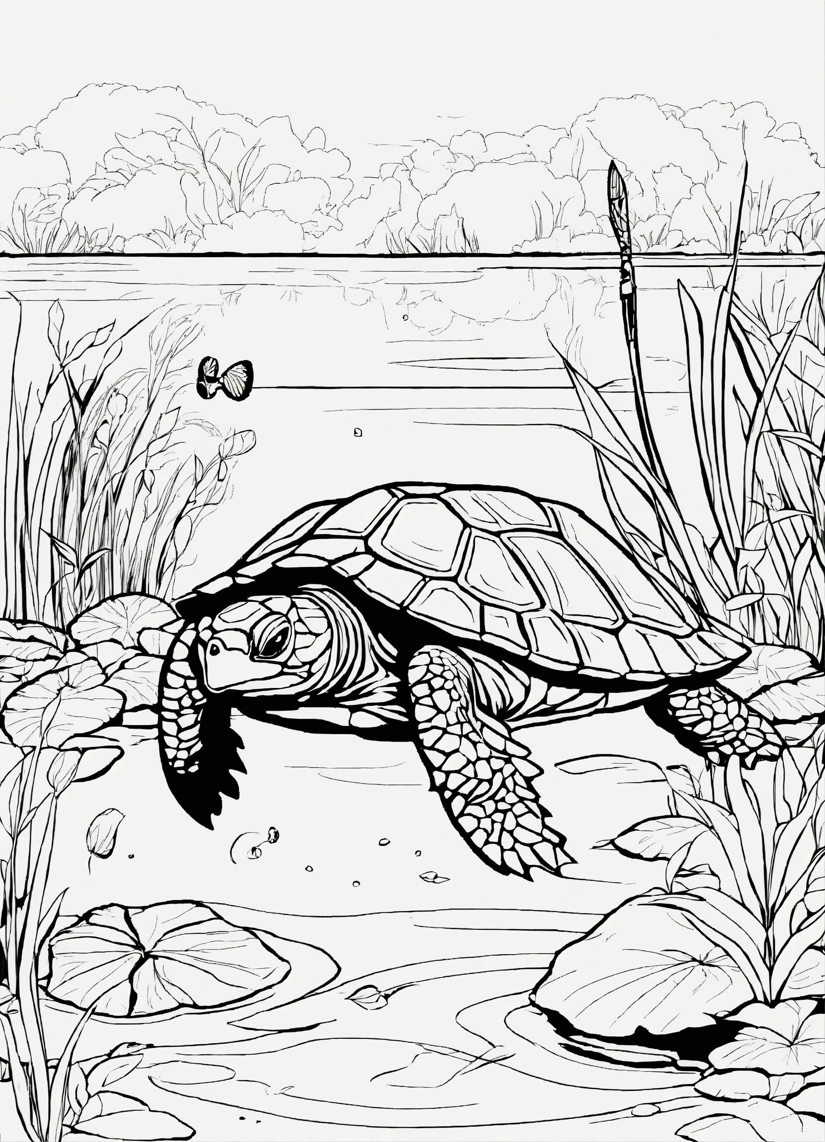 A turtle in a pond