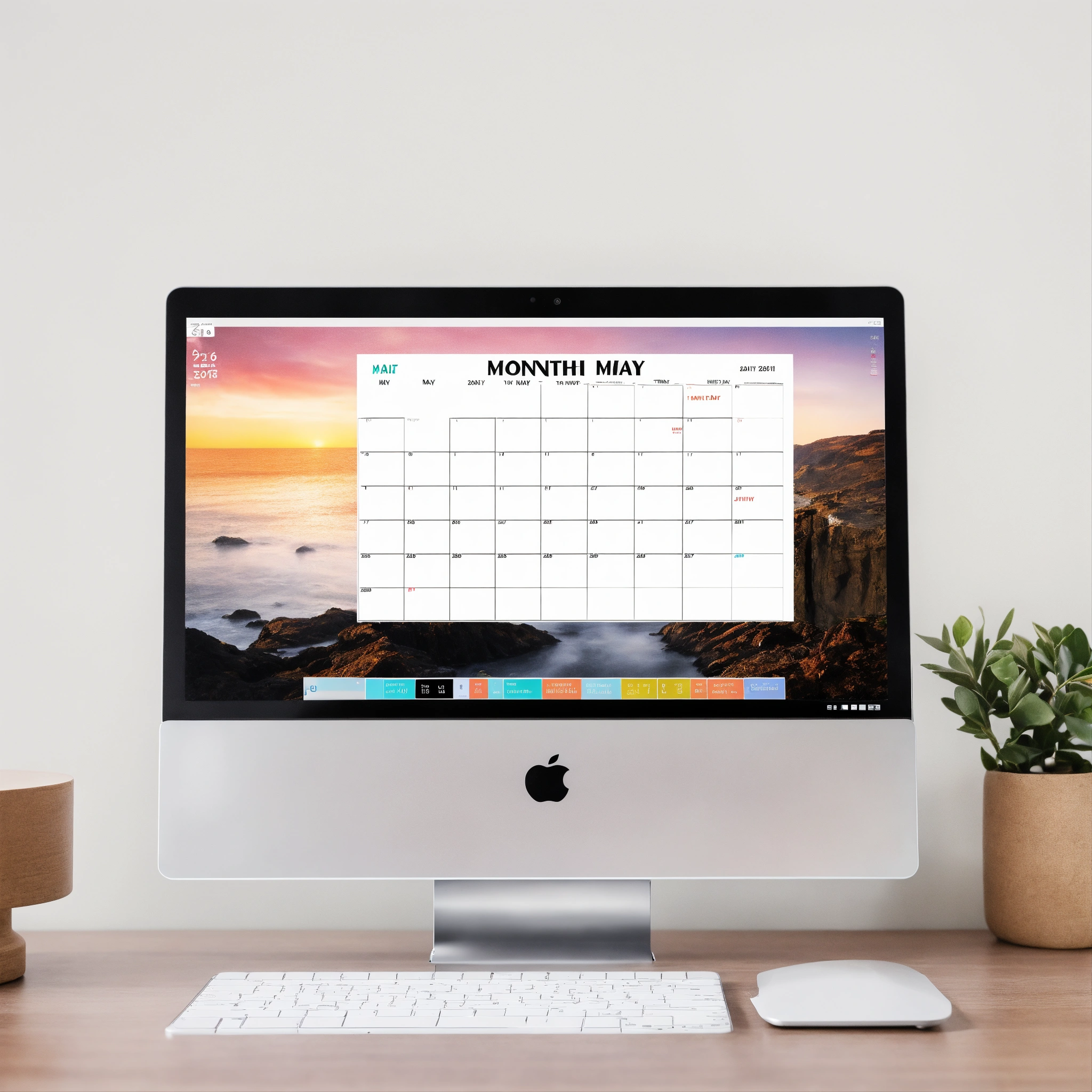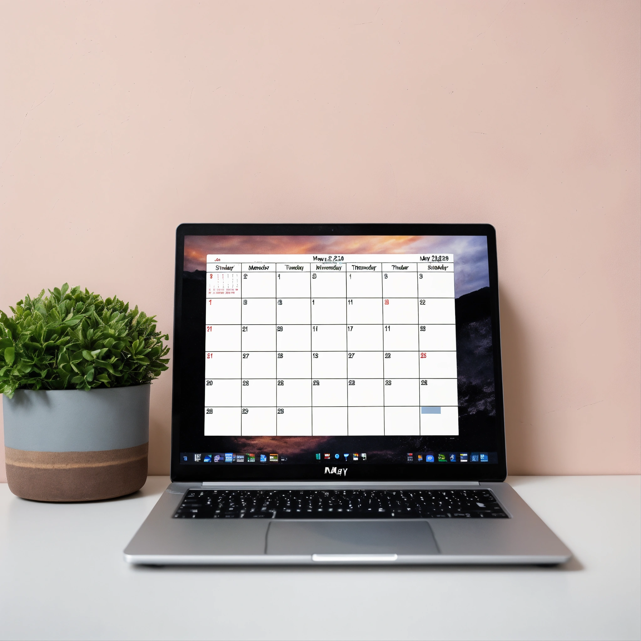 A photo of a digital calendar on a laptop screen, the calendar is open to the month of may, the background is a plain white wall