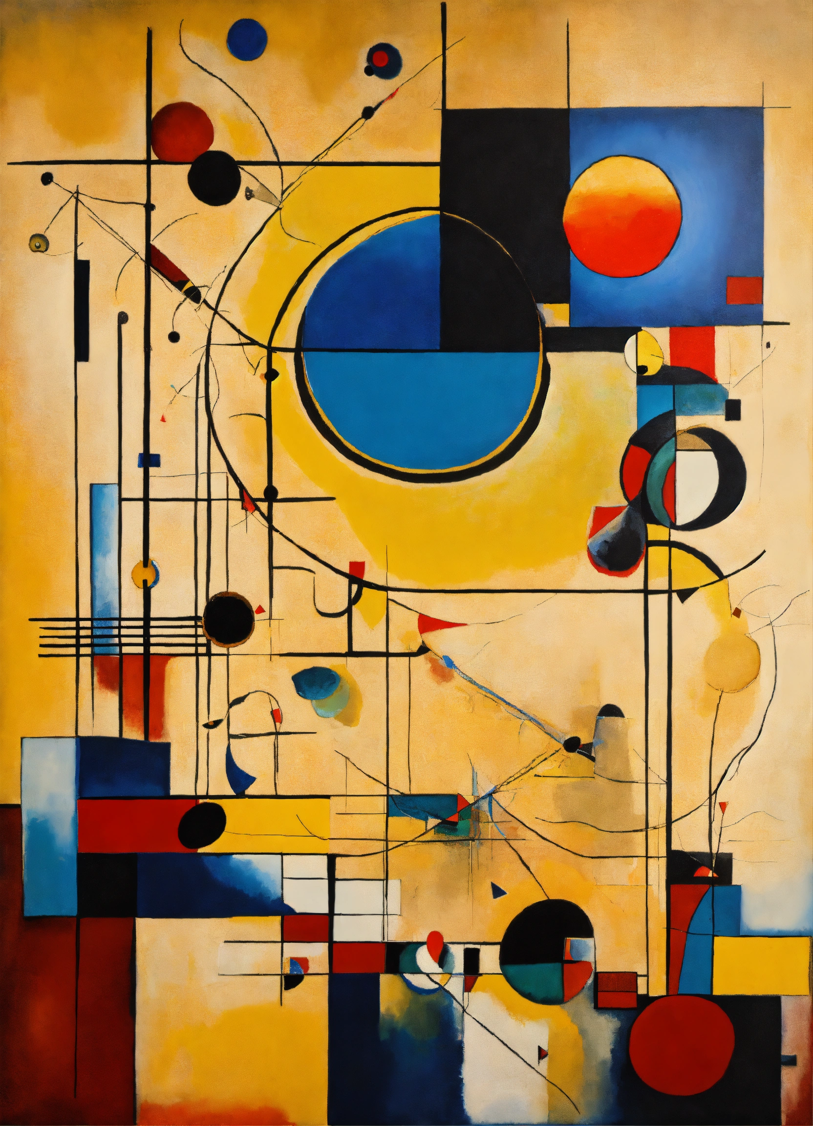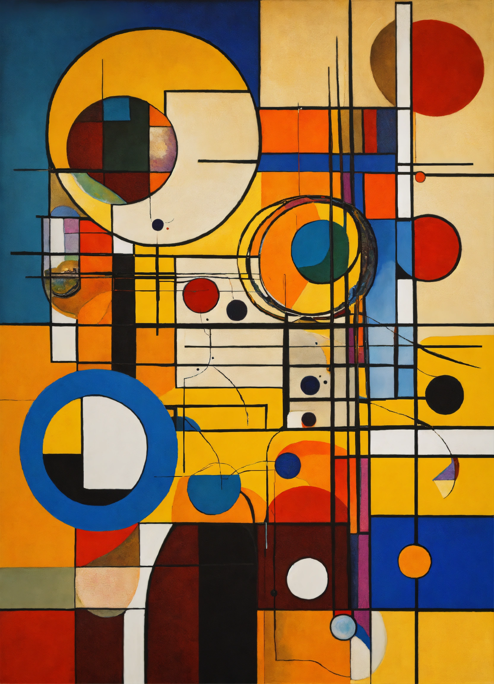 Abstract painting kandinsky style mixed with salvador dali and mondrian