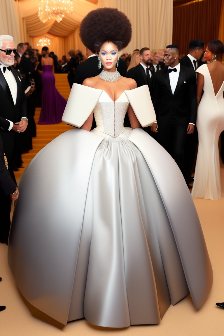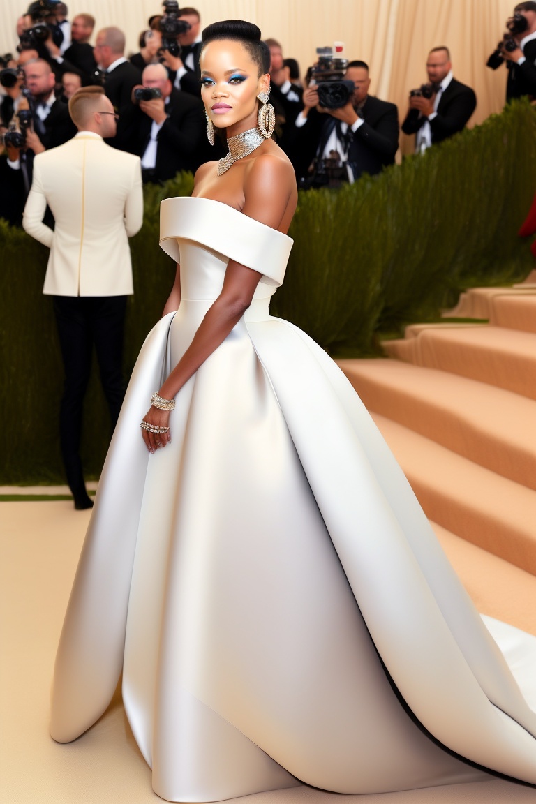 Rihanna, full body dress white fendi style karl lagerfeld, party met gala, arquitectura el costume institute new york