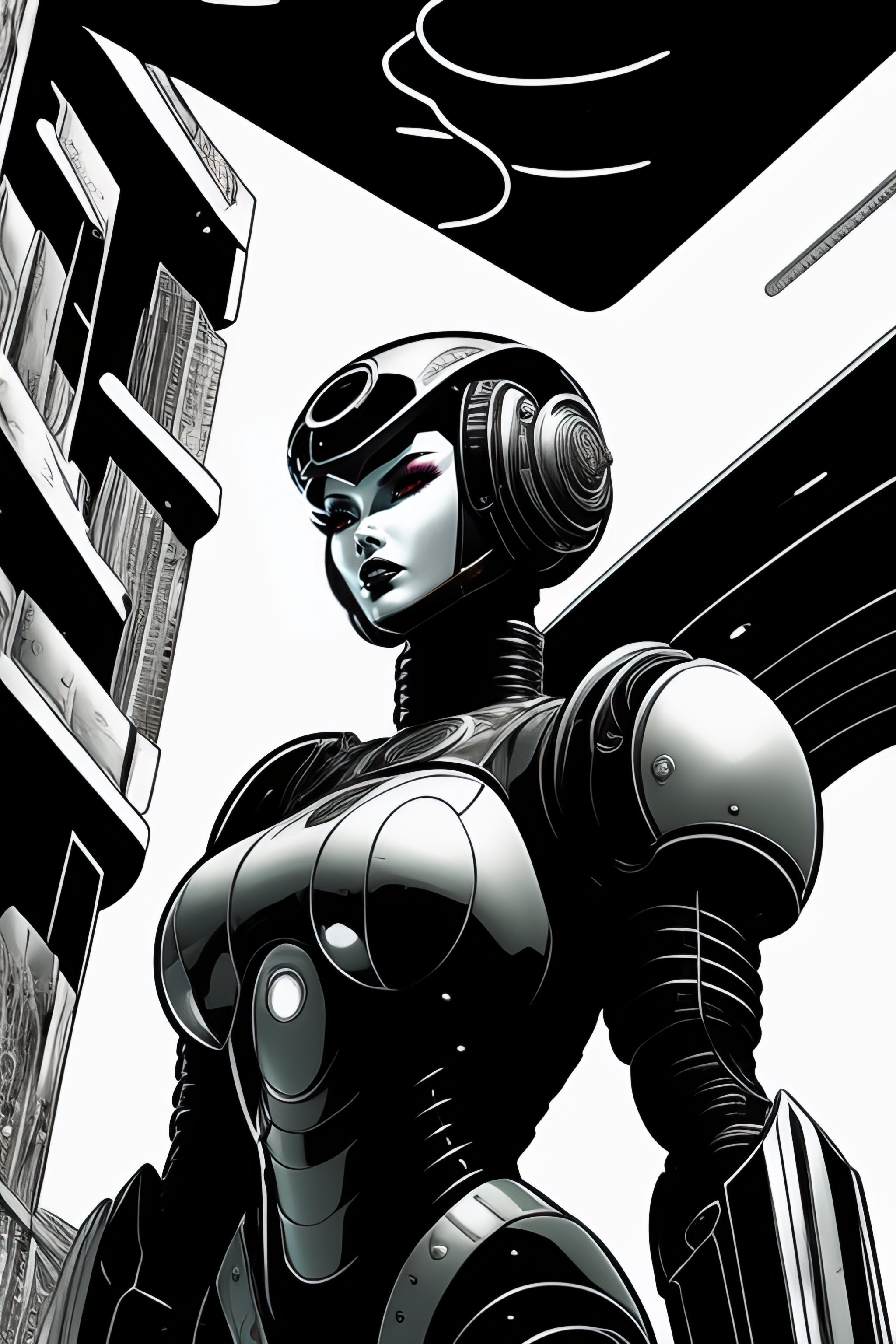 A comic book panel about robots taking over the world, detailed comic art. comic book cover art. photorealistic ink art.
