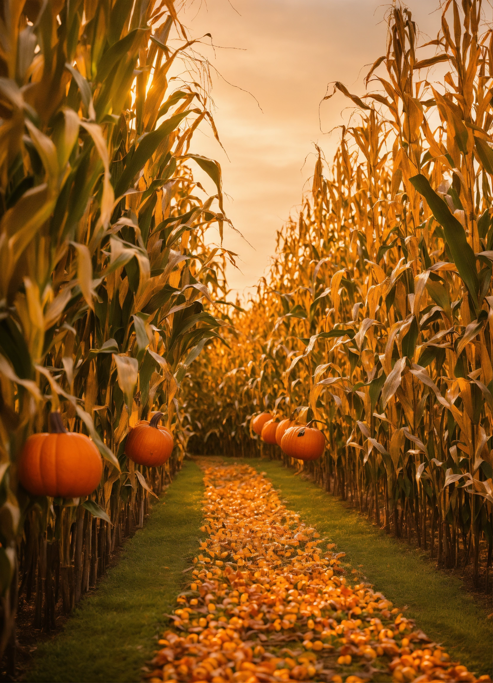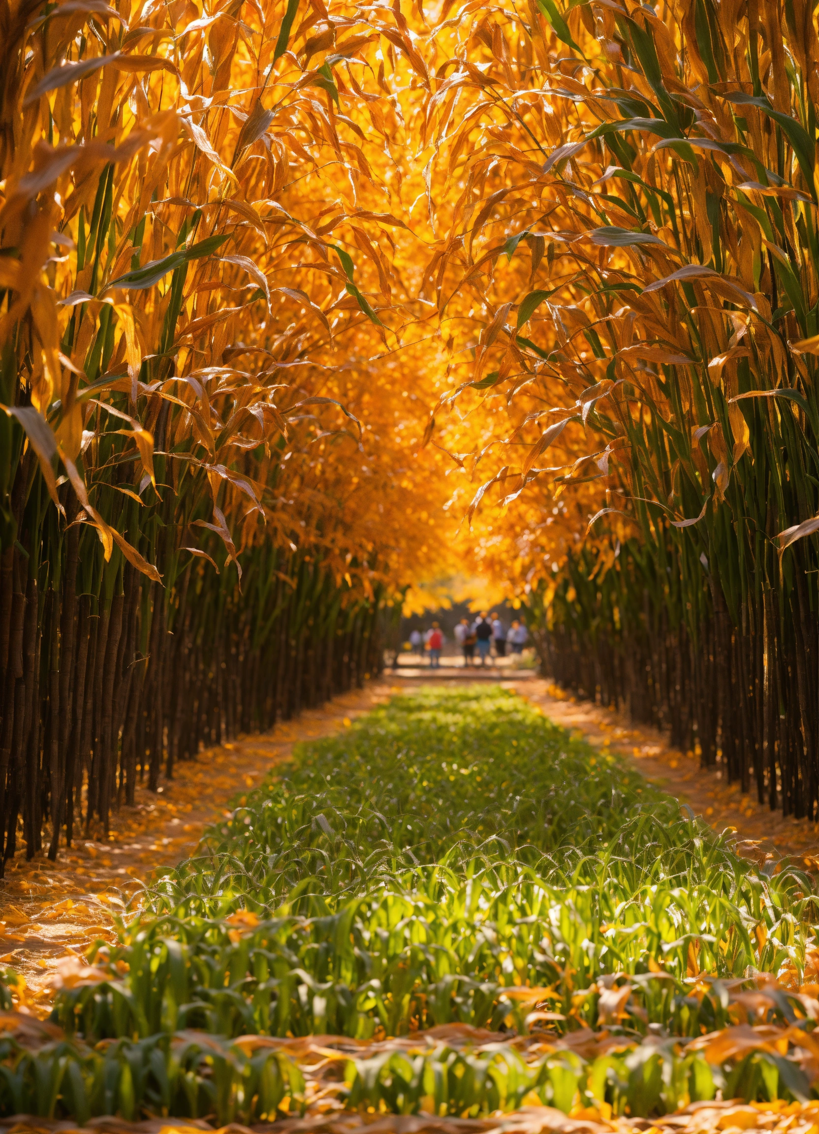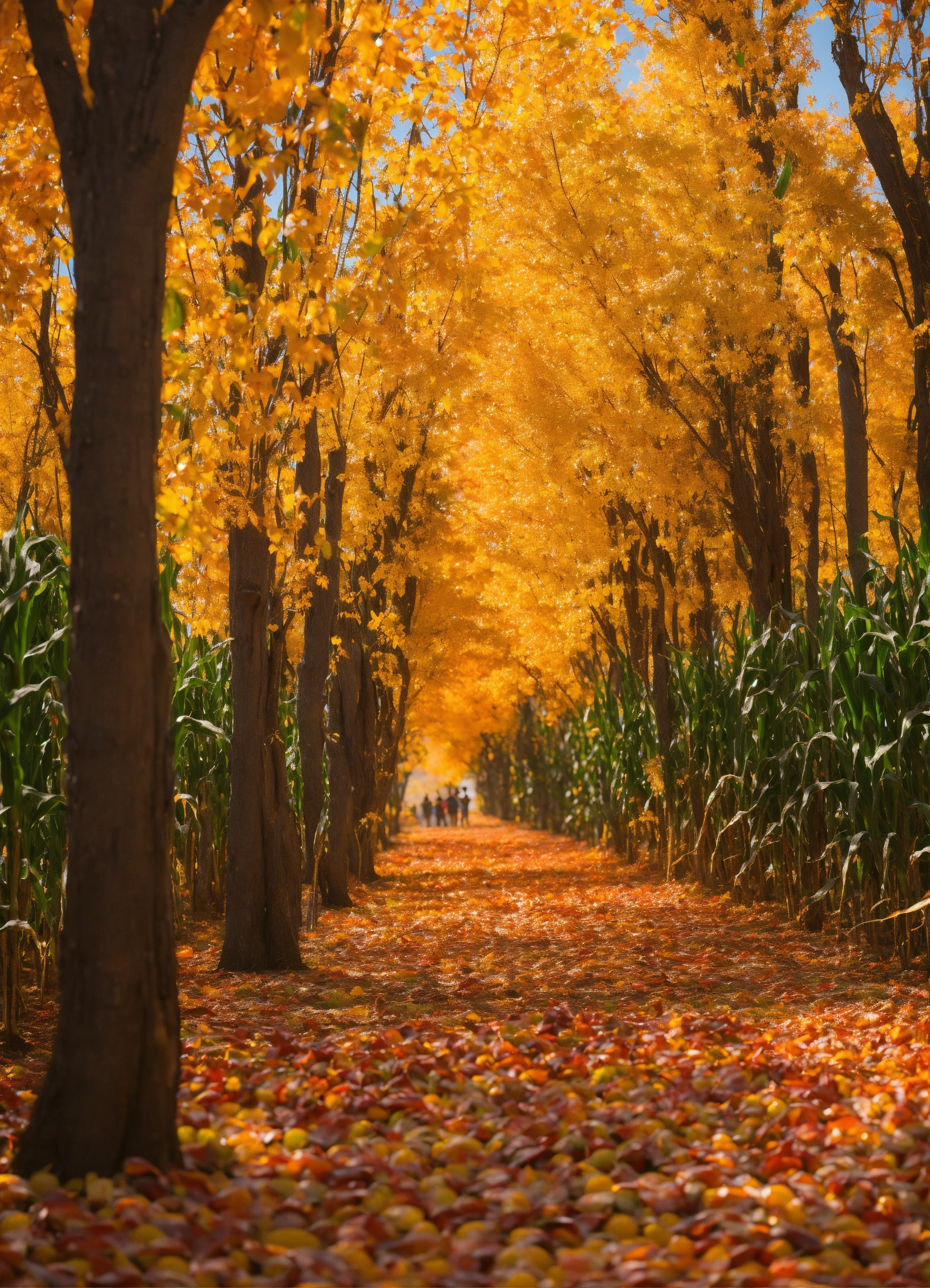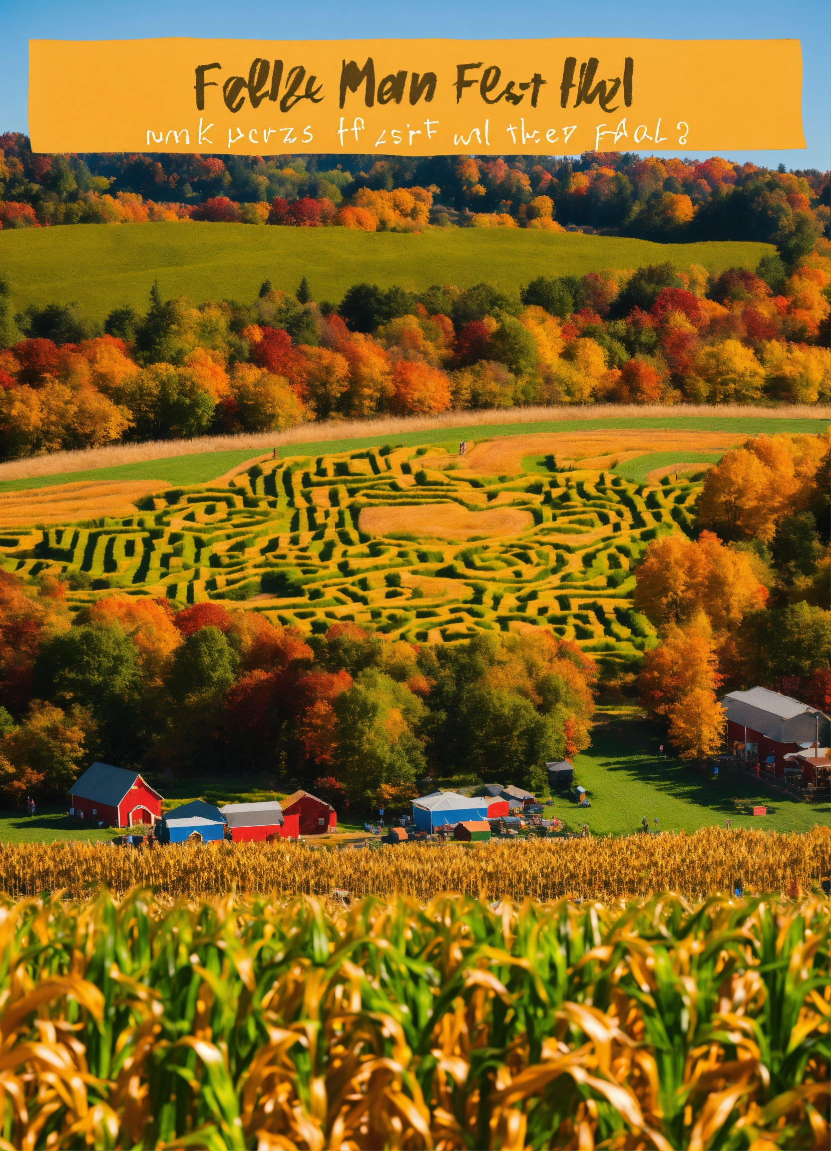 Fall festival corn maze scene with trees changing colors