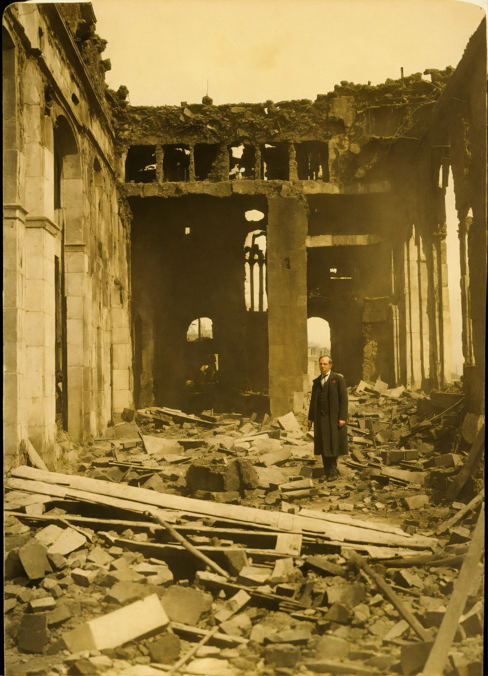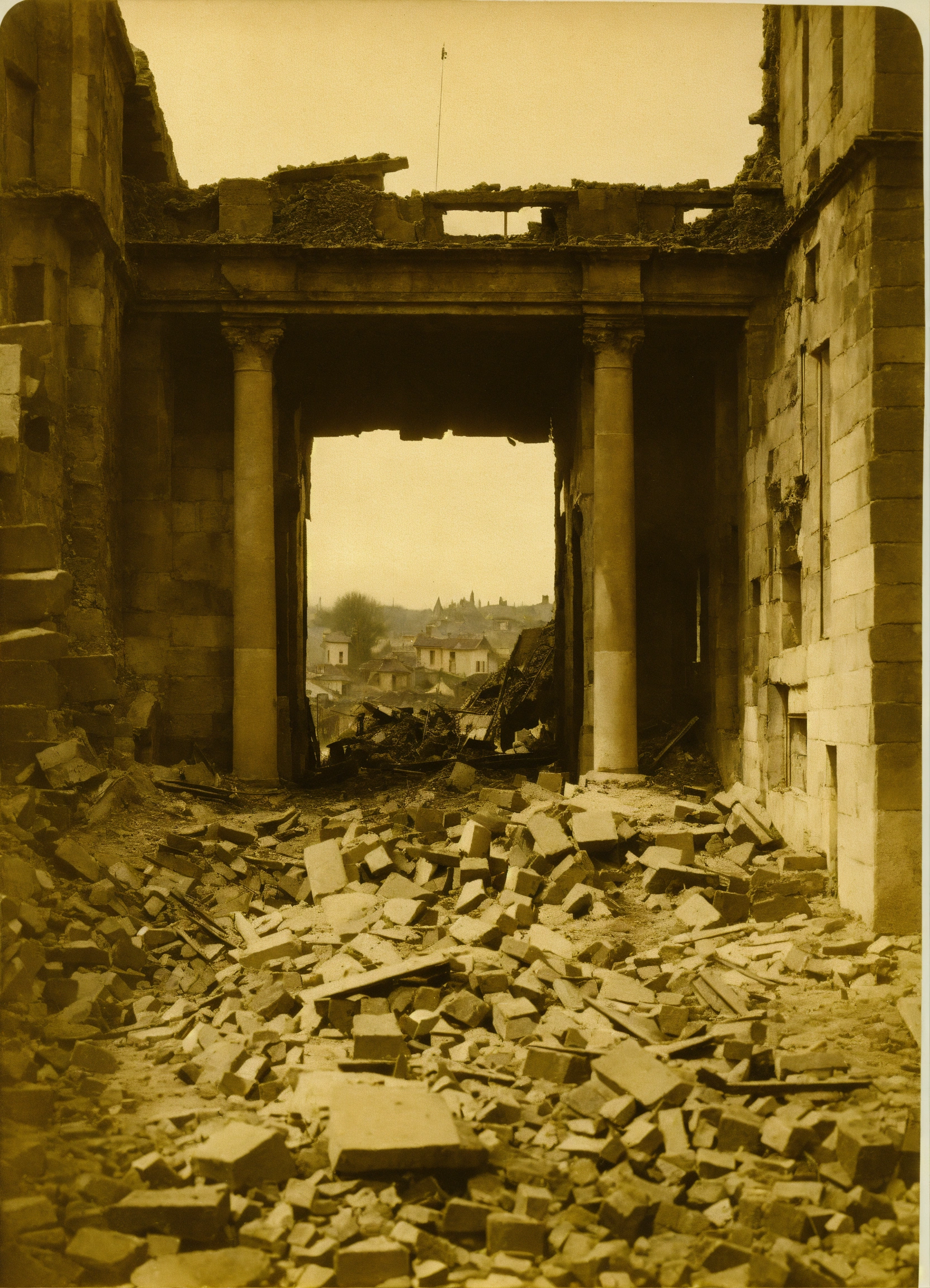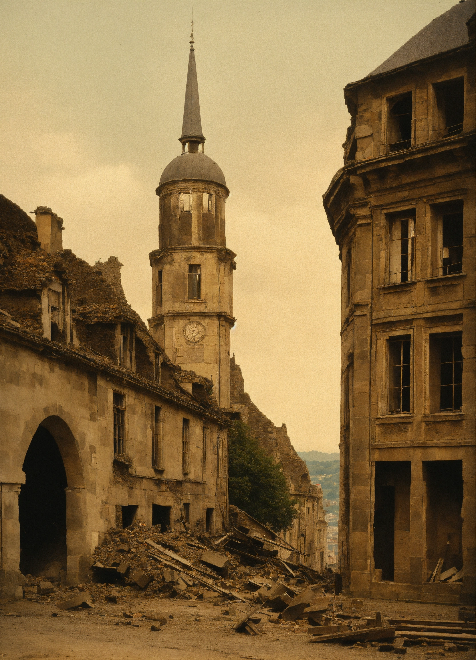 Denis de rougement à neuchâtel en ruine suite à des bombardement lors de la guerre