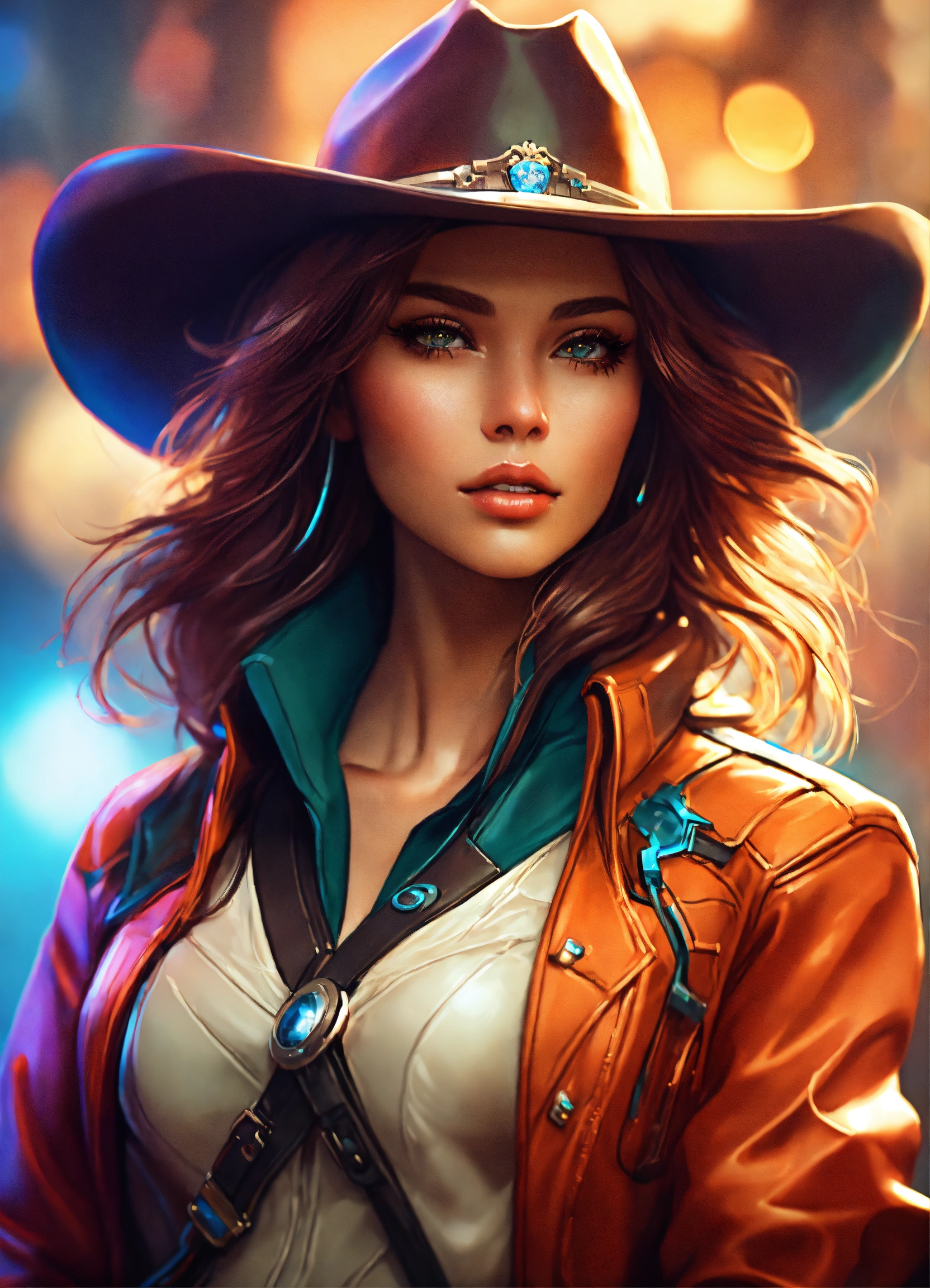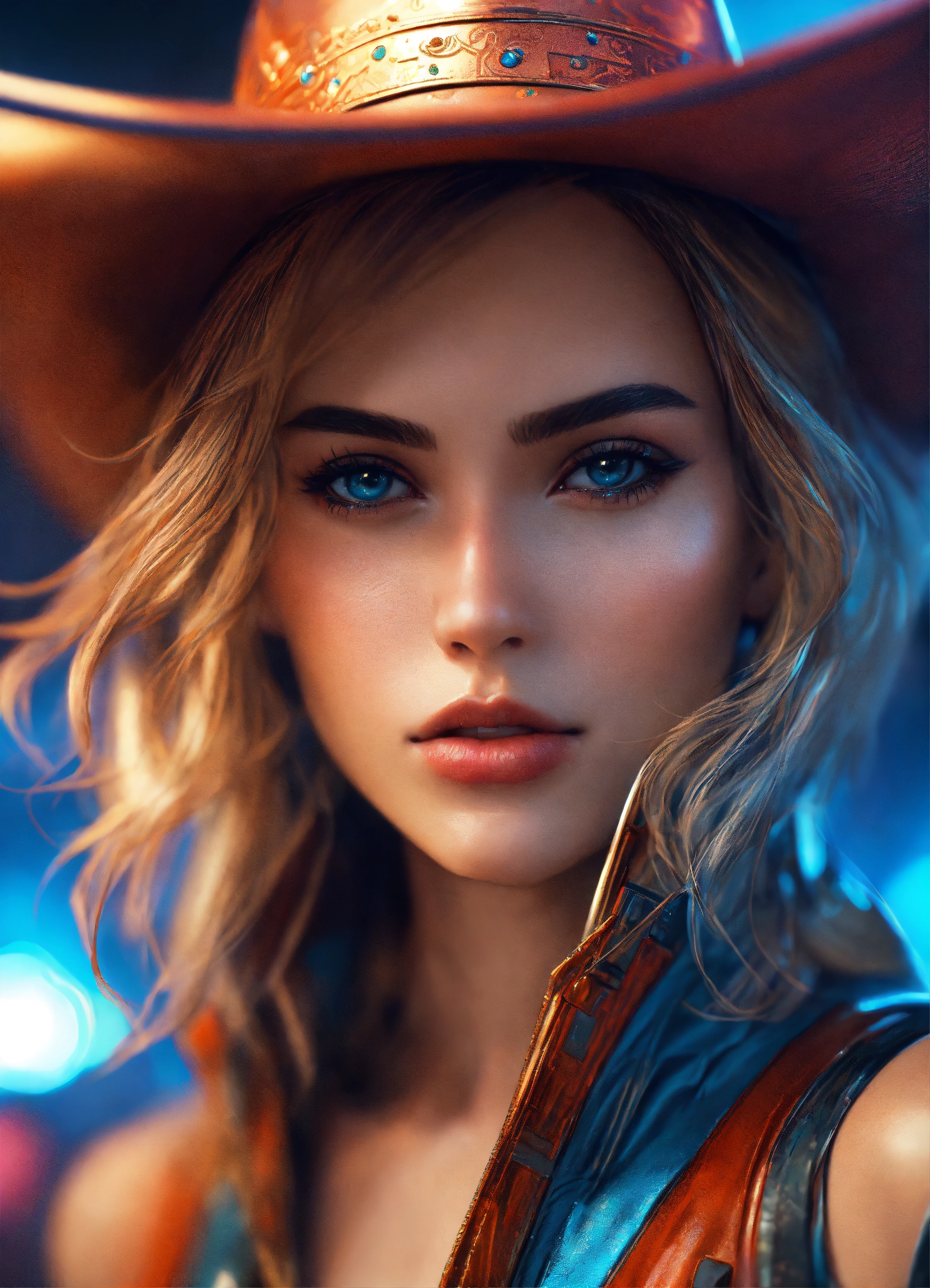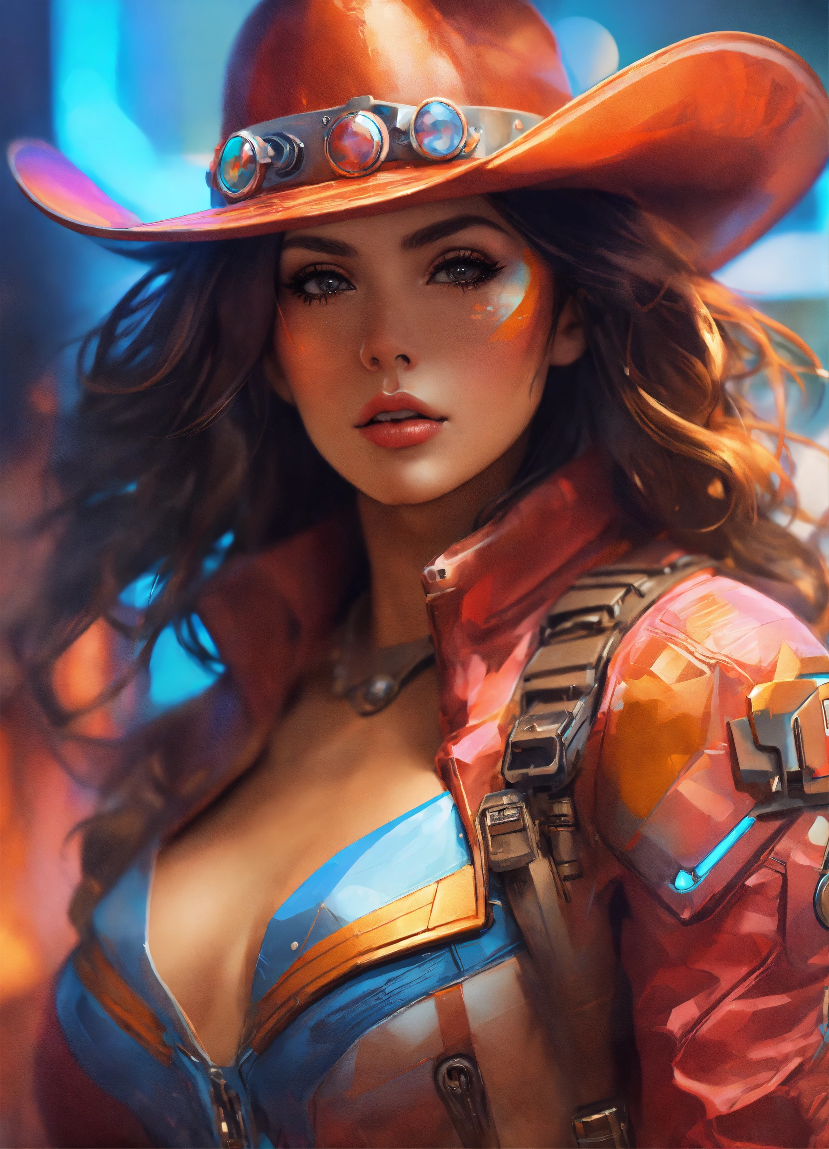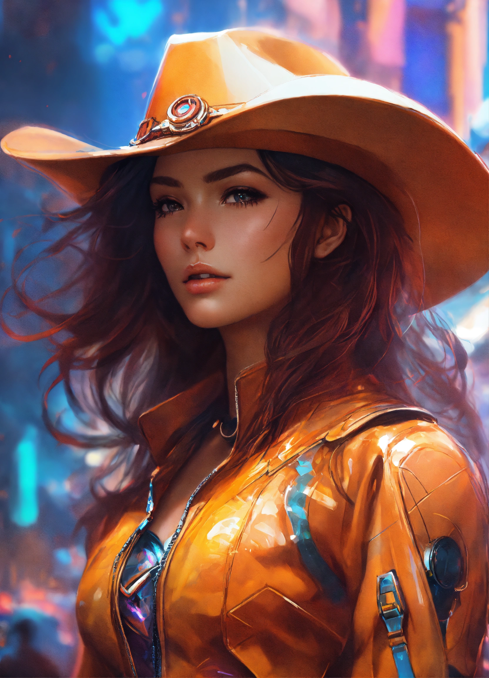 Tilt shift art of abstract style futuristic cowgirl