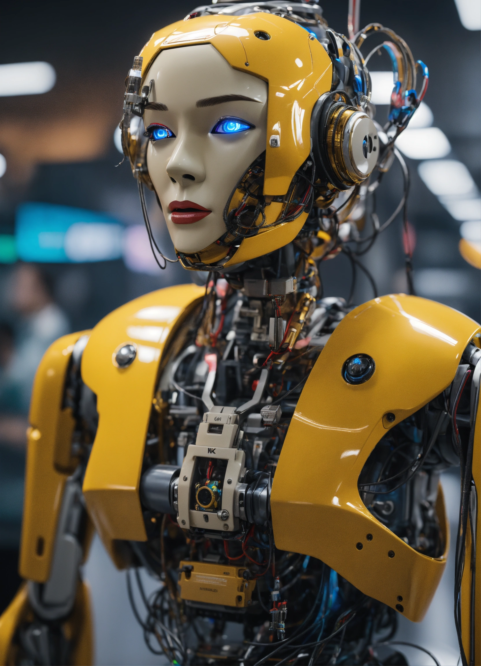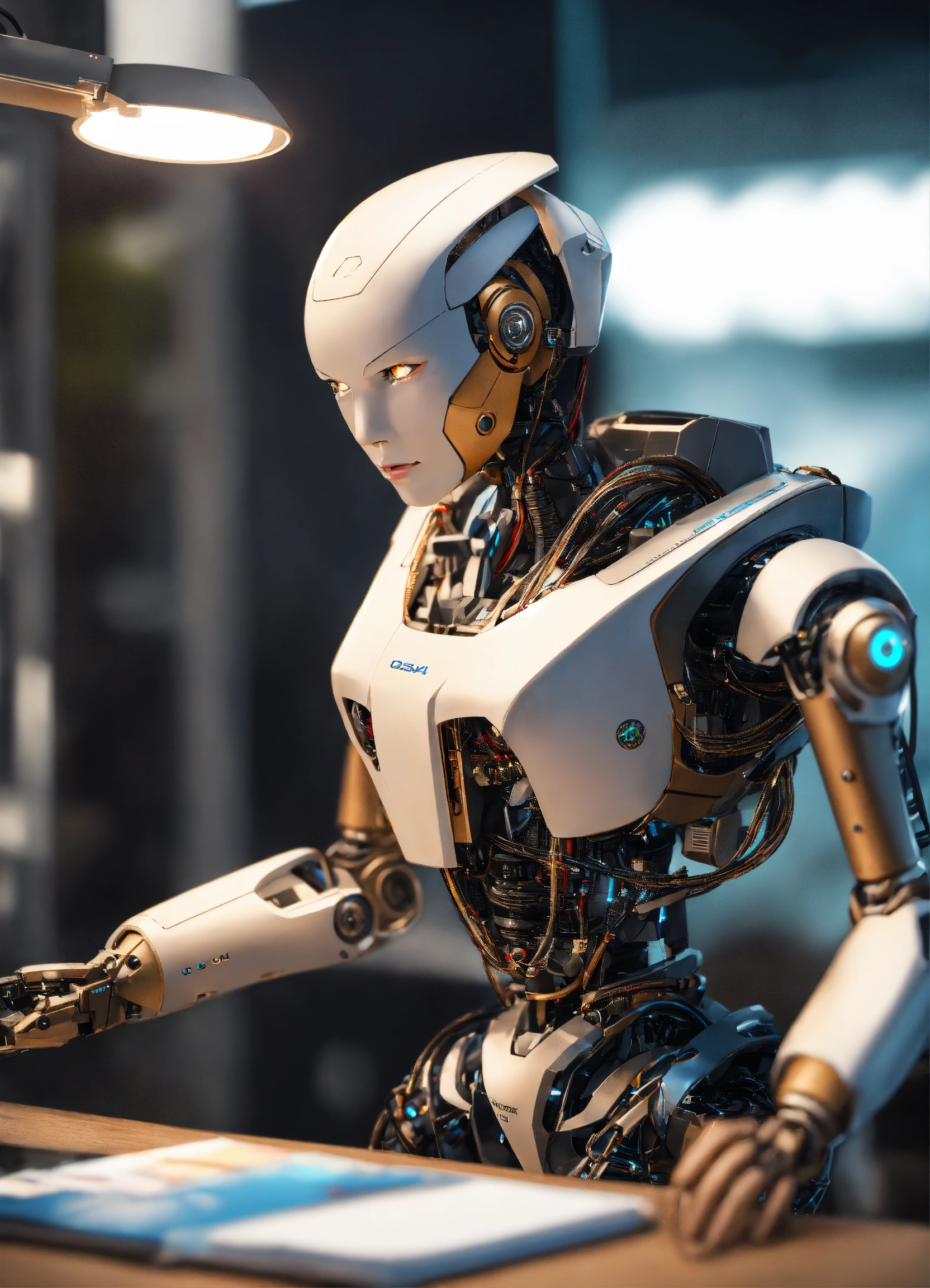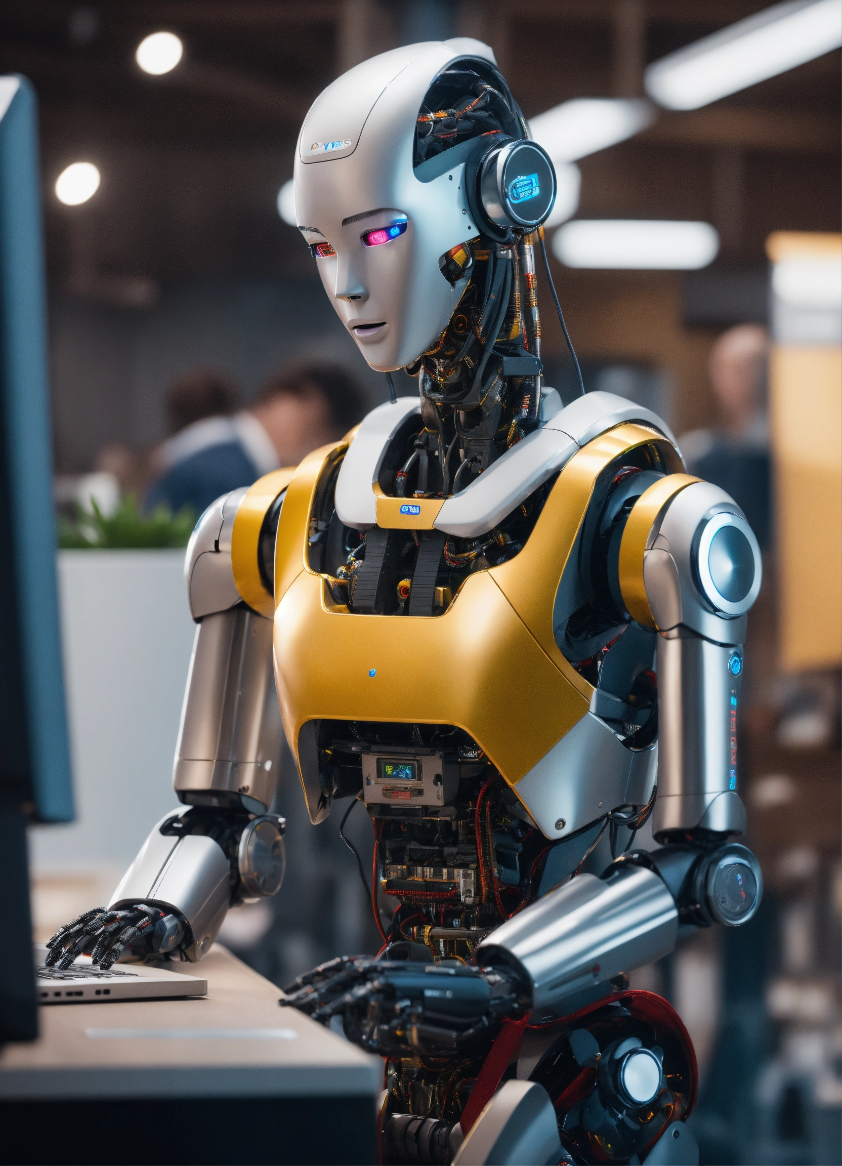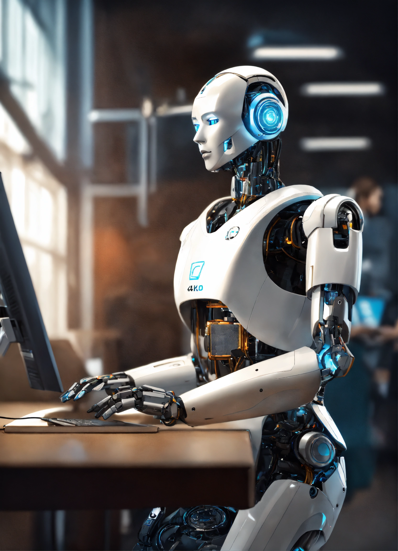 Create a hyper-realistic 4k image of a humanoid robot working as customer support