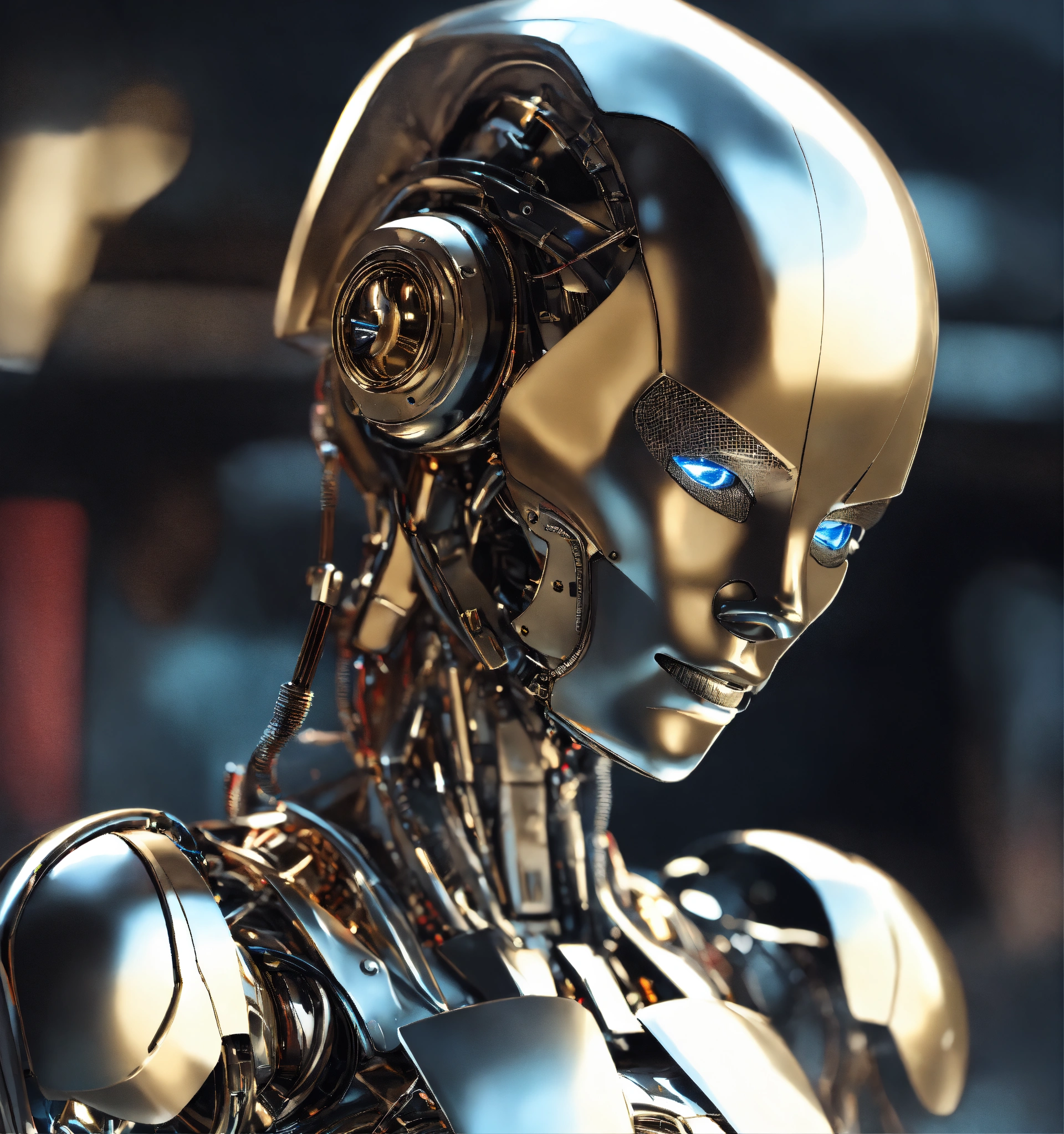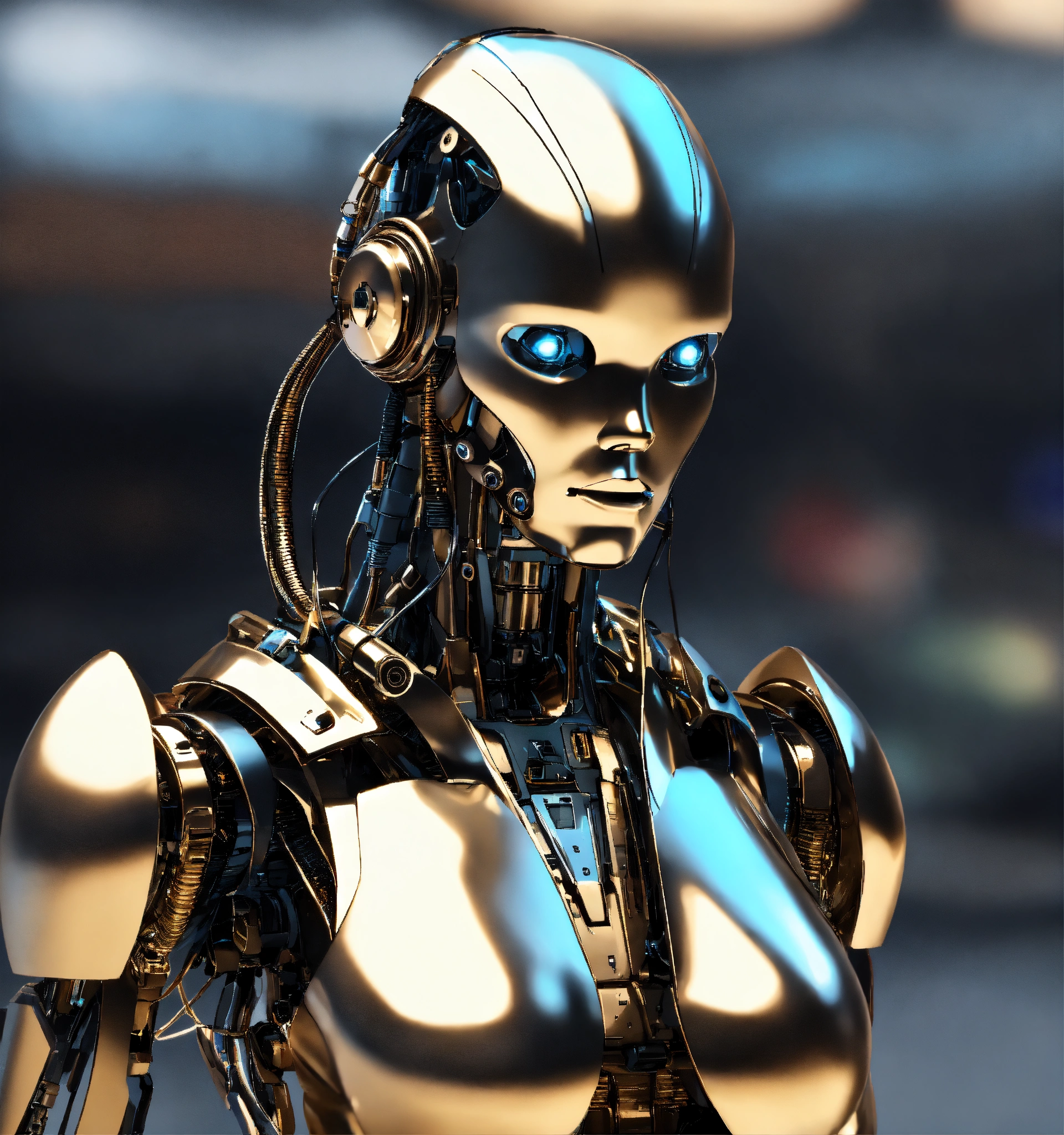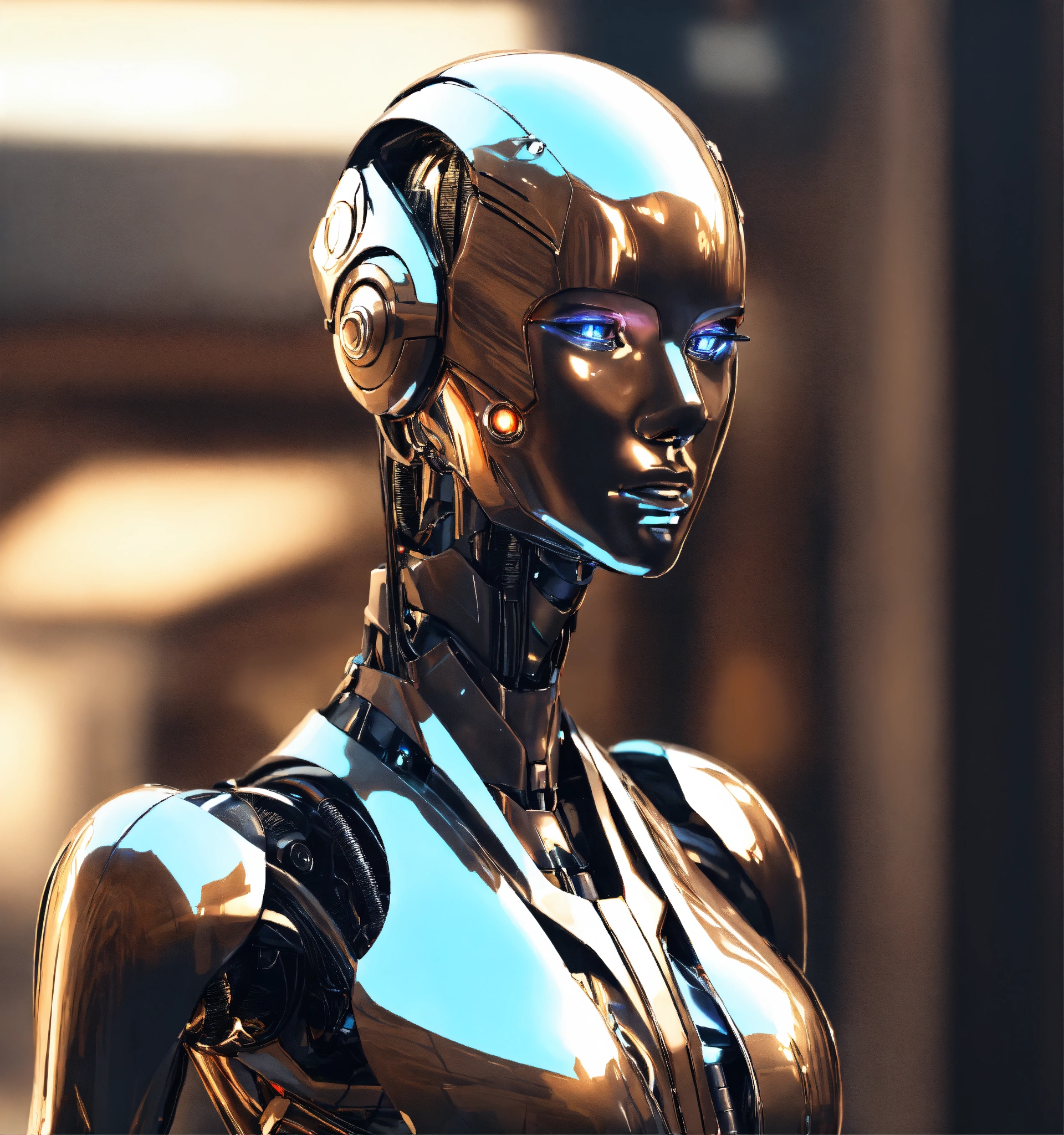 A futuristic robotic humanoid metallic sleek solid