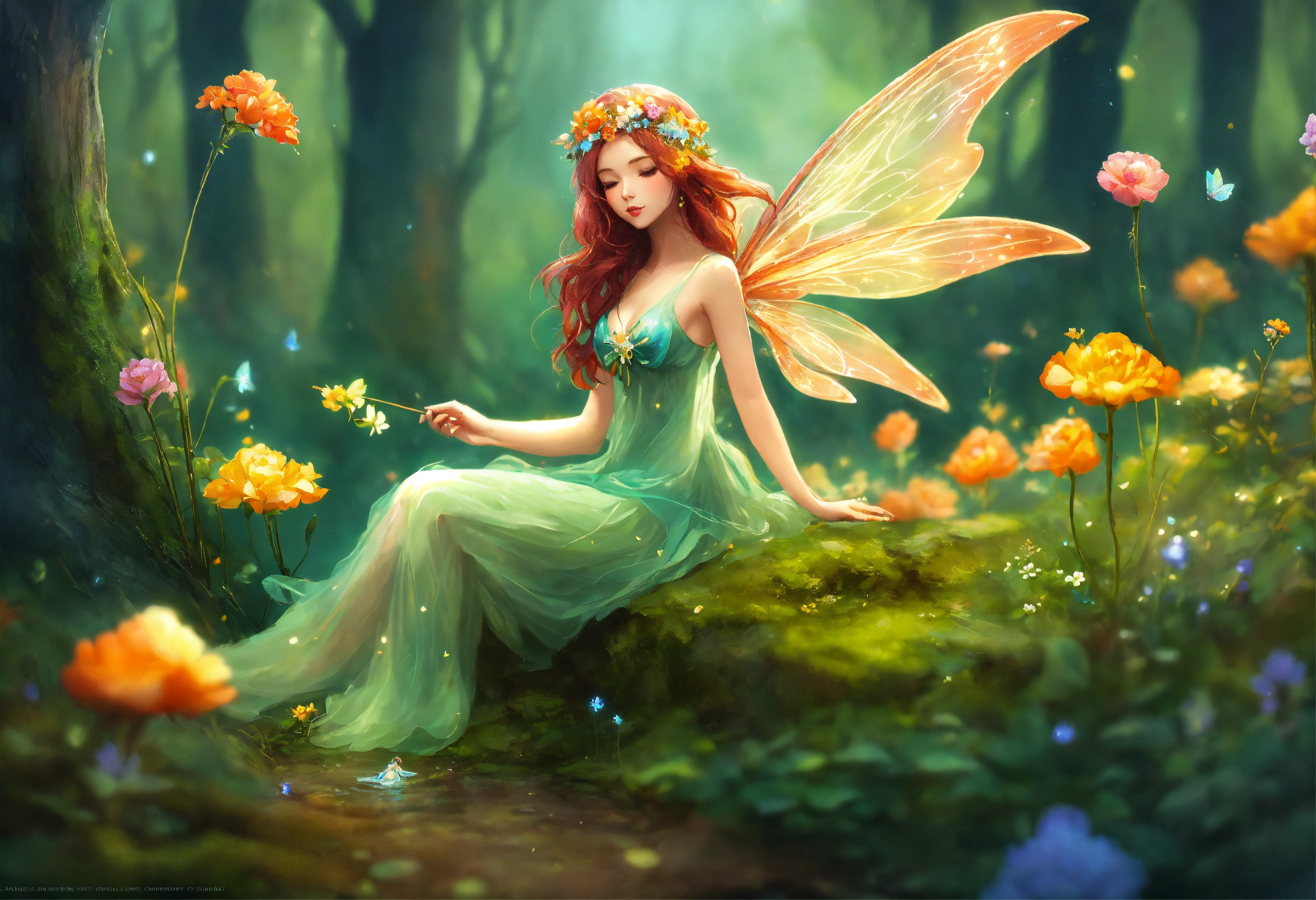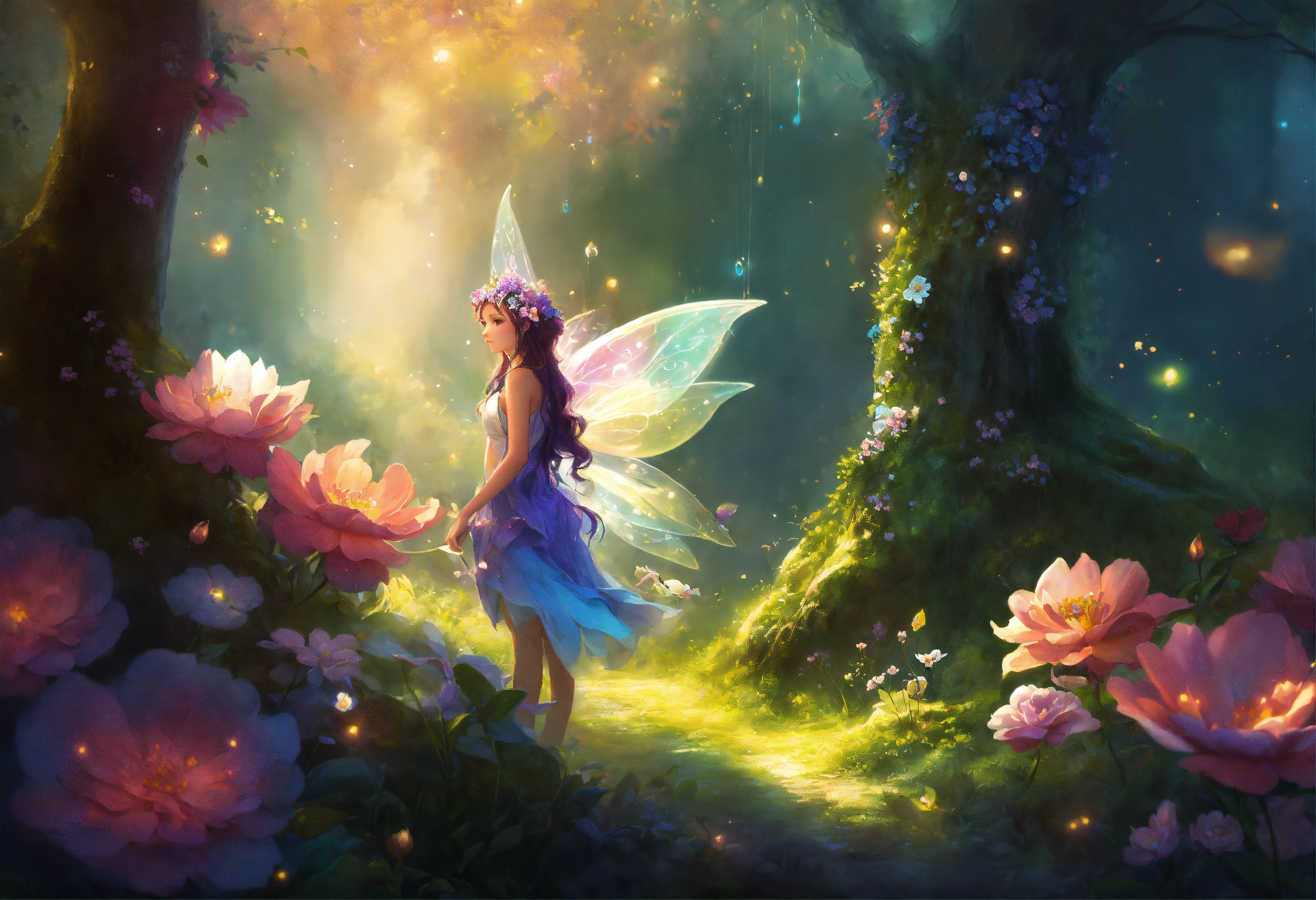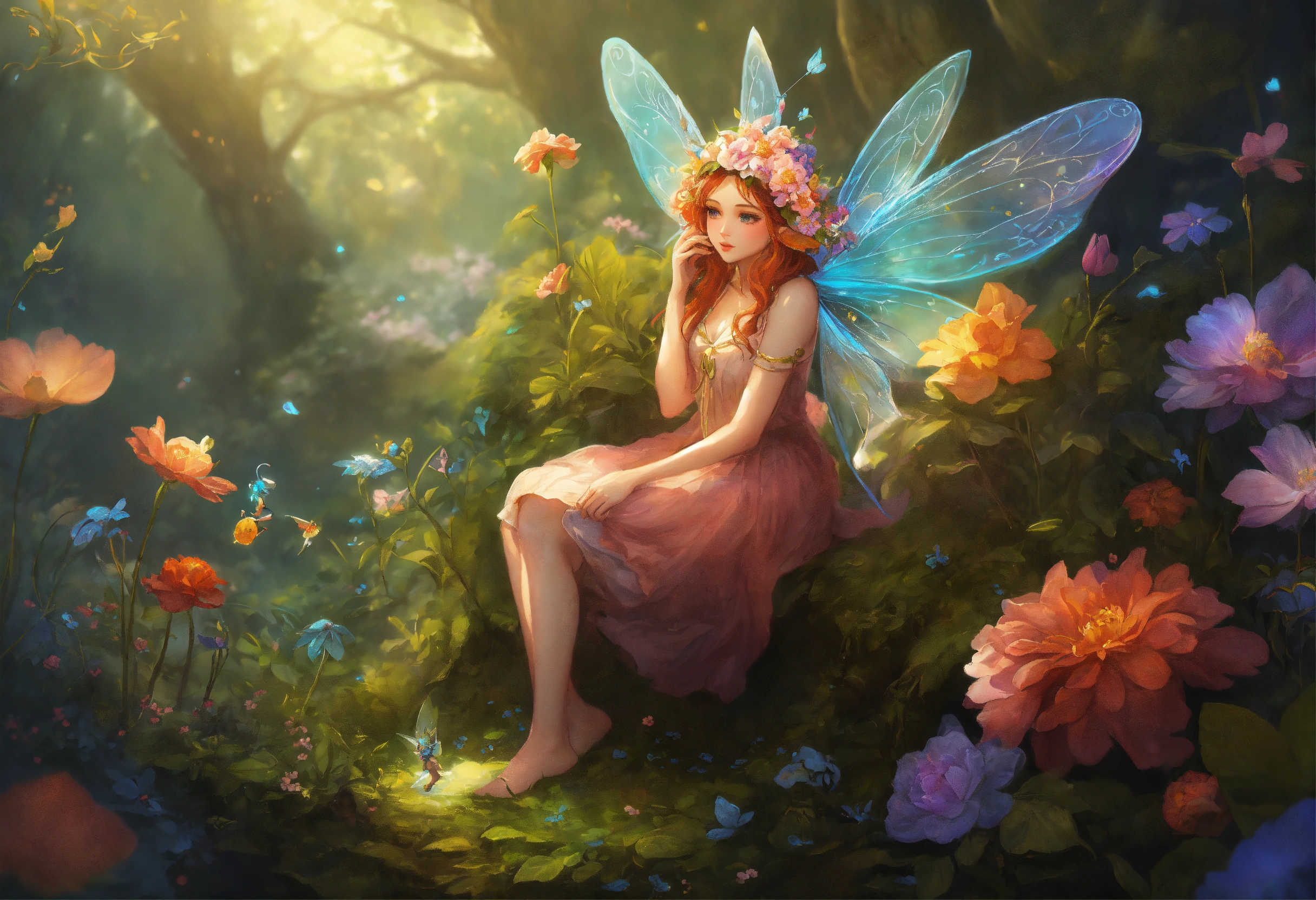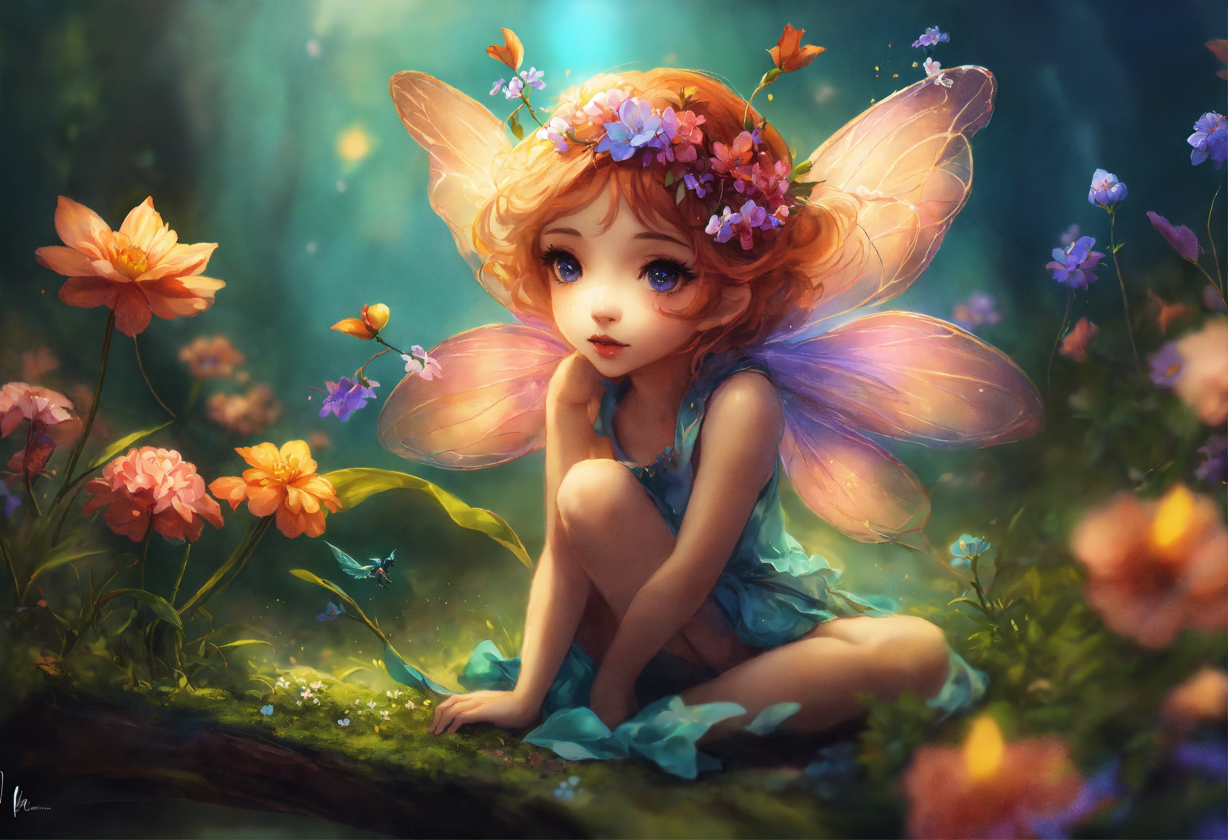 Ethereal fantasy concept art of playful fairy sprite whimsical