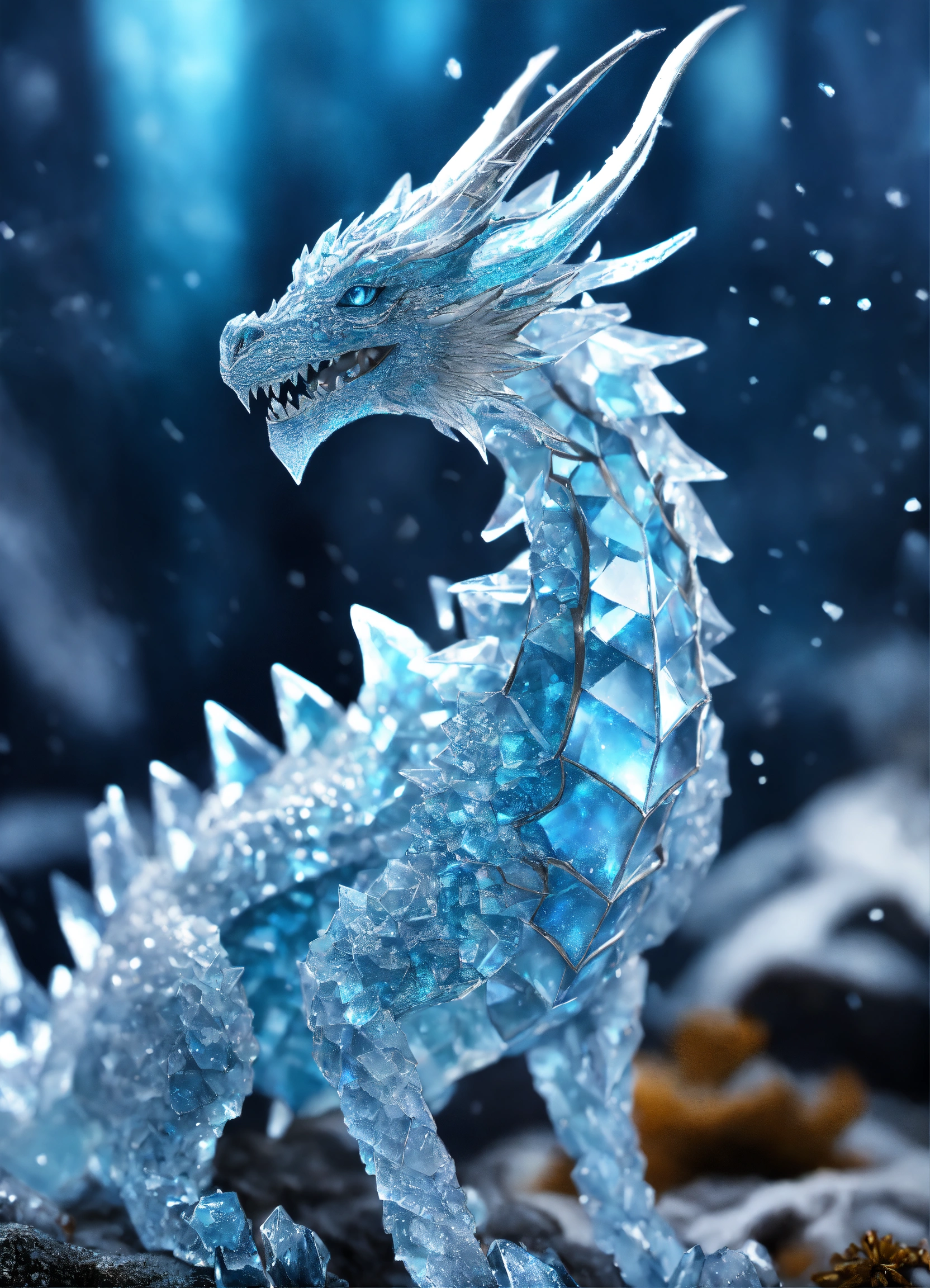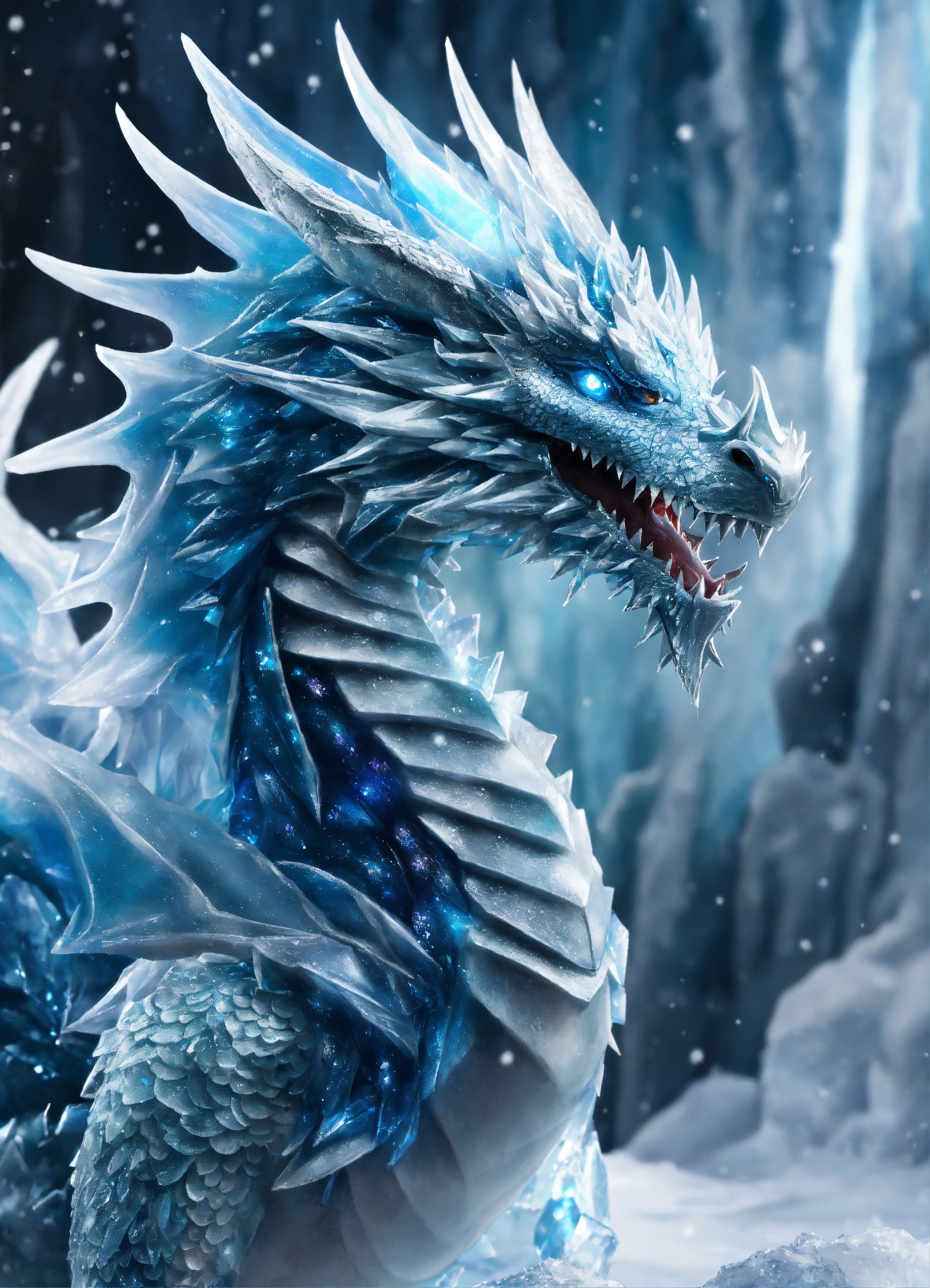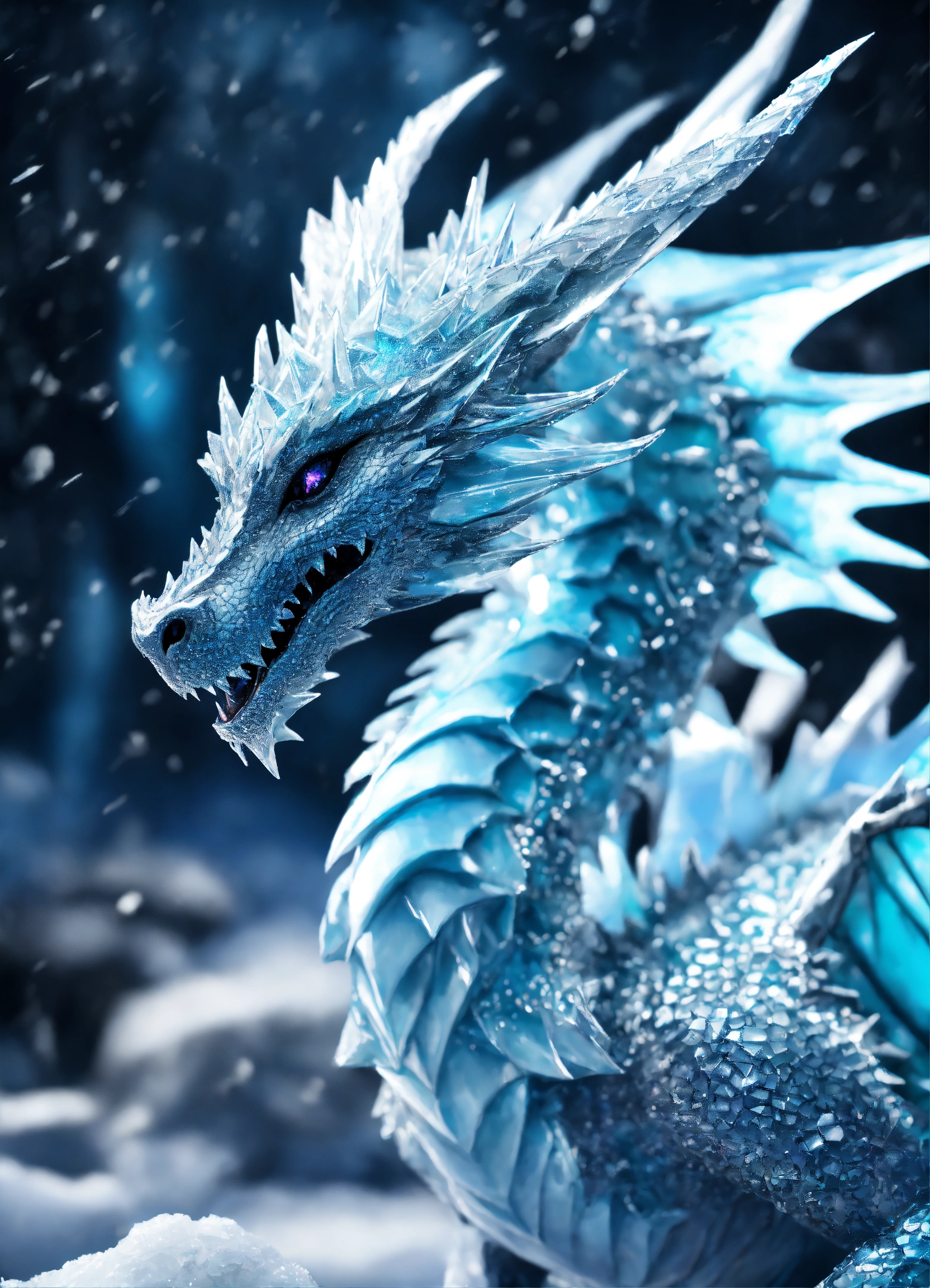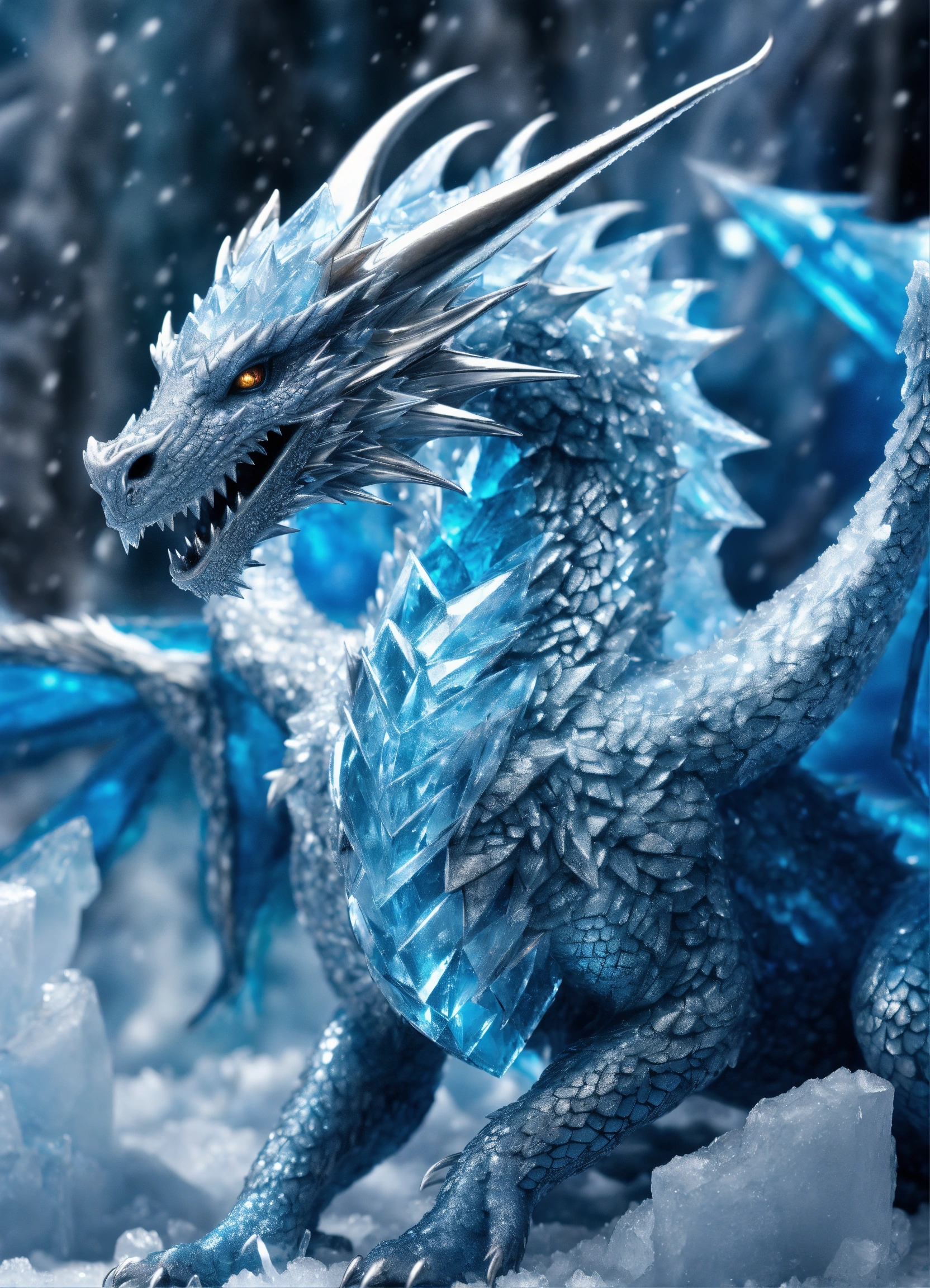 Photorealistic, icy dragon, anne stokes inspired, beautiful, fantastic, phantasy, freezing ice around, intricate detailed, glittering ice crystalls, 8k