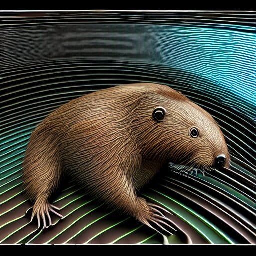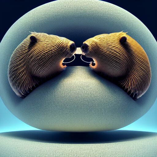 Hyperrealism computer simulation visualisation of parallel universe beavers in neofuturism sci - fi style by caravaggio rendered in mandelbulb 4 d and blender and octane render