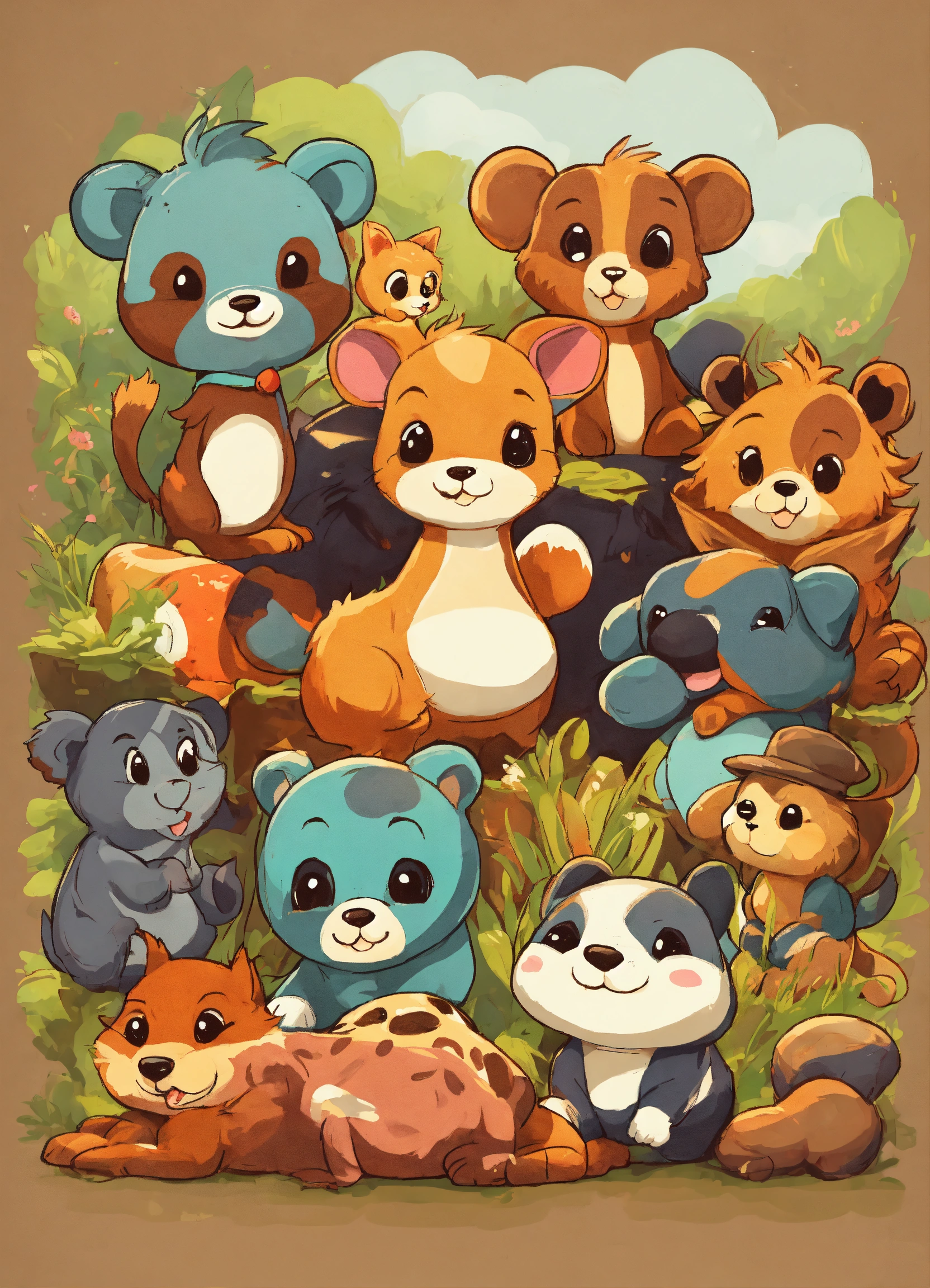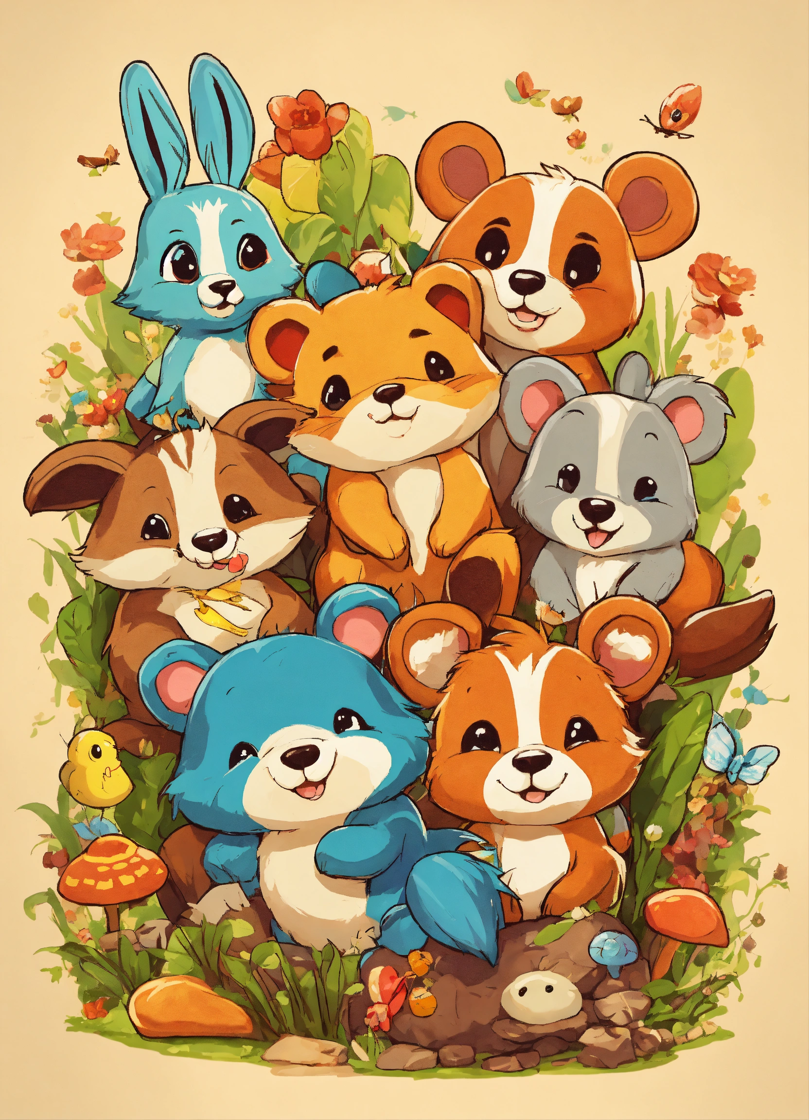Playful cartoon animals cute and adorable creatures t-shirt design delightful and lighthearted artwork --ar 169