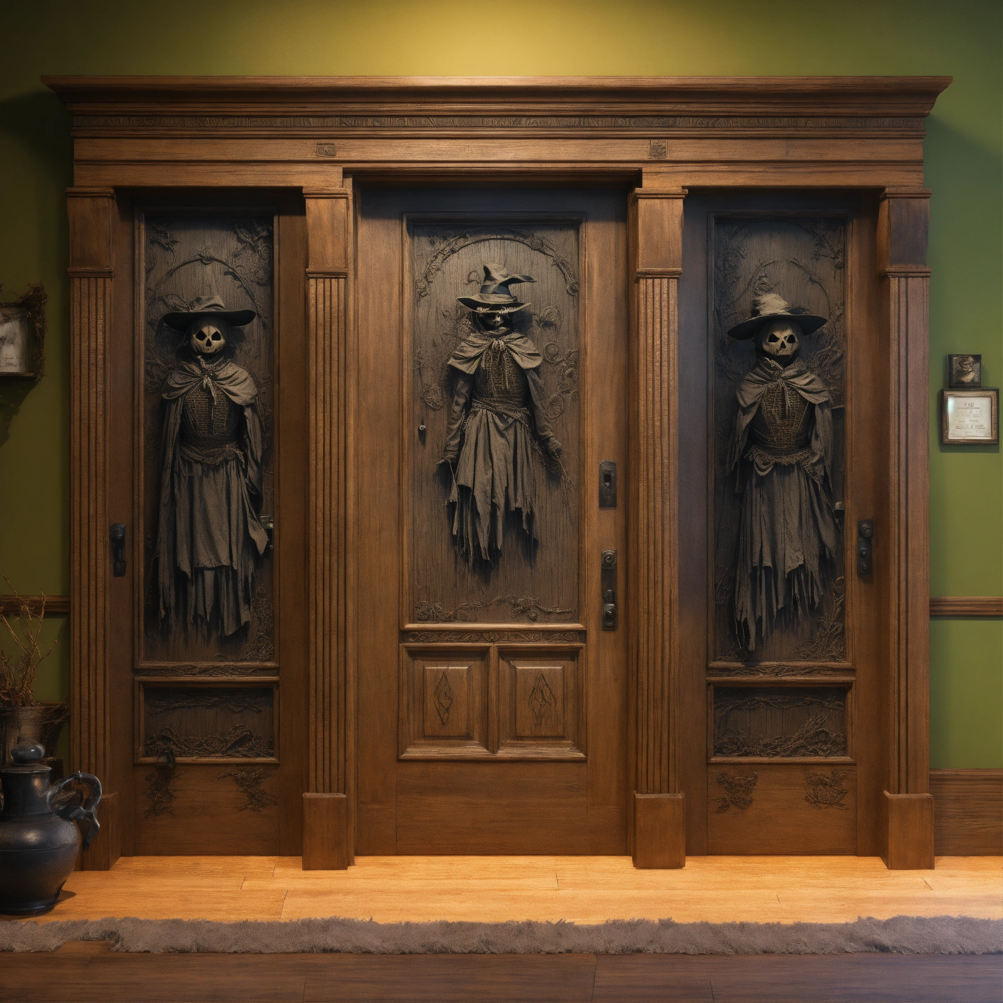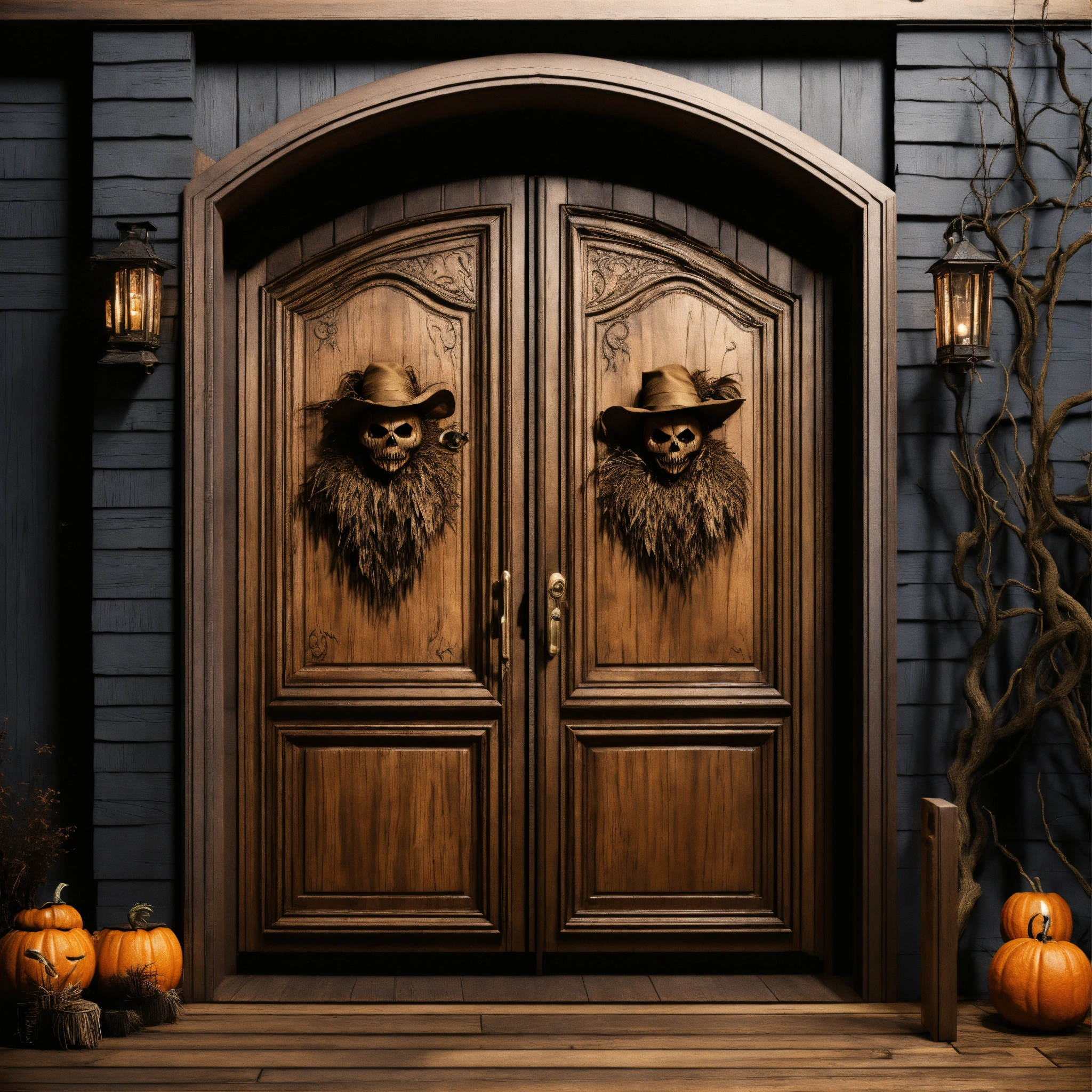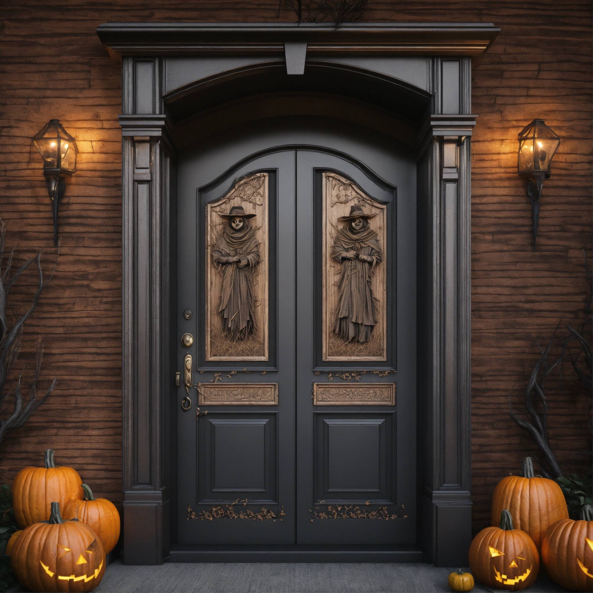 3d creepy haunted doors engraved scarecrow engraved obsidian and hyper realistic 8k