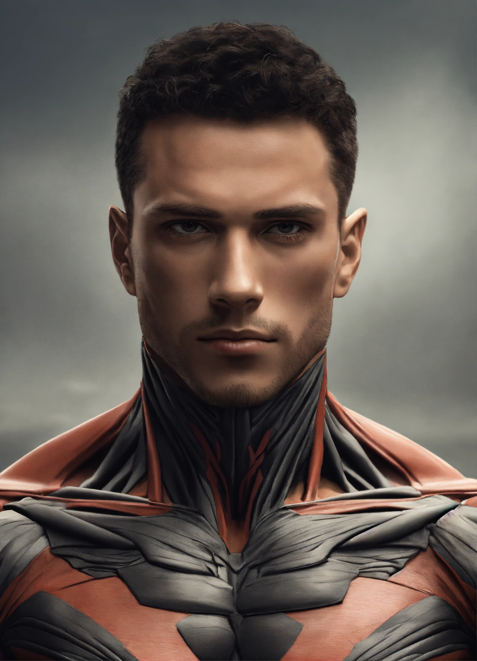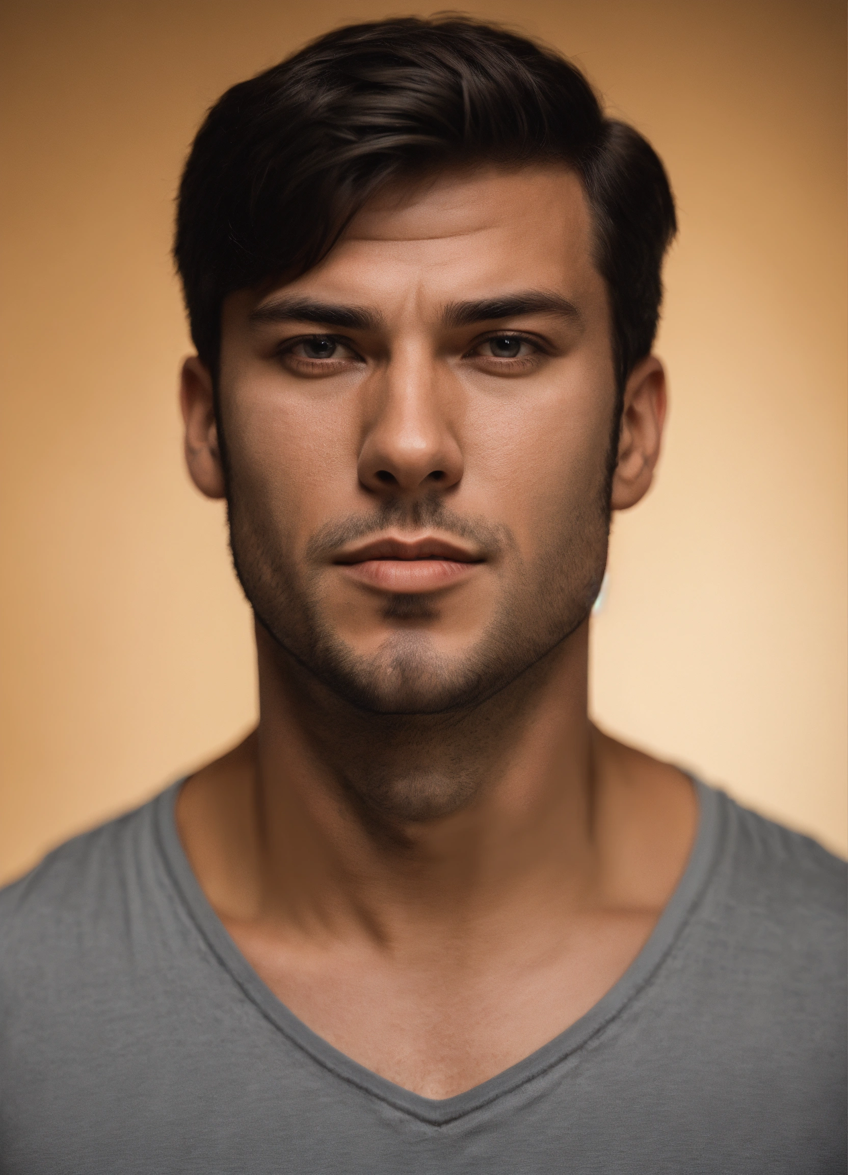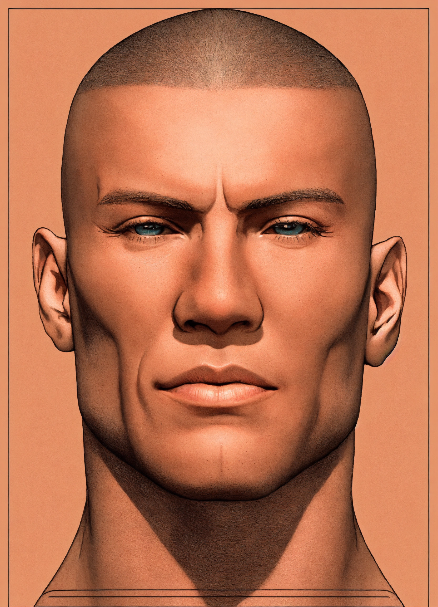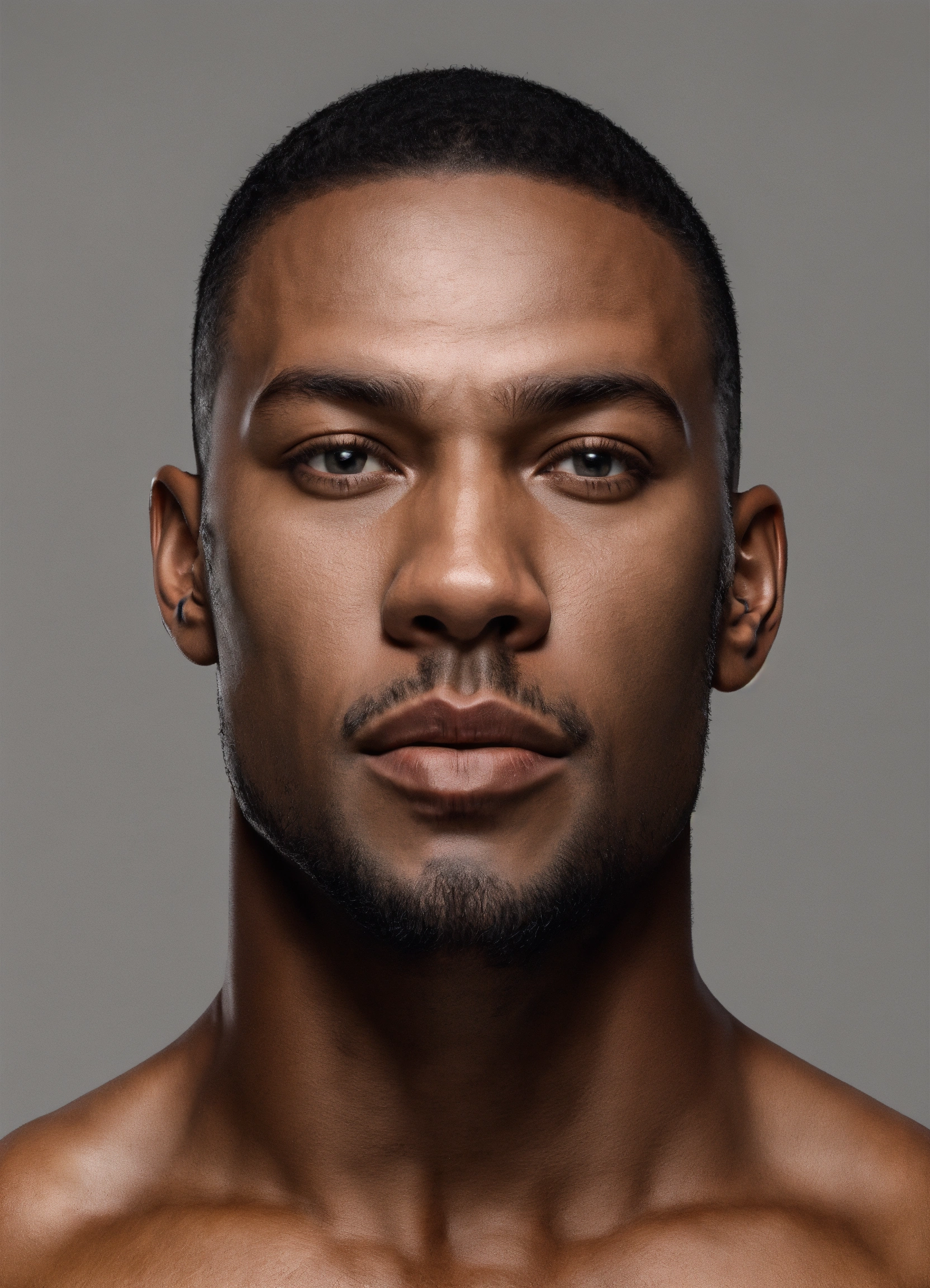 Muscle man front on symmetrical head neck shoulders