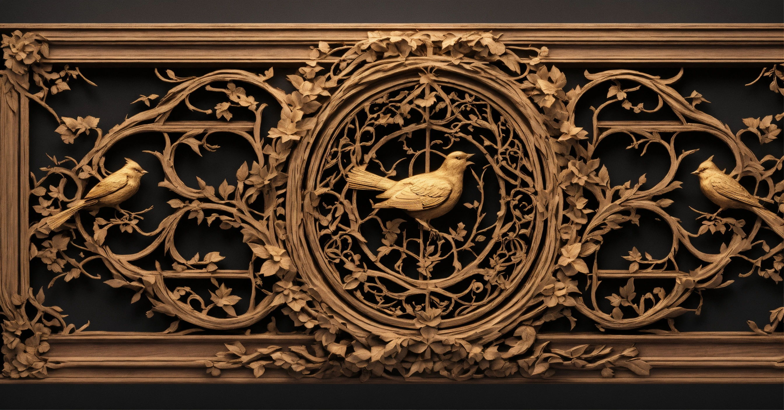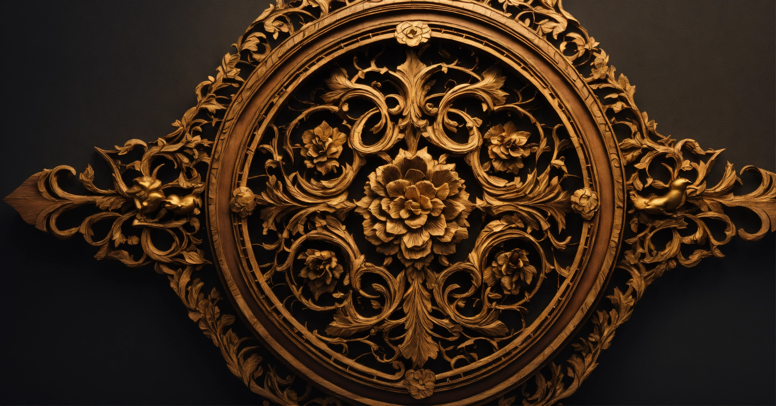 An intricate, ornate, symmetrical wood carving, with golden entertwined vines and roots, empty black center with farm, highly detailed, artstation, concept art, matte, sharp focus, negative space, birds, stars, no border, an intricate, ornate, symmetrical wood carving, with golden entertwined vines and roots, empty black center with farm highly detailed, 8k, octane render, artstation, concept art, matte, sharp focus, negative space, roses, no border, farm, birds, moon, mountain, wood cabin, realistic photo