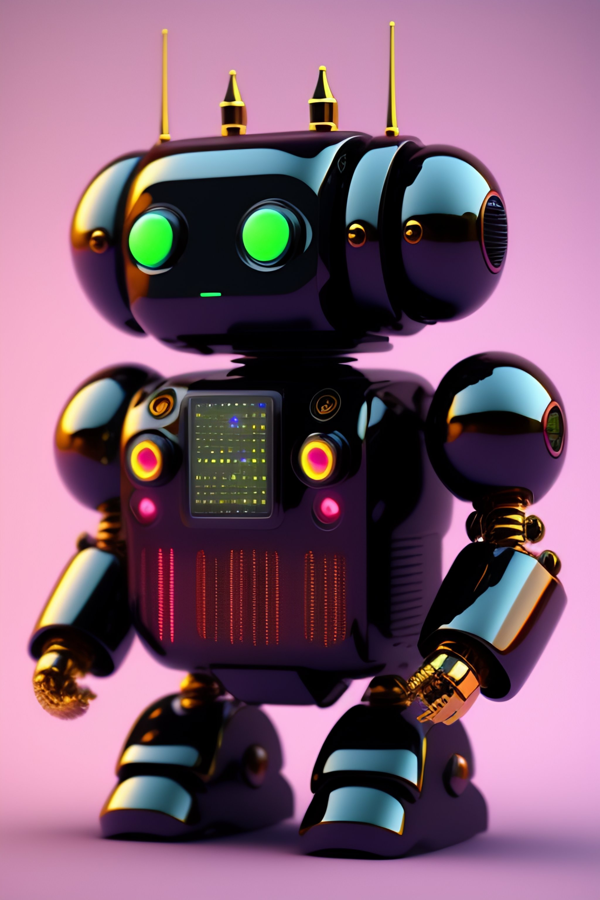 A very cute robot with a lcd screen for a face made from modular synthesizers, analog synthesizer robot, c4d render