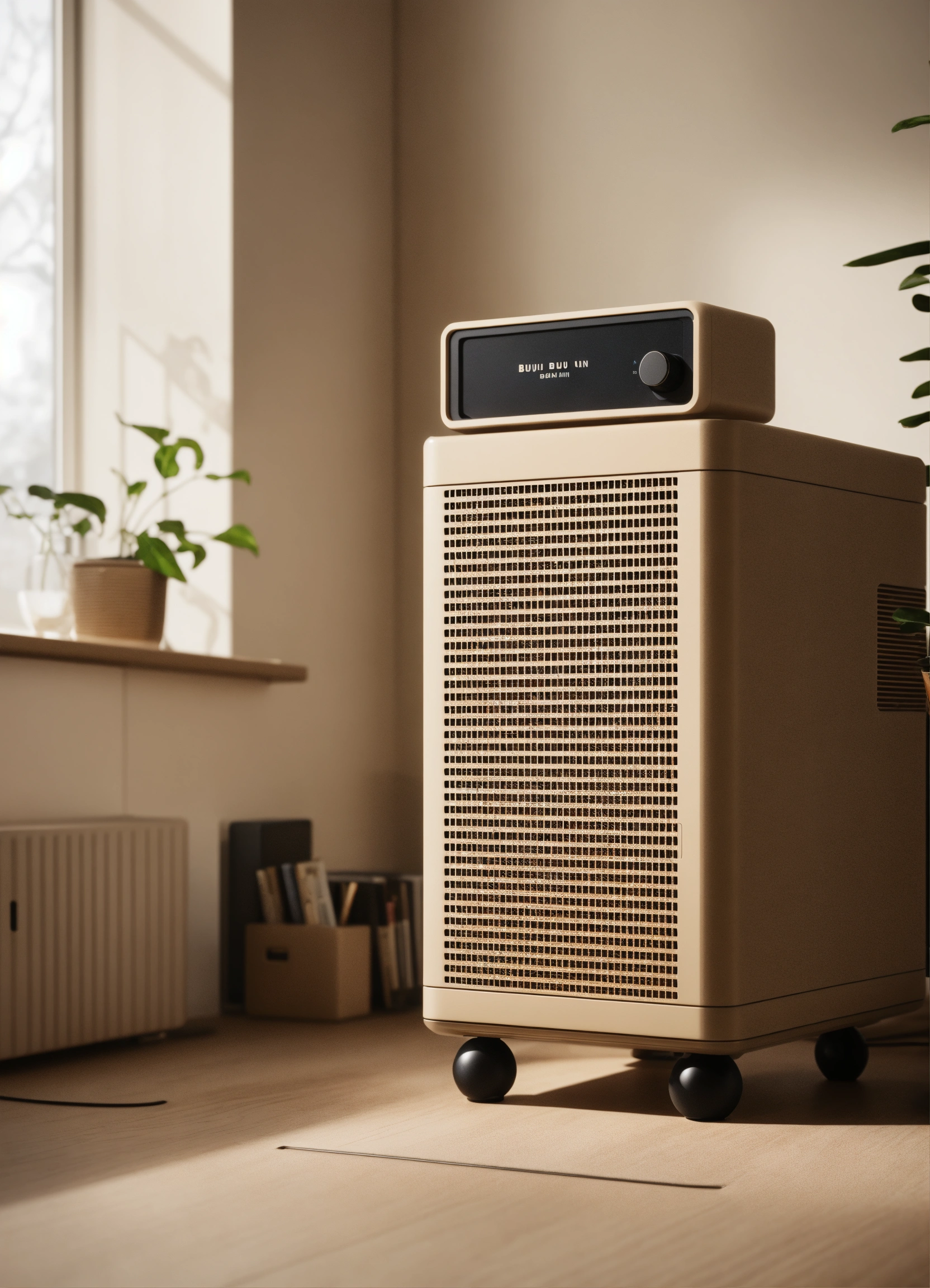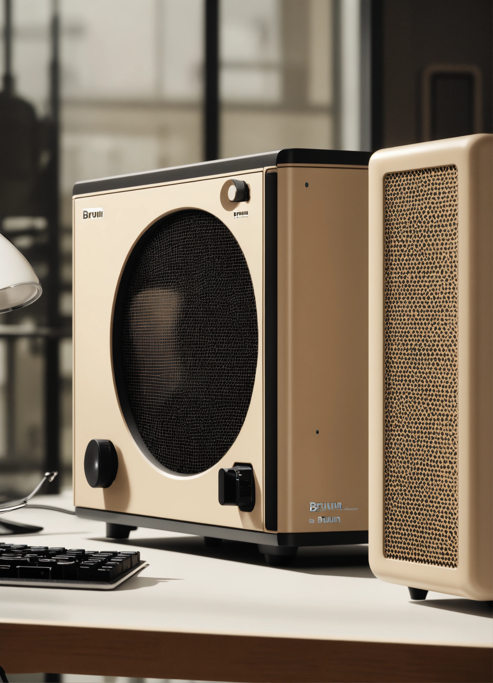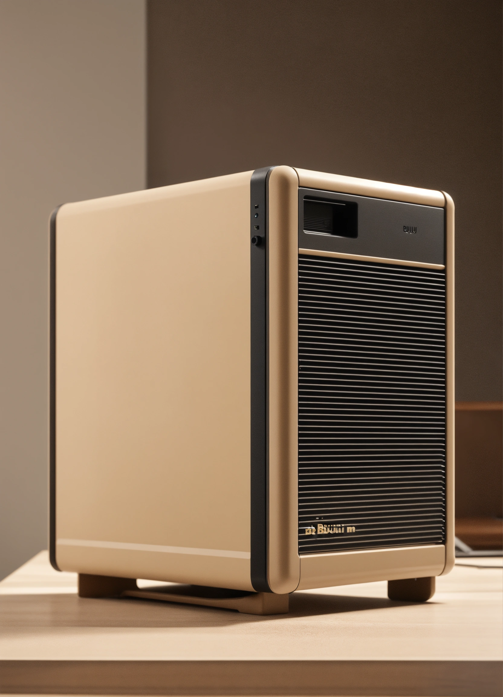 A stunning beige pc case designed by dieter rams, braun. product ad retro. industrial design inspiration. unreal engine render, natural lighting, on desk