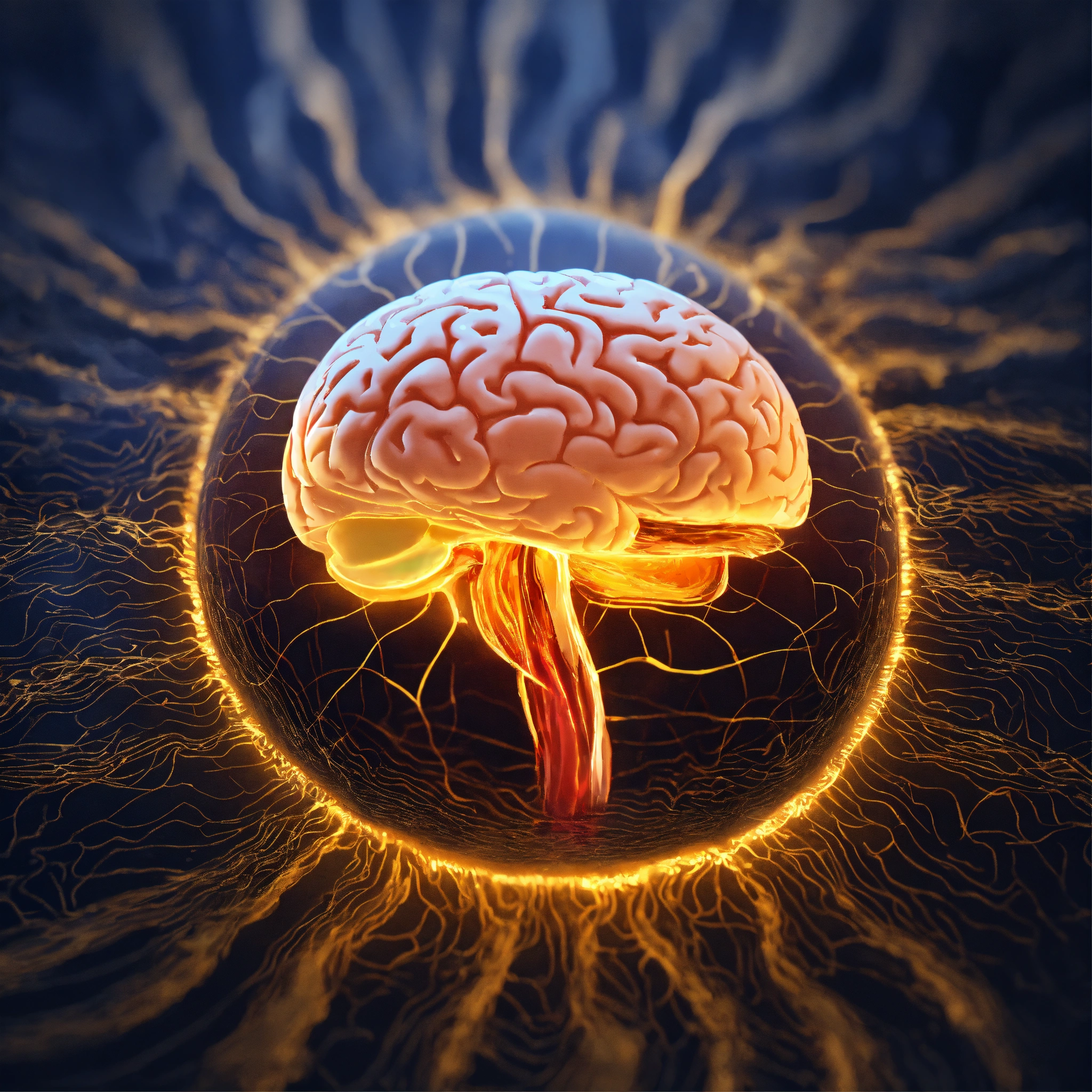 A brain with a ripple effect of light radiating out from the primary visual cortex