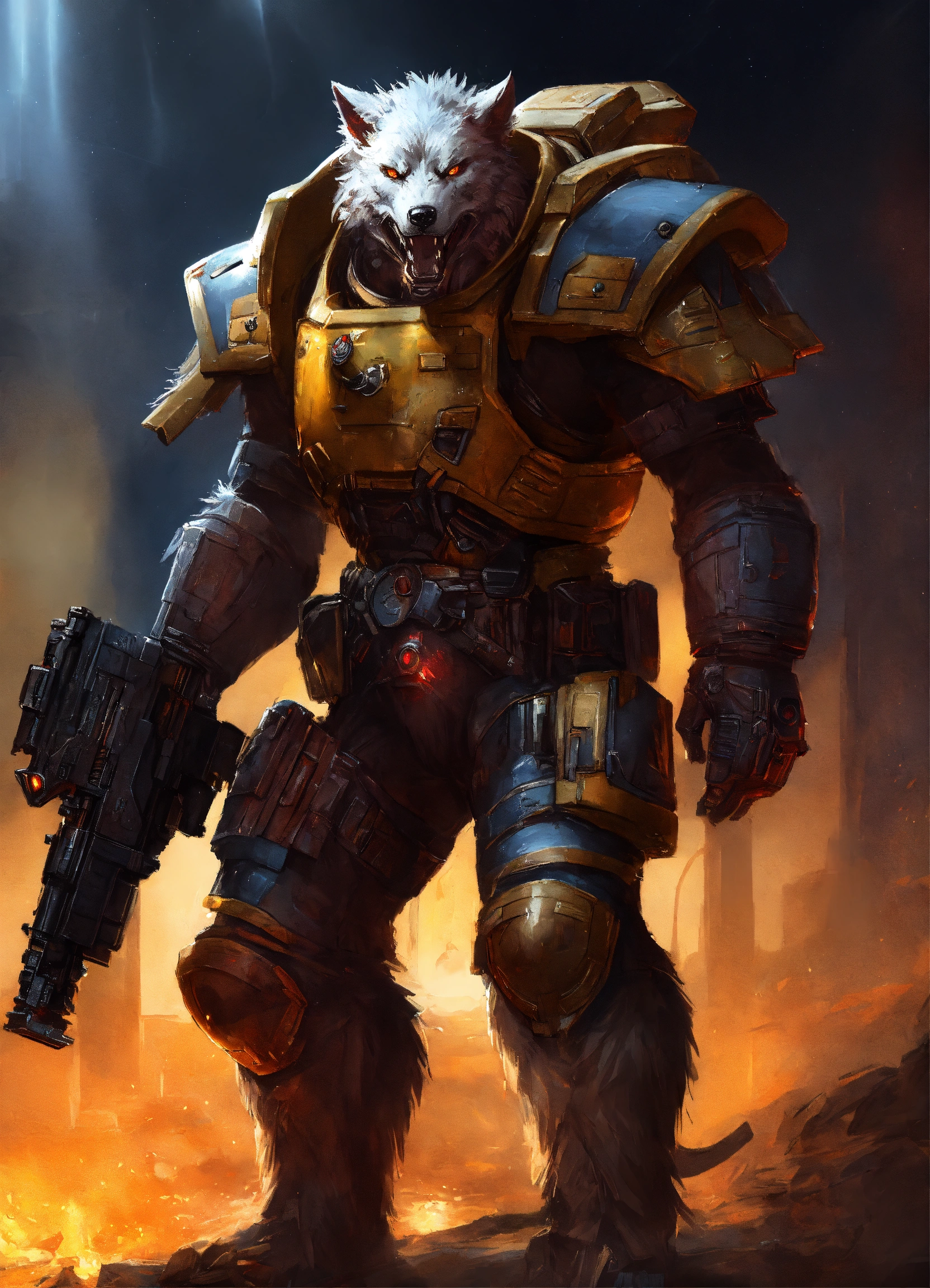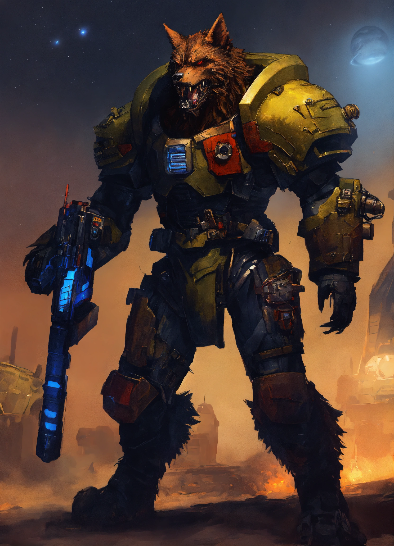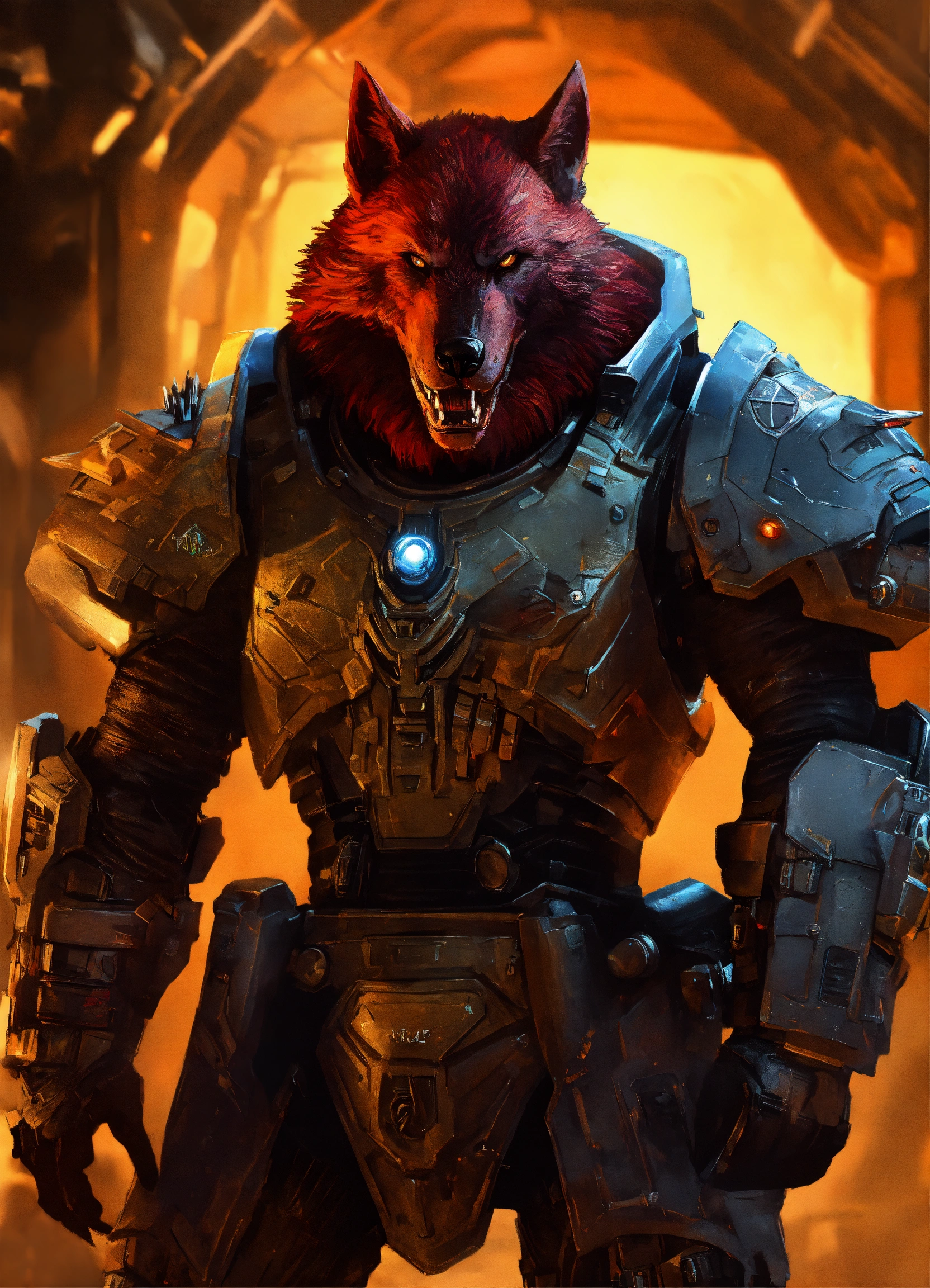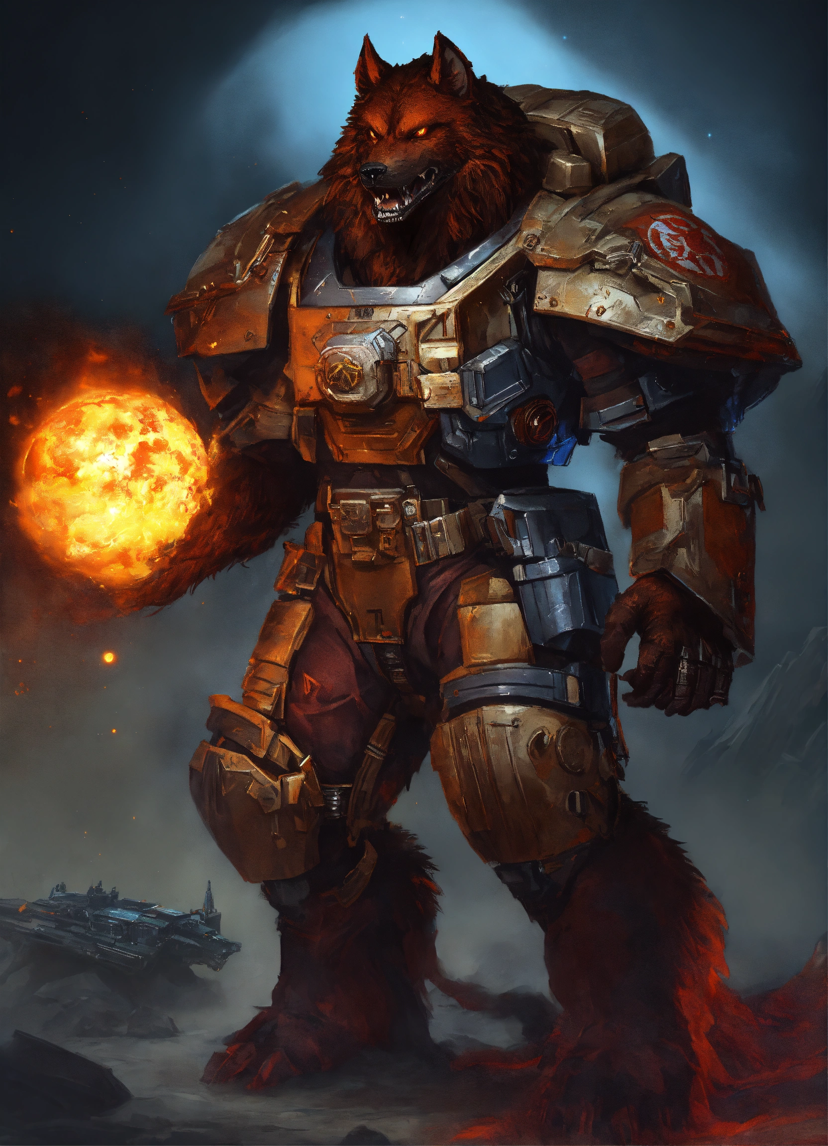 Volkrikk durran, werewolf, monstrous, demonic, space pirate, monster, art station, sci-fi, warhammer 40000, mass effect, science fiction, space opera, armored, power armor