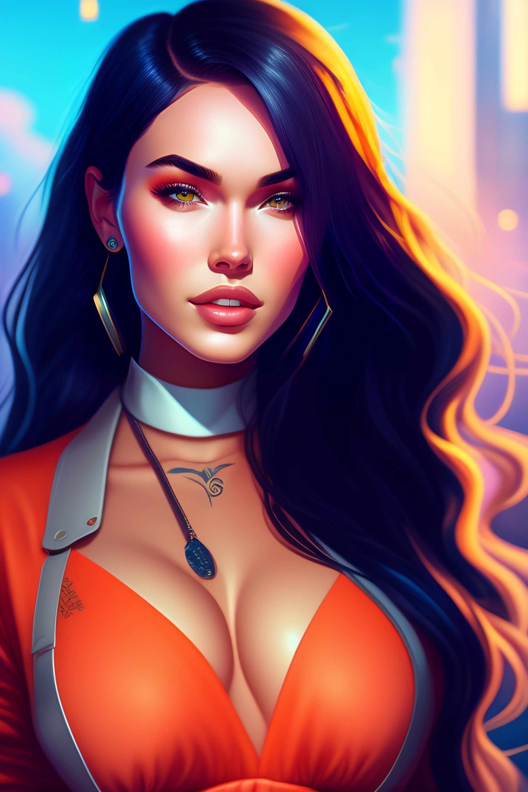 Megan fox as marge simpson, toll haircut, ambient lighting, 4k, anime key visual, lois van baarle, ilya kuvshinov, rossdraws, artstation, detailed, award winning, vibrant, high contrast, symmetry, trending on artstation, digital art, intricate