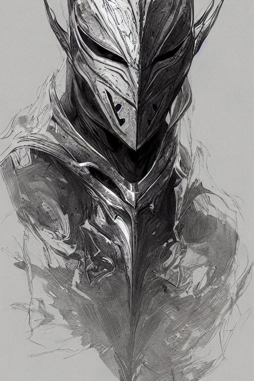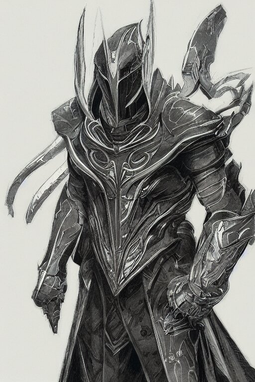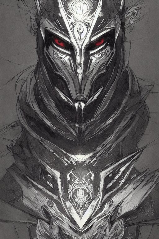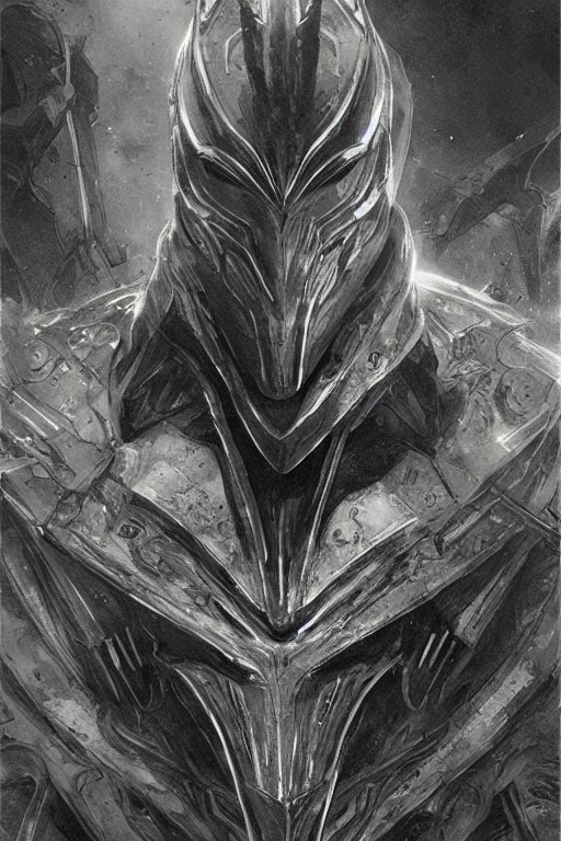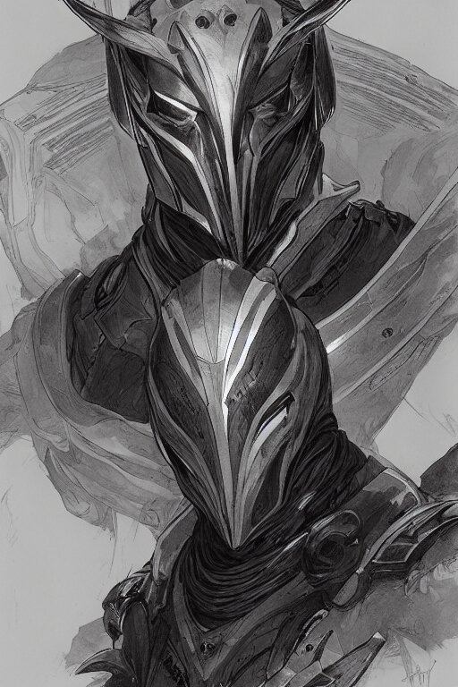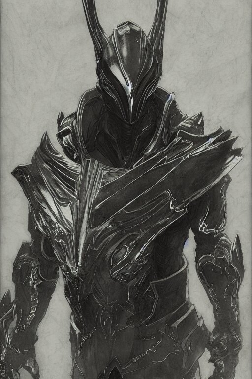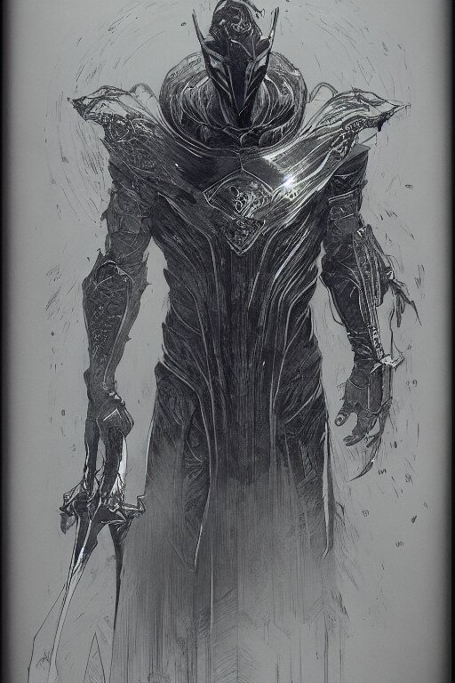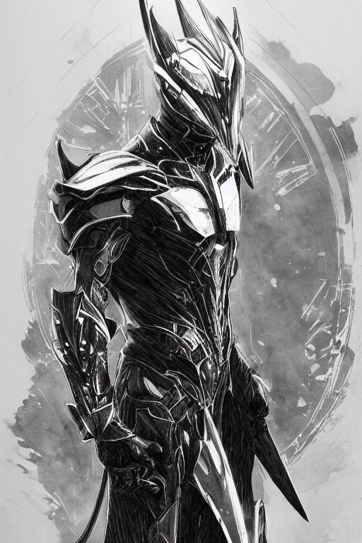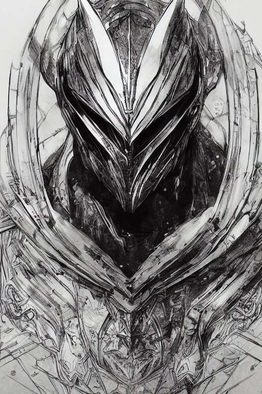 Portrait of excalibur umbra from warframe, pen and ink, intricate line drawings, by craig mullins, ruan jia, kentaro miura, greg rutkowski