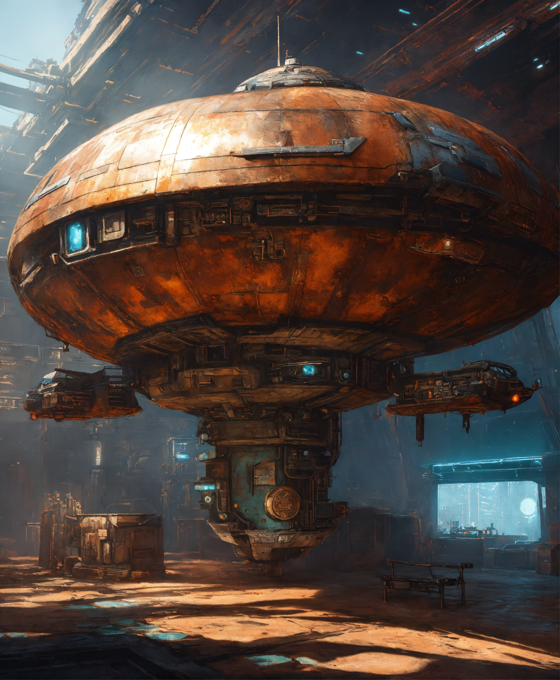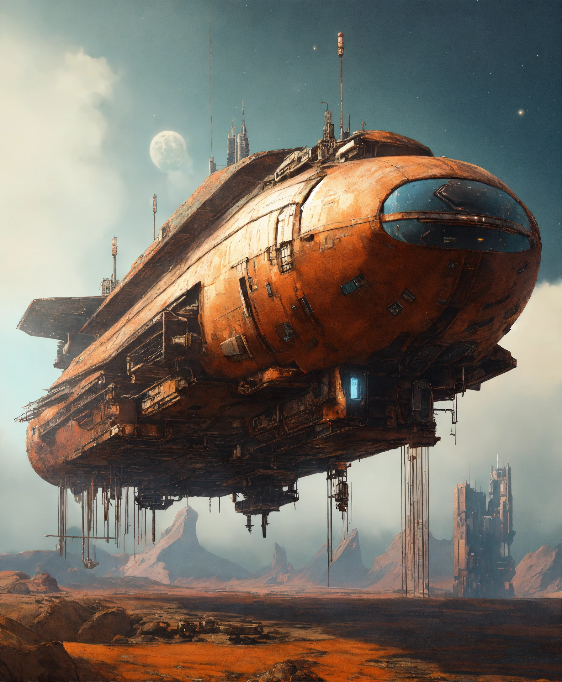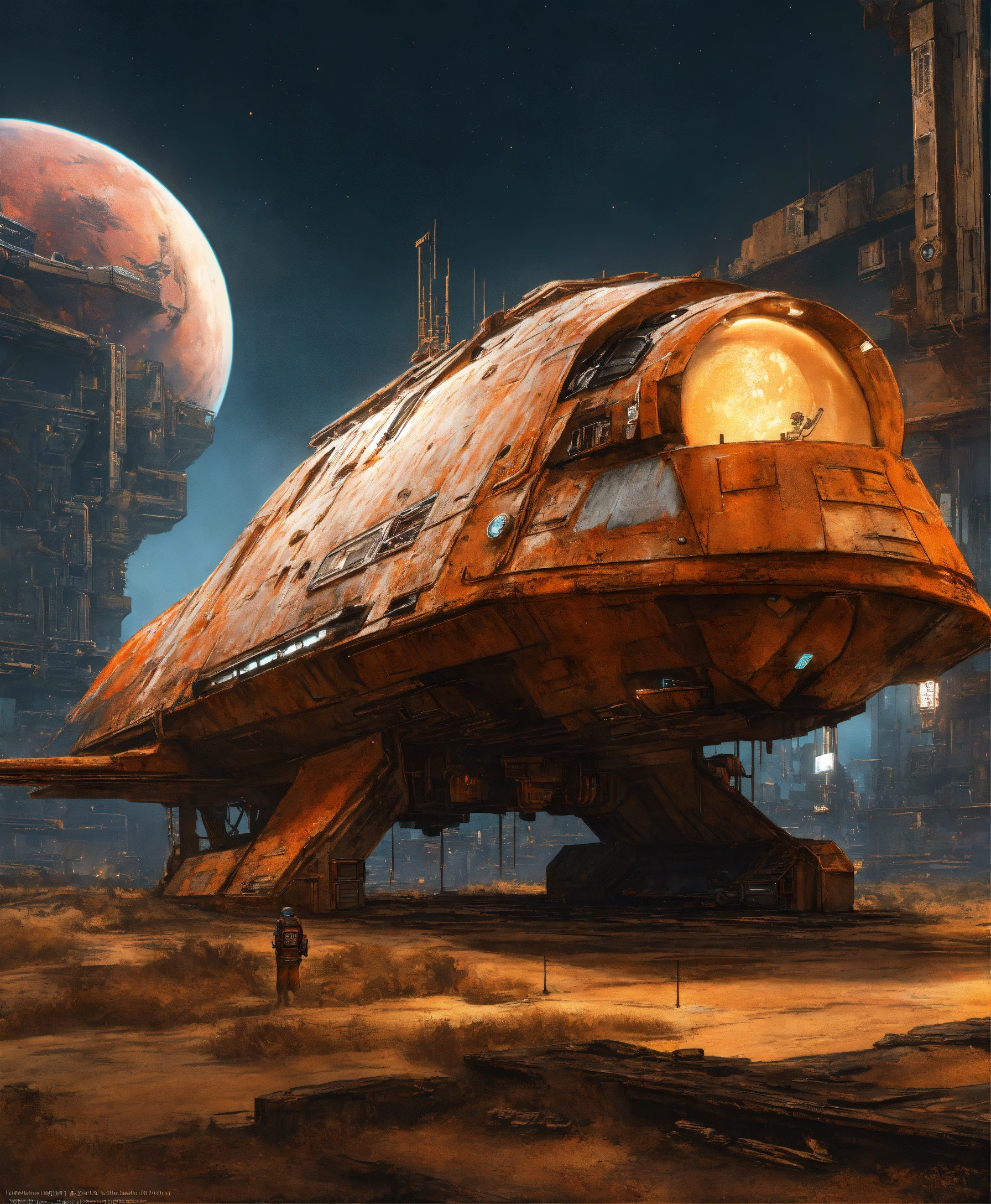 A cyberpunk spaceship