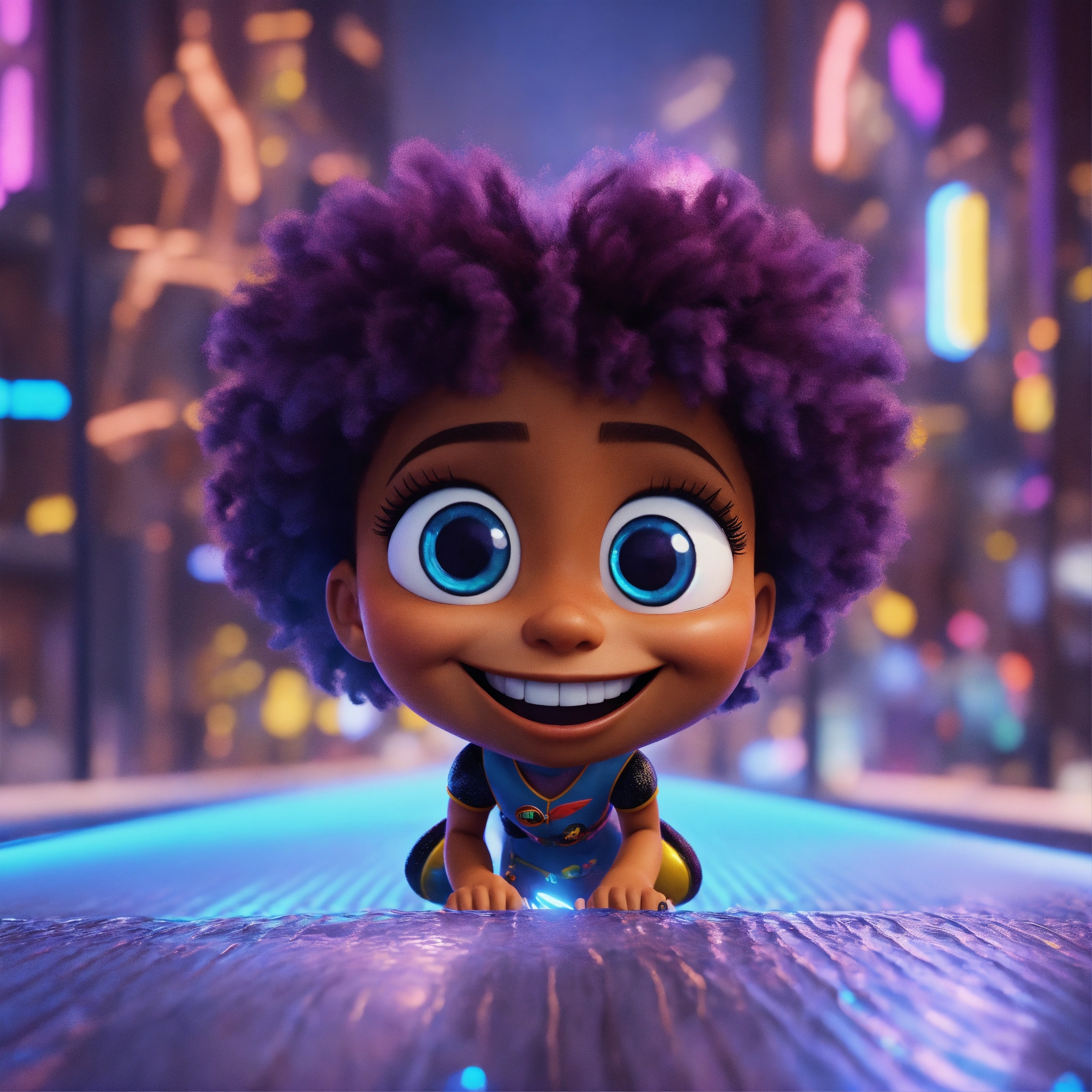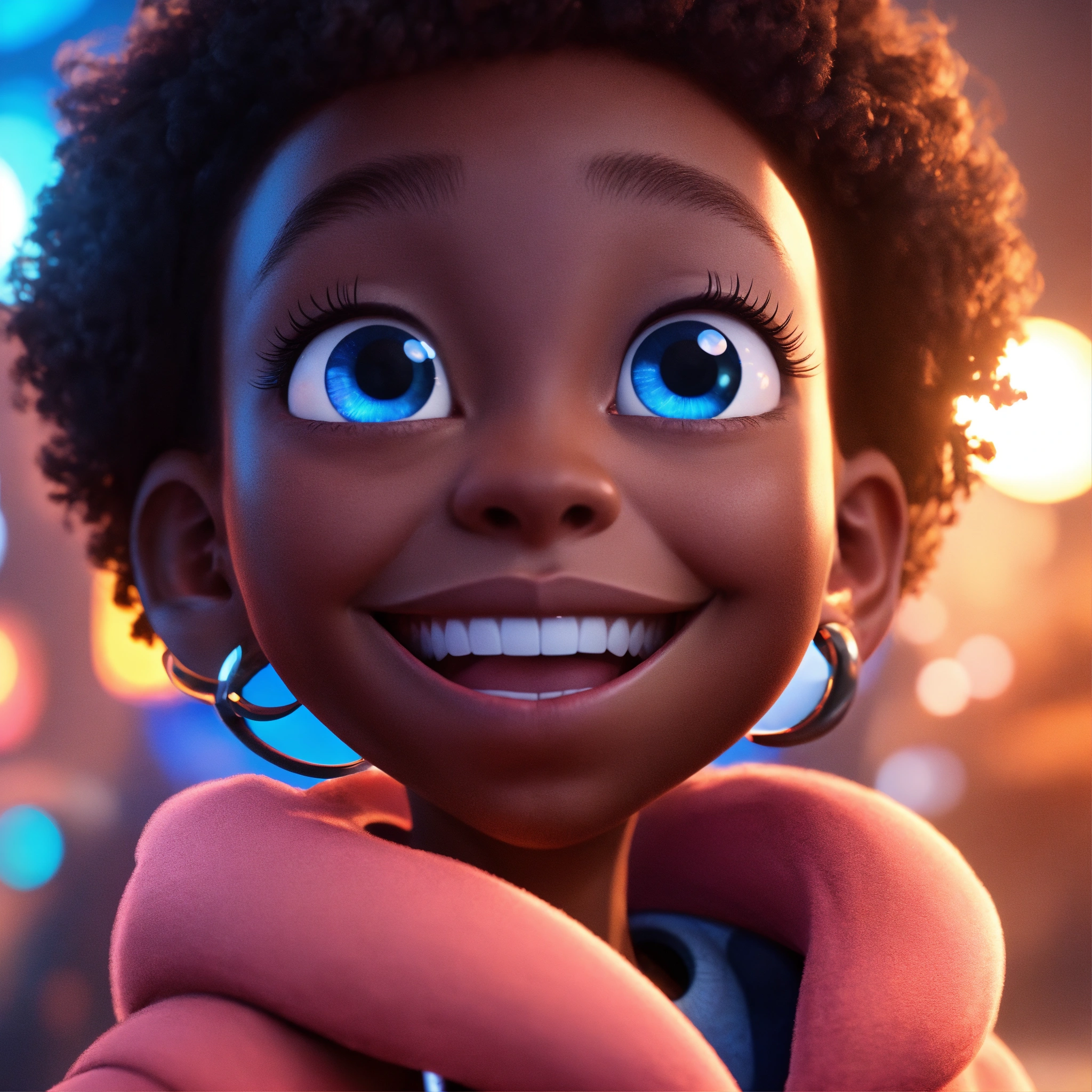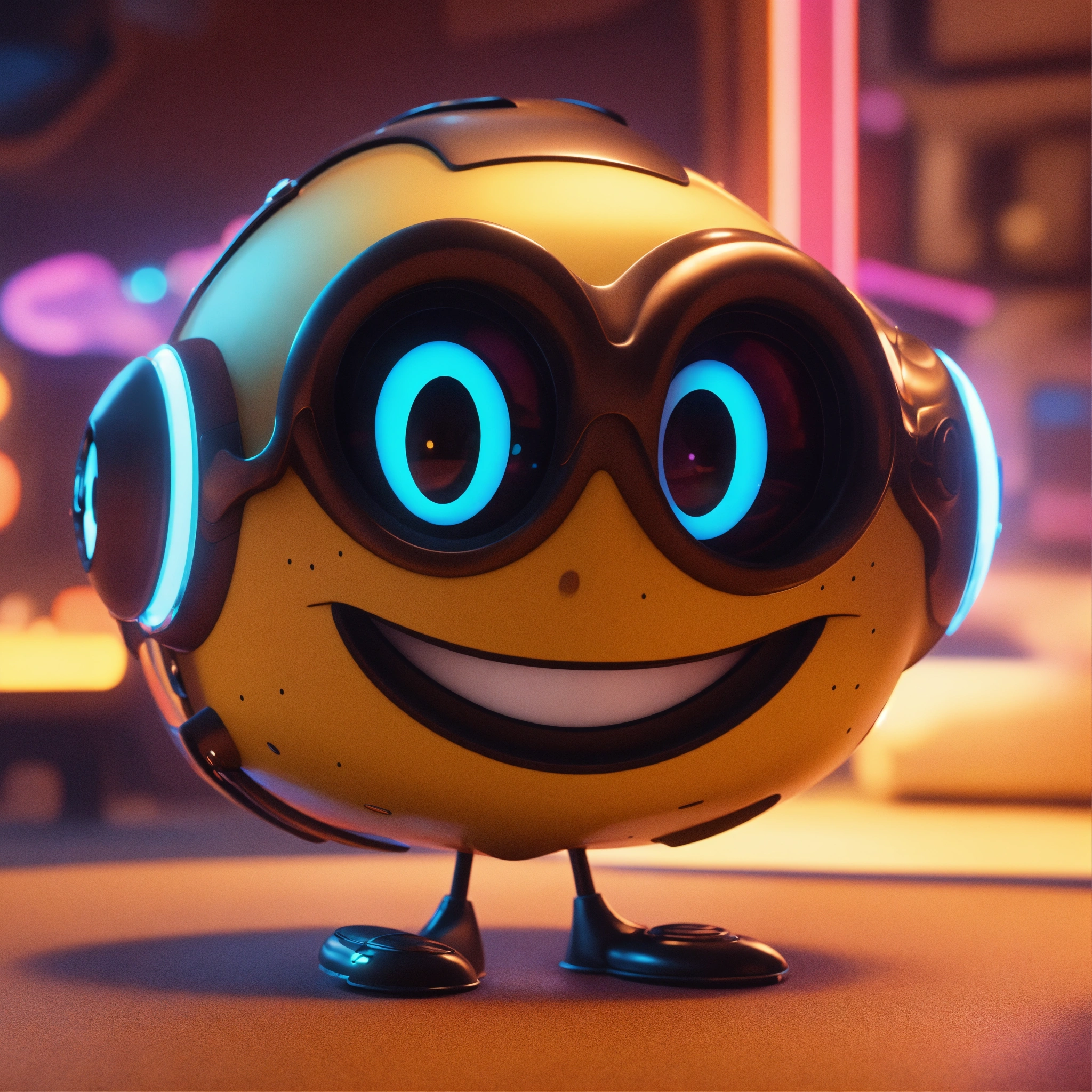 A cartoon wave form smiles on the screen with 2 cartoon eyes, the character has attitude like a mad black girl, realistic, futuristic, sci-fi, 8k, unreal engine, pixar. disney