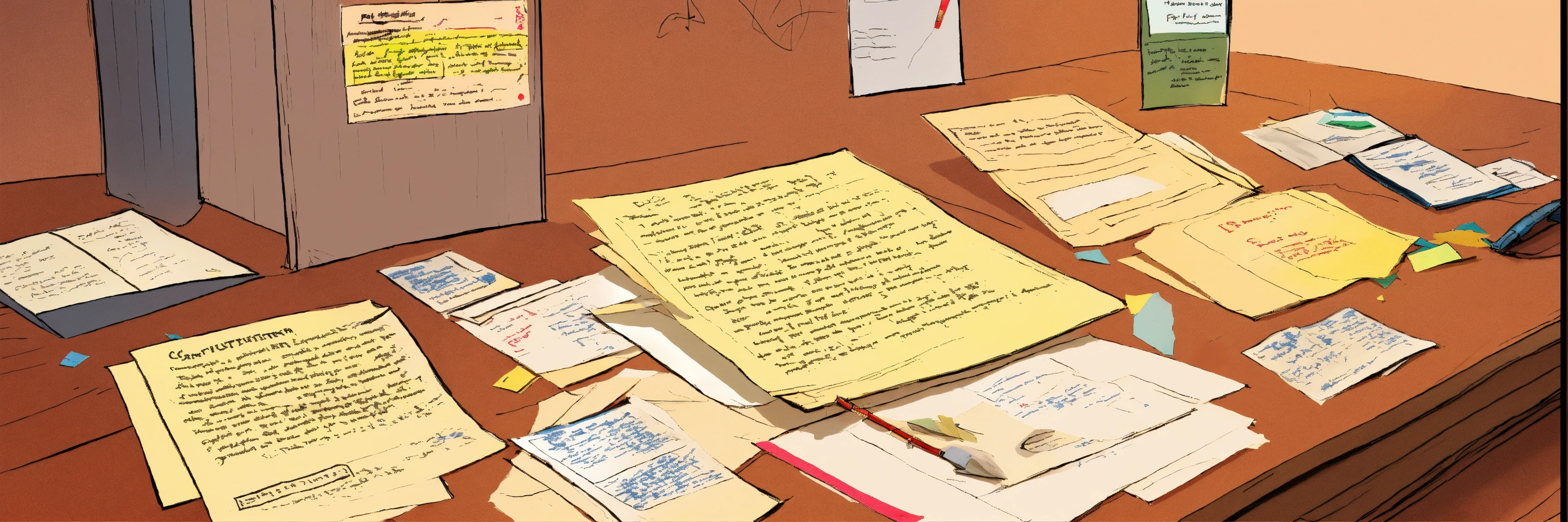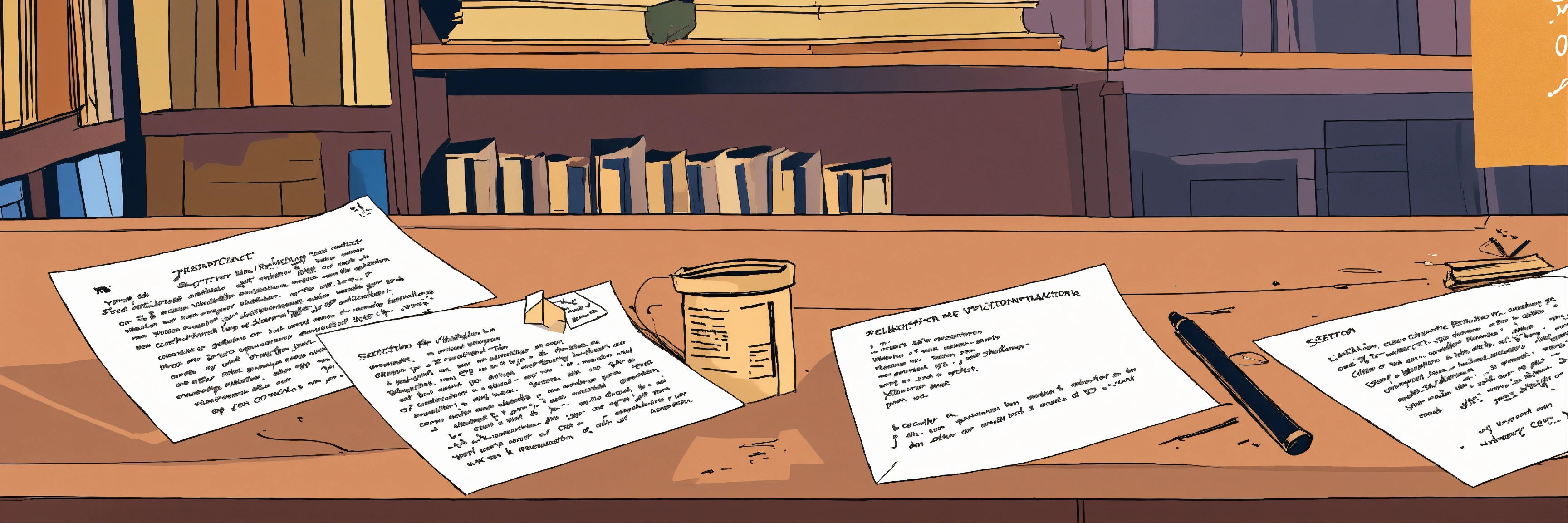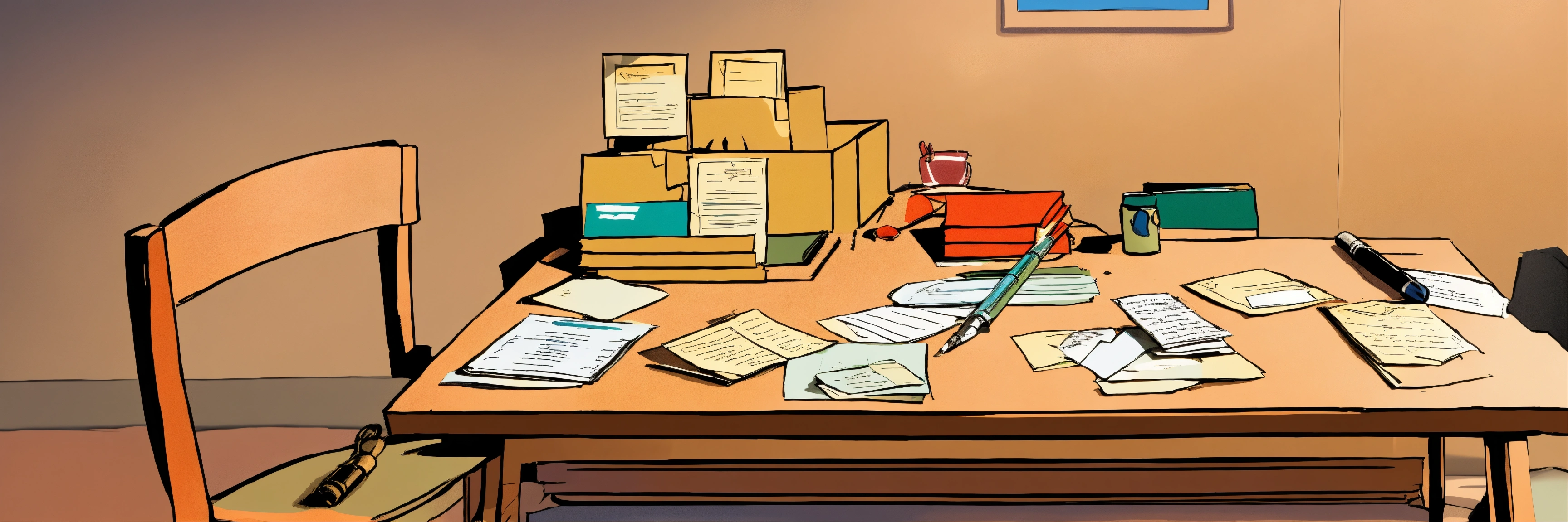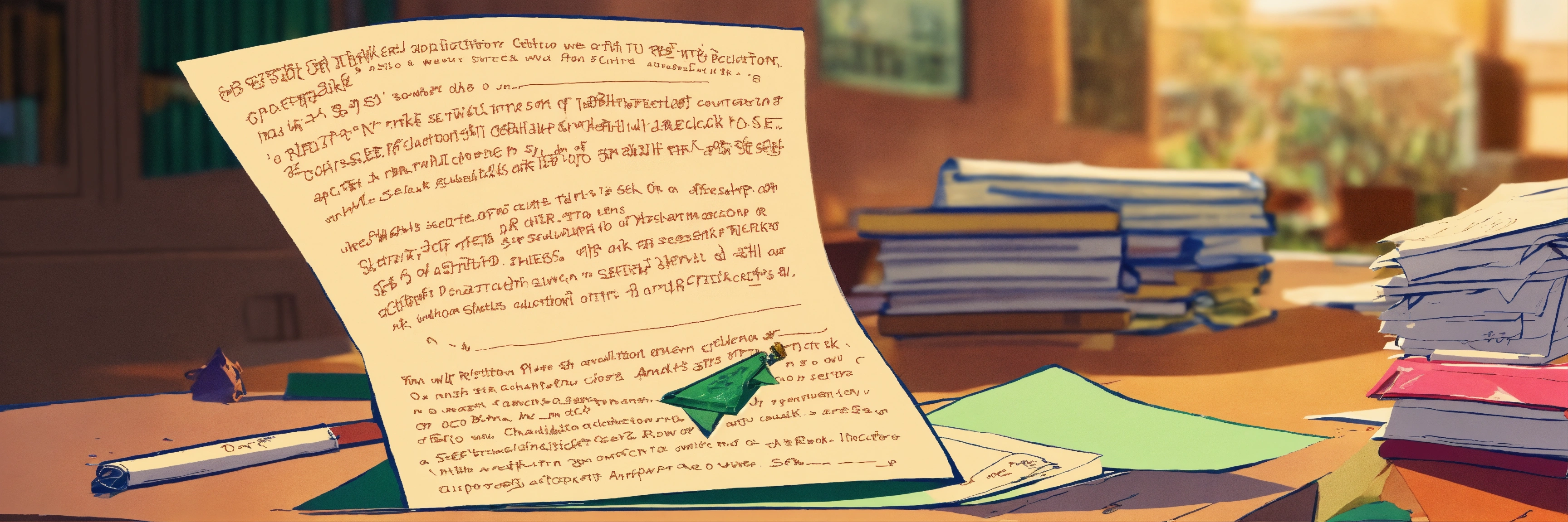 Images of rejection letters from various scholarship applications scattered on a table, symbolizing the initial setbacks raj faced.in cartoon
