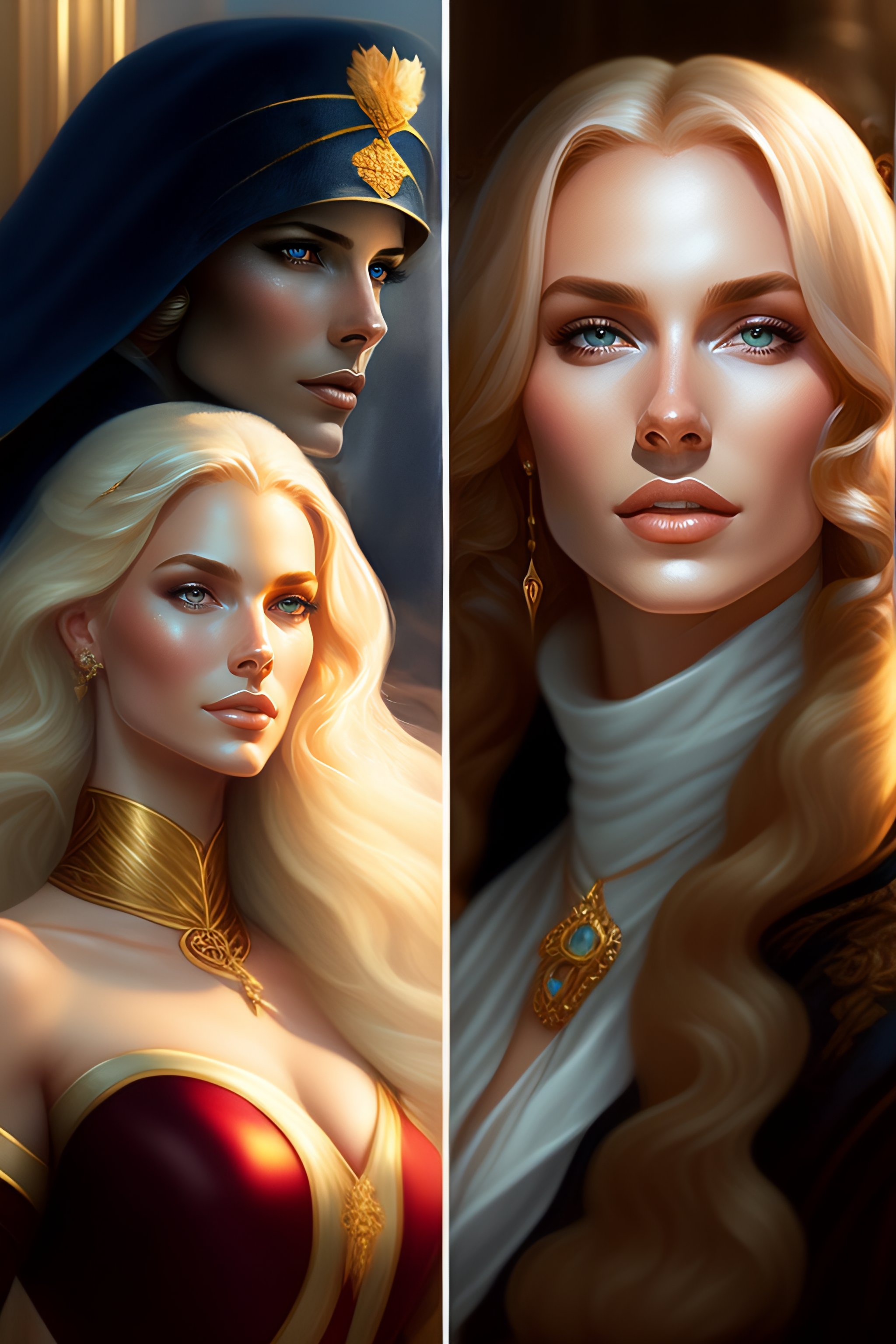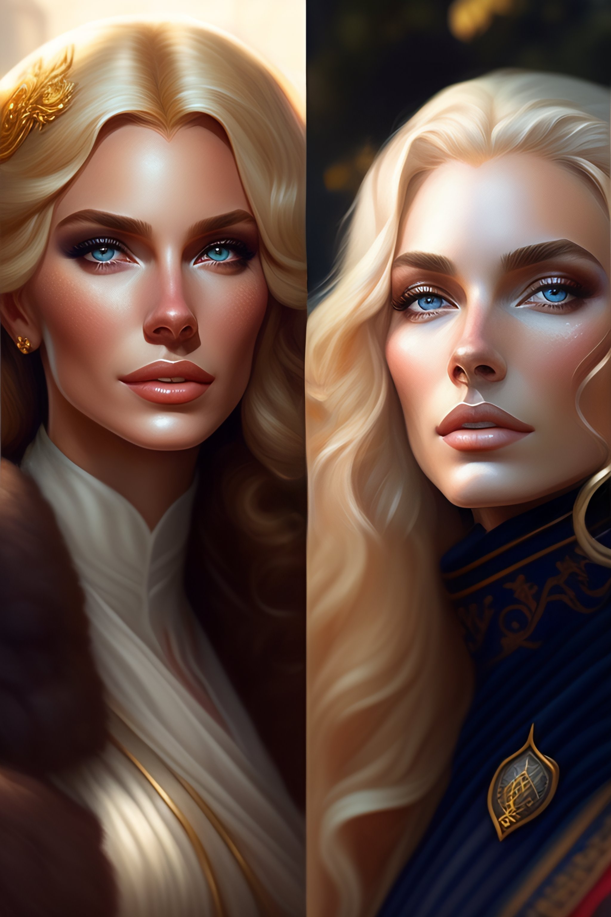 Portrait of a blonde lady and michael as characters in dogtanian, real life skin, intricate, elegant, highly detailed, artstation, concept art, smooth, sharp focus, art by artgerm and greg rutkowski and alphonse mucha