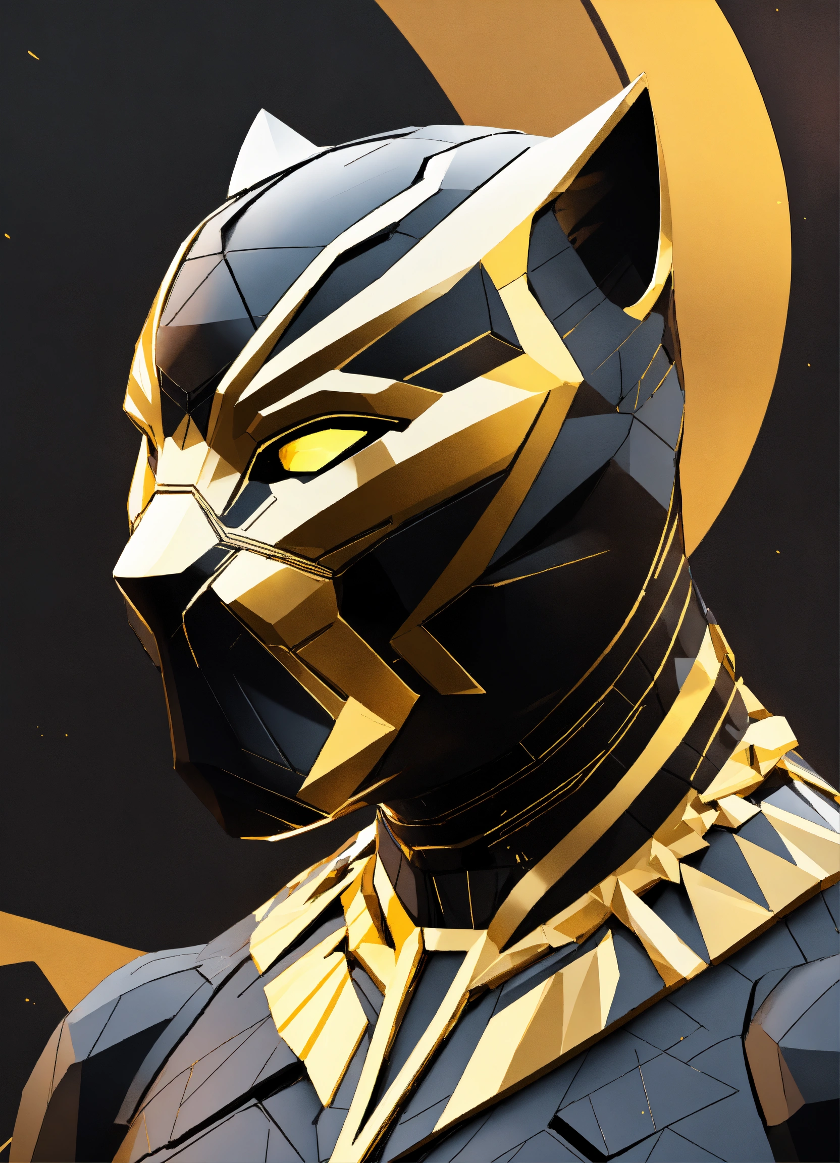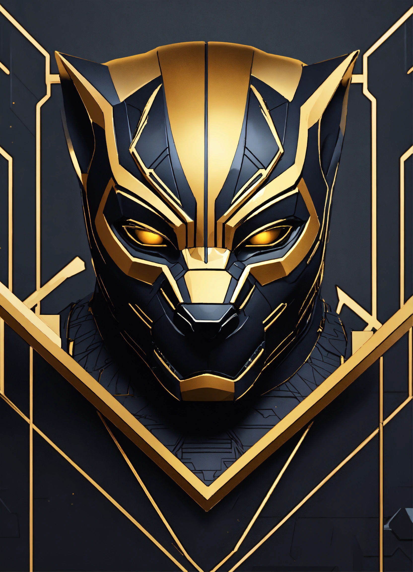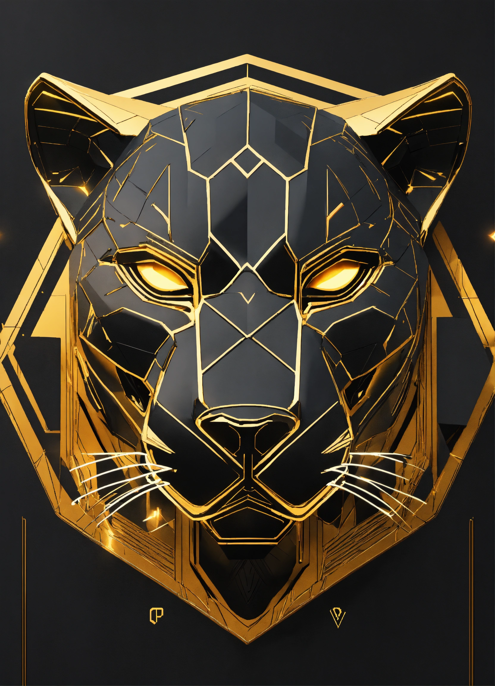 Black panther in geometric shapes, vector drawing, midnight, black and gold, octane render, detailed and simplistic, icon or logo style, striking, unreal engine