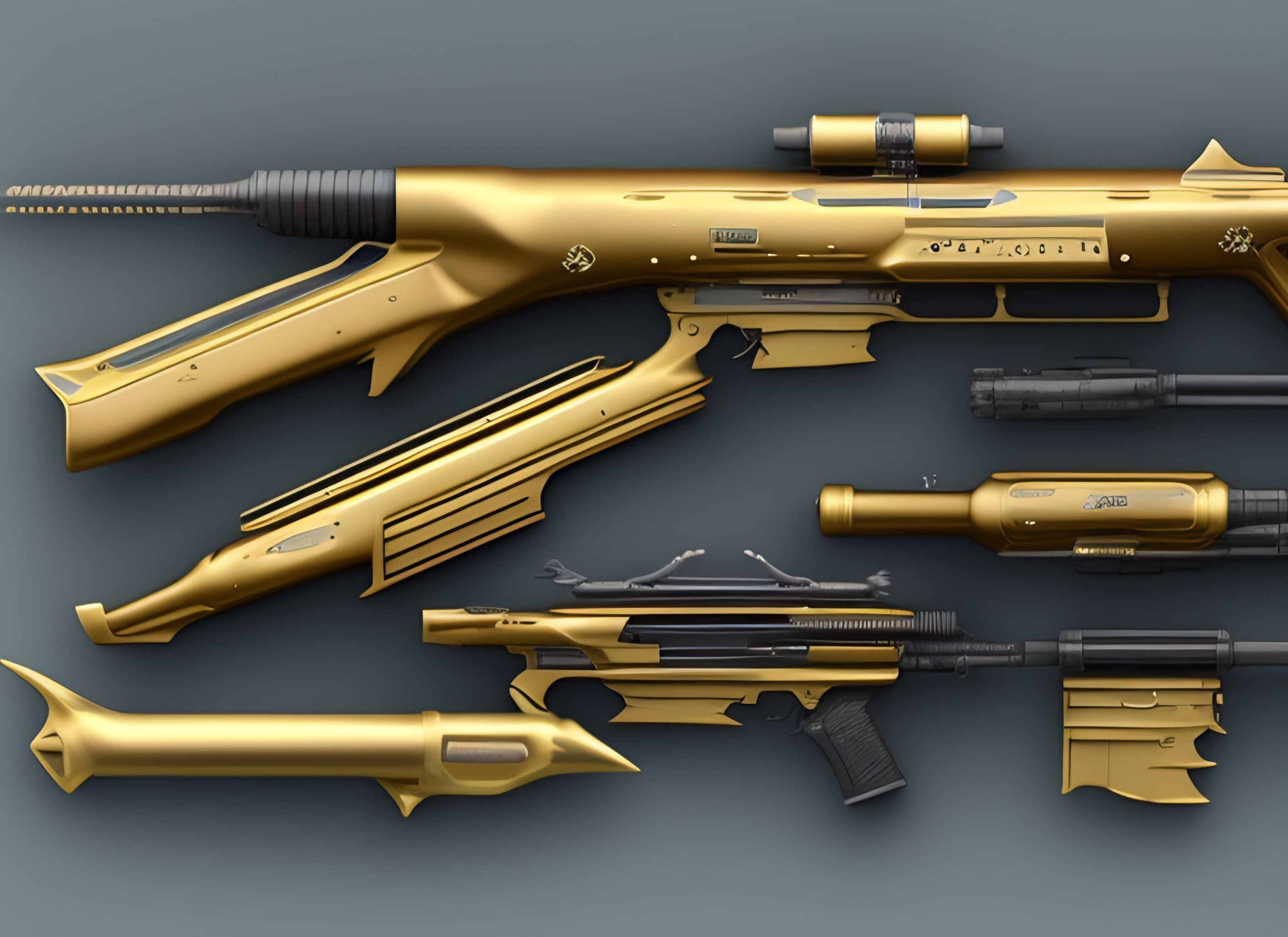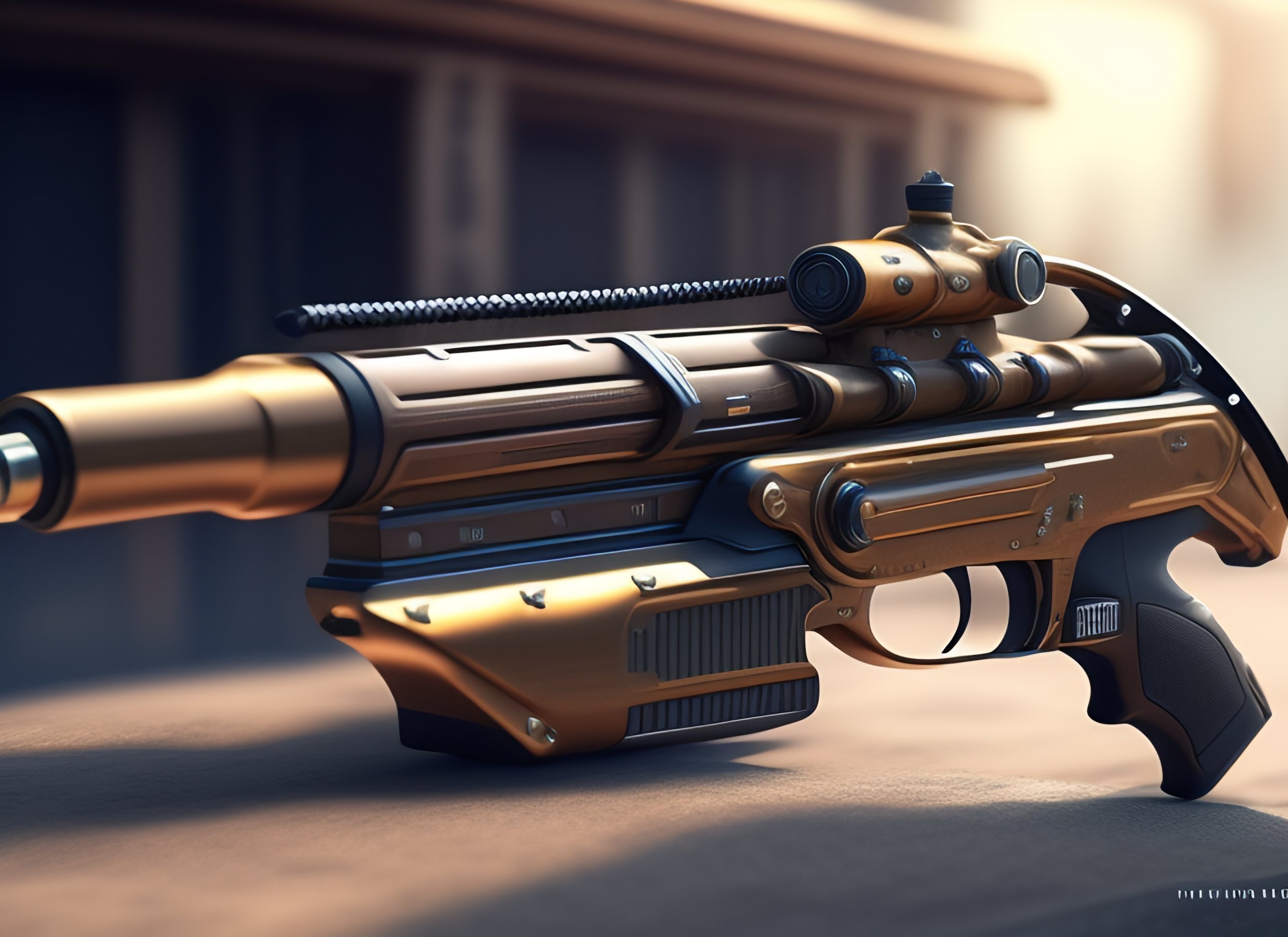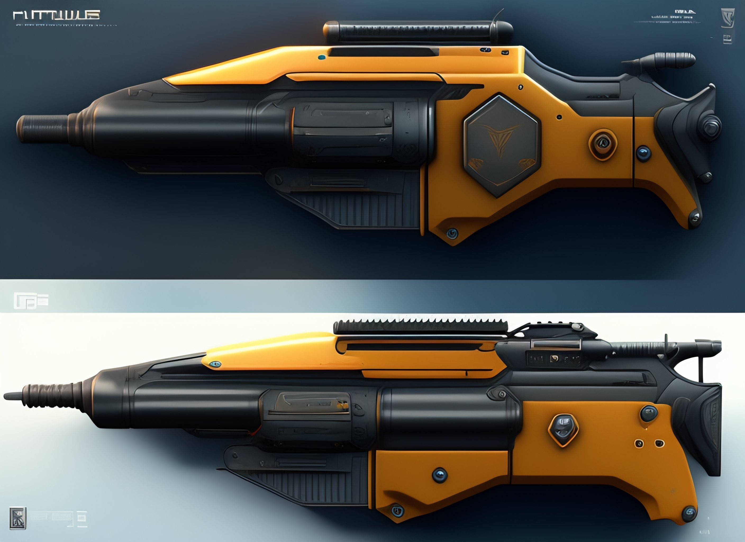 Realistic concept art of future weapons, detailed, 1 4 5 0, delicate, hyper realism, ultra realistic, 2d